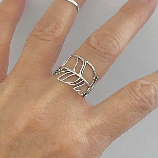 925 Sterling Silver Cut Out Wrapped Leaf Ring | Delicate Tree of Life Nature Silver Rings