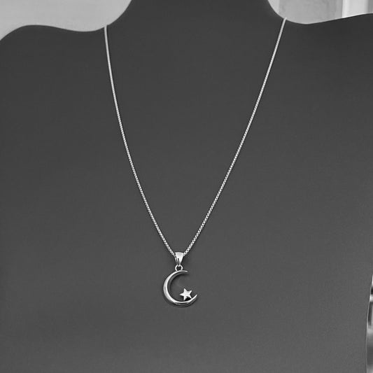 925 Sterling Silver Crescent Moon & Star Necklace – Dainty Celestial Pendant, Minimalist Silver Chain Jewelry