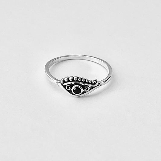 925 Sterling Silver Egyptian Eye Ring with Black CZ – Evil Eye Protector Silver Ring, Dainty Spiritual Jewelry