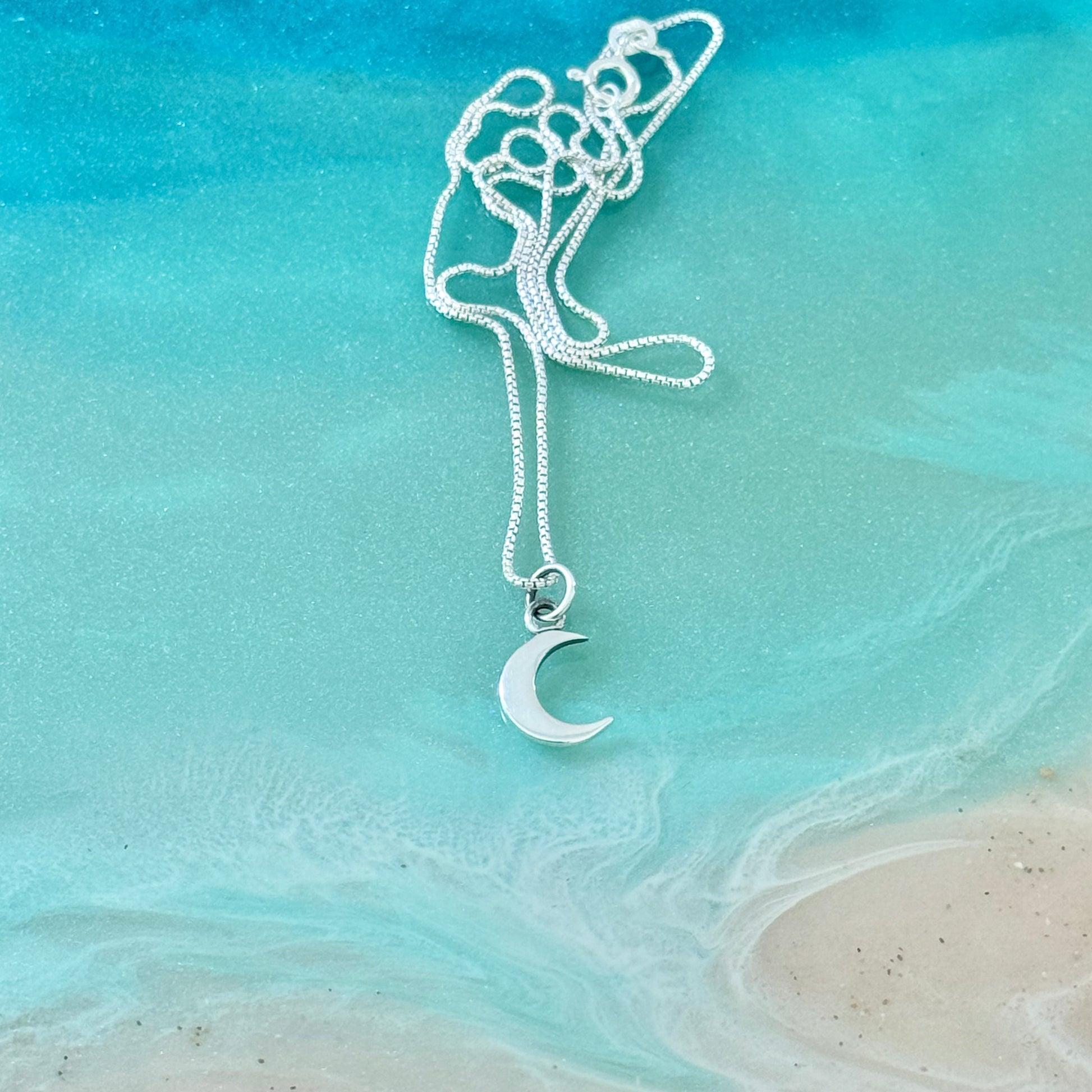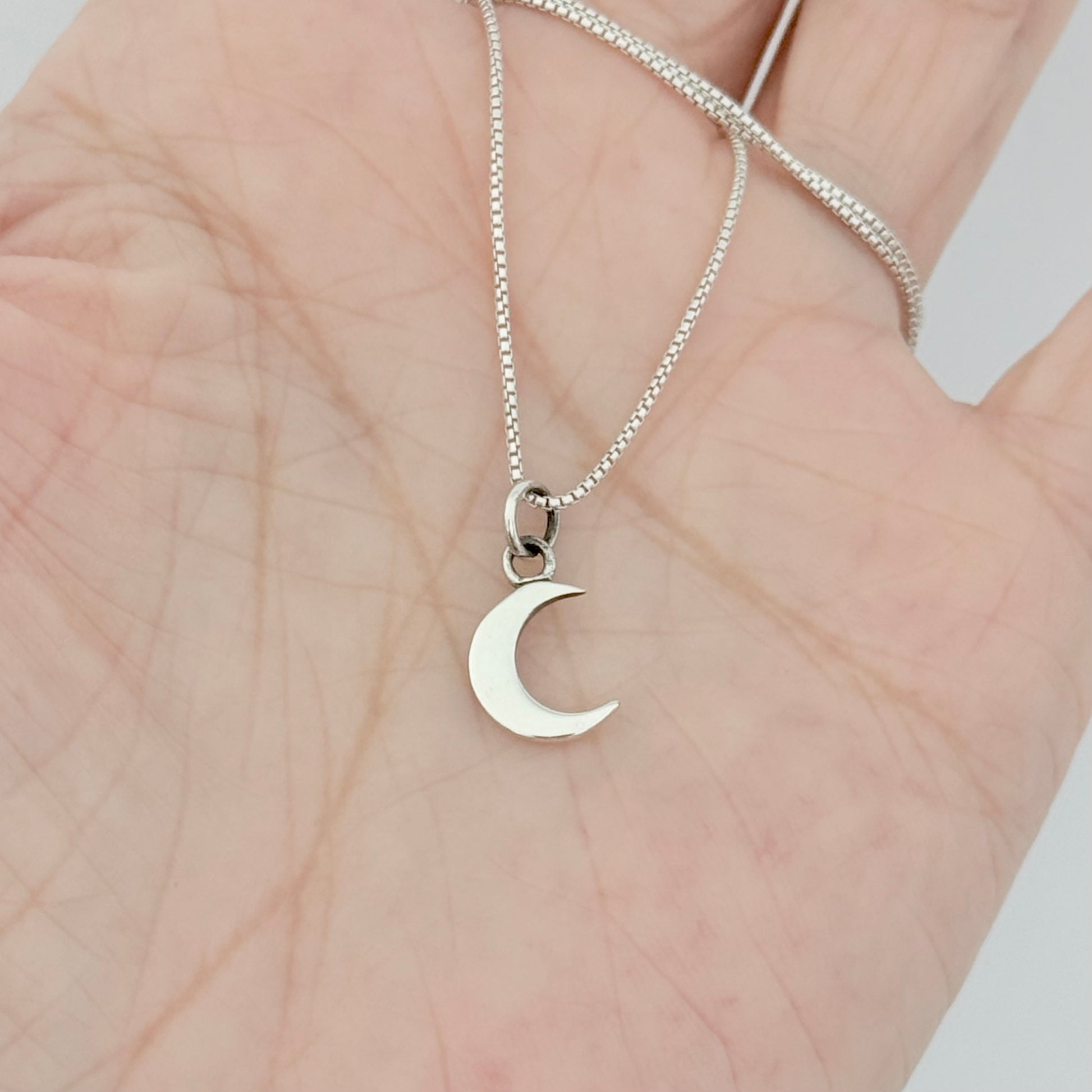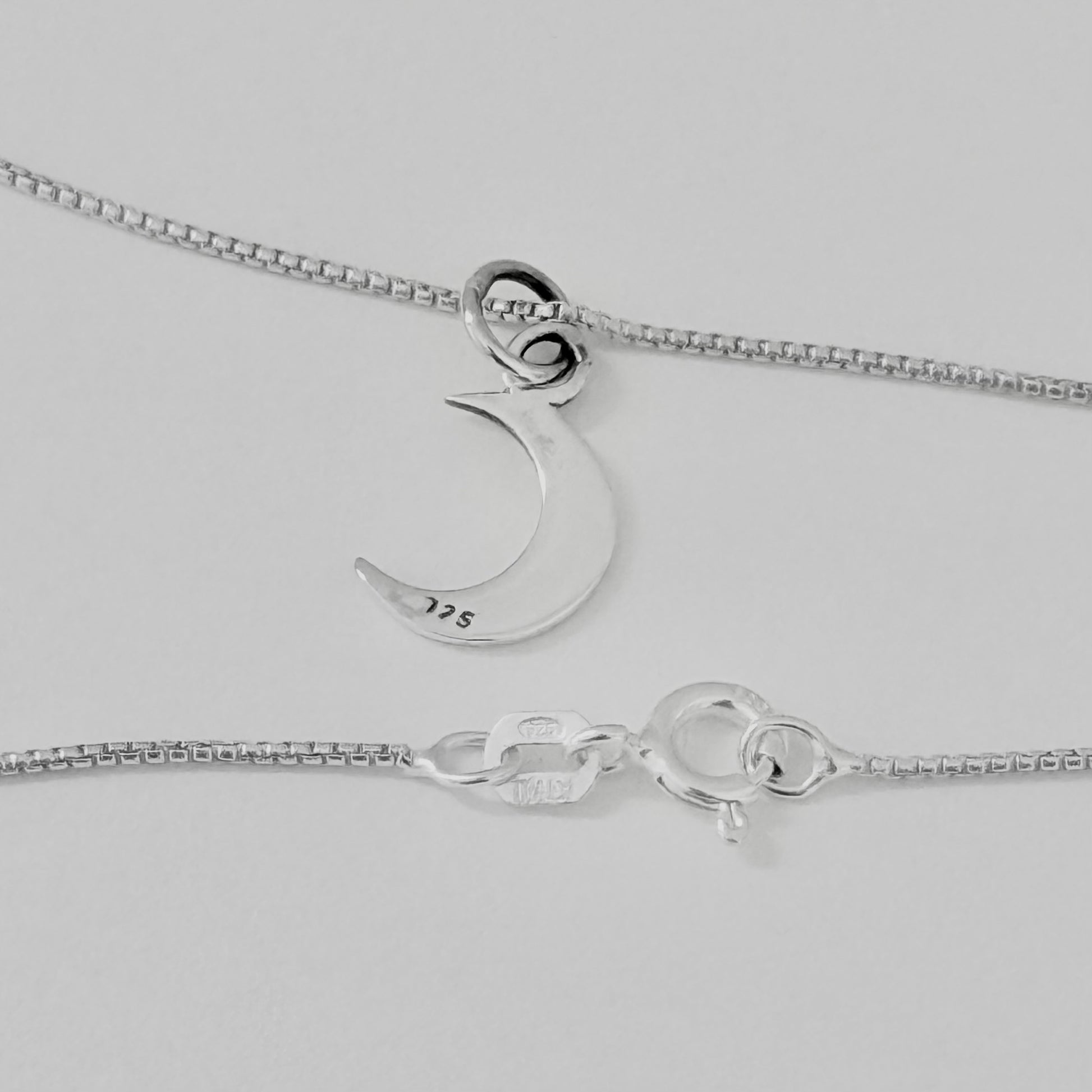 925 Sterling Silver Little Crescent Moon Necklace | Celestial Pendant with Italian Box Chain