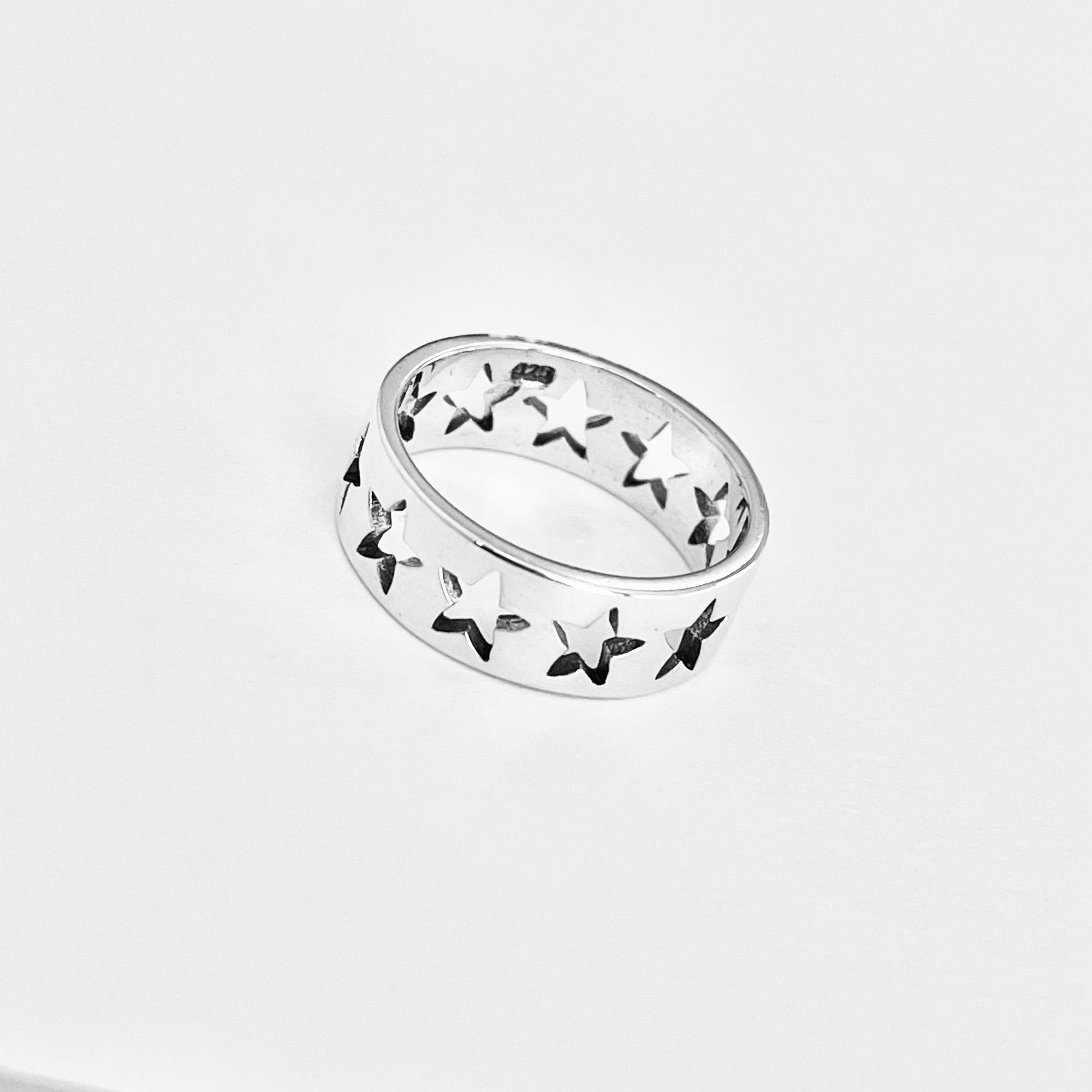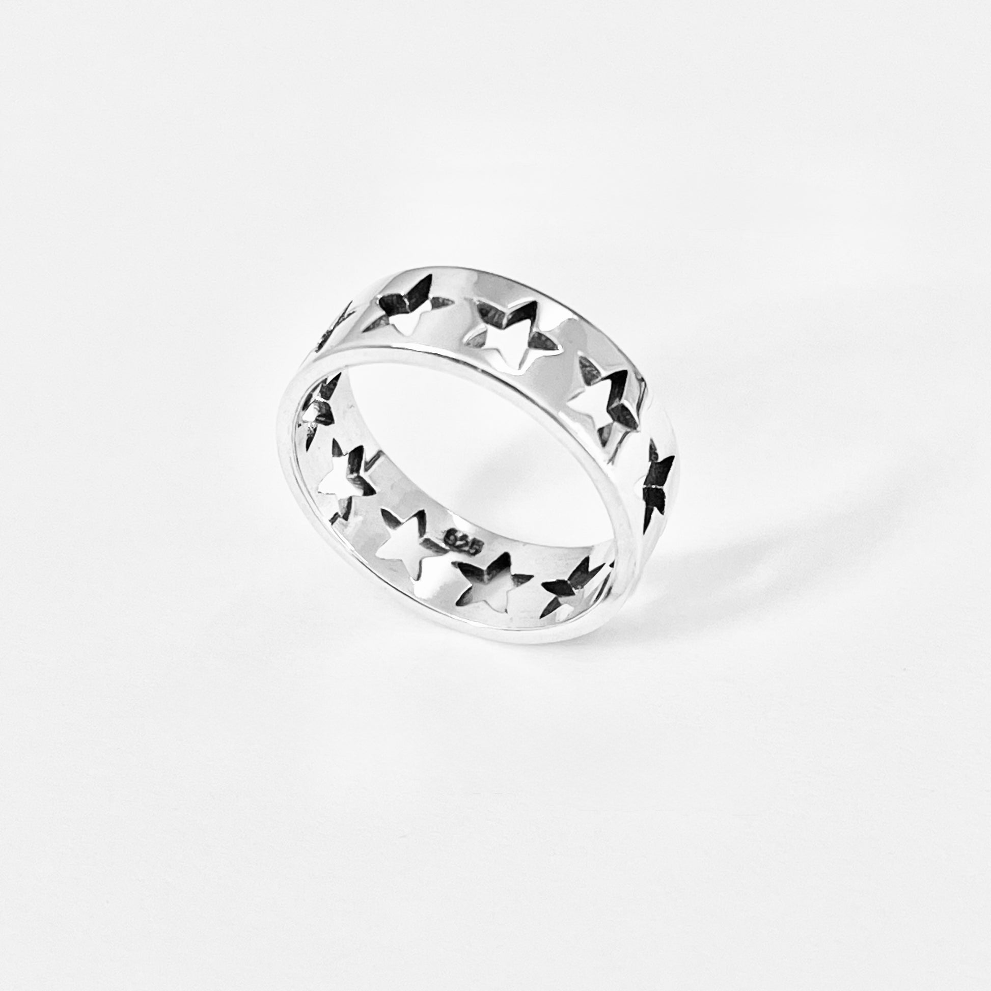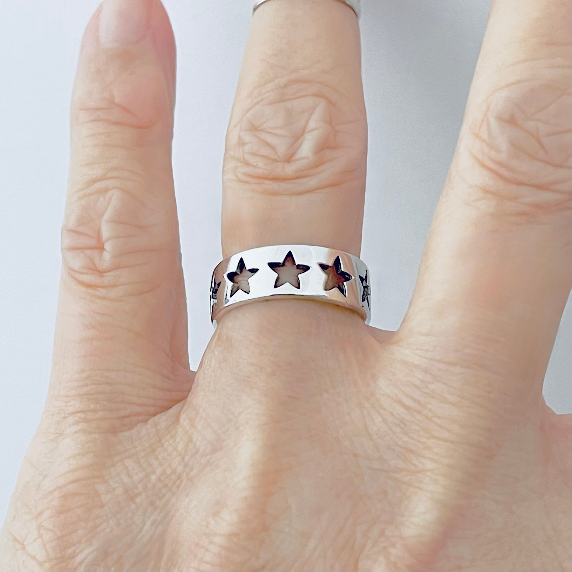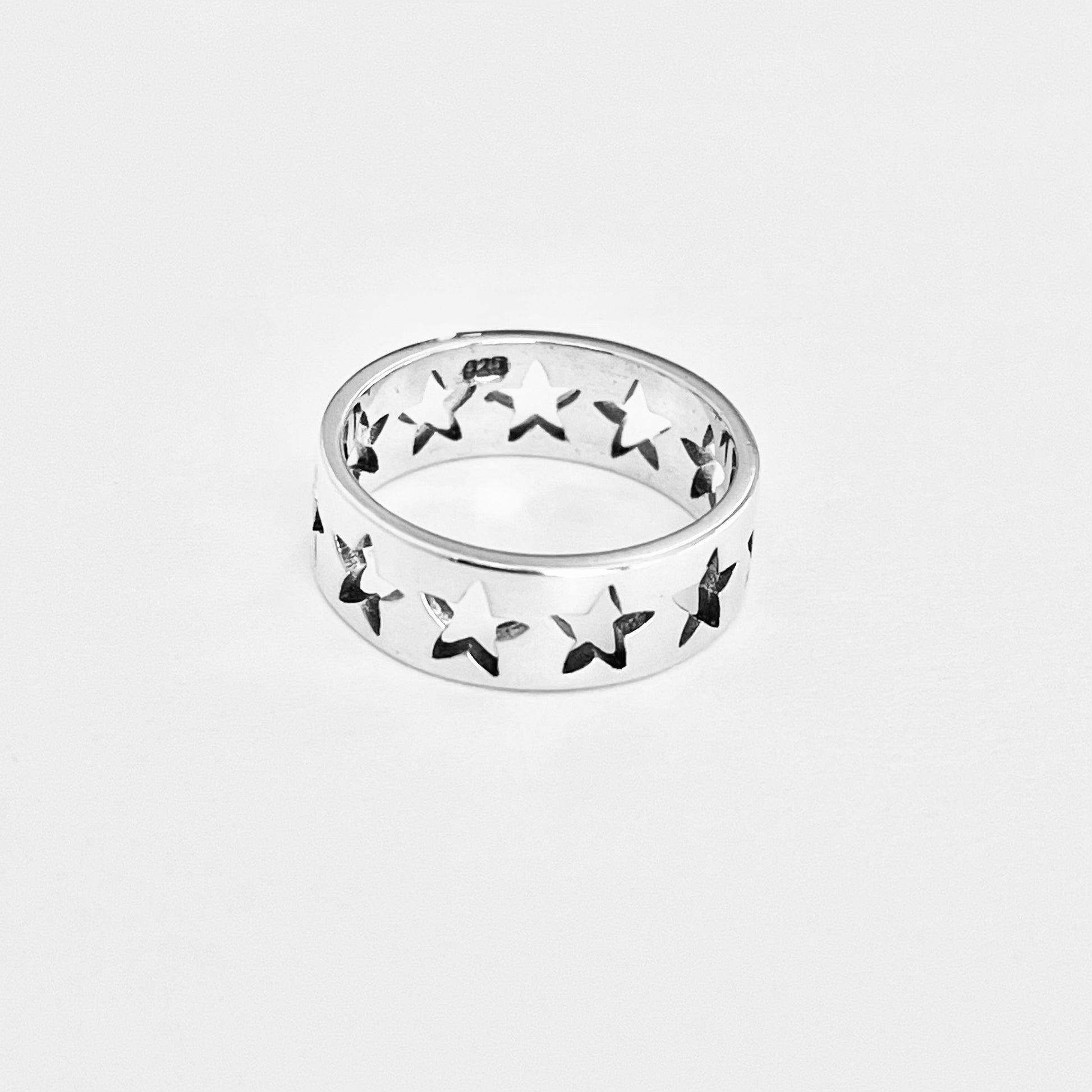 Wear the stars on your finger — shop the Sterling Silver Wedding Band Star Ring today.