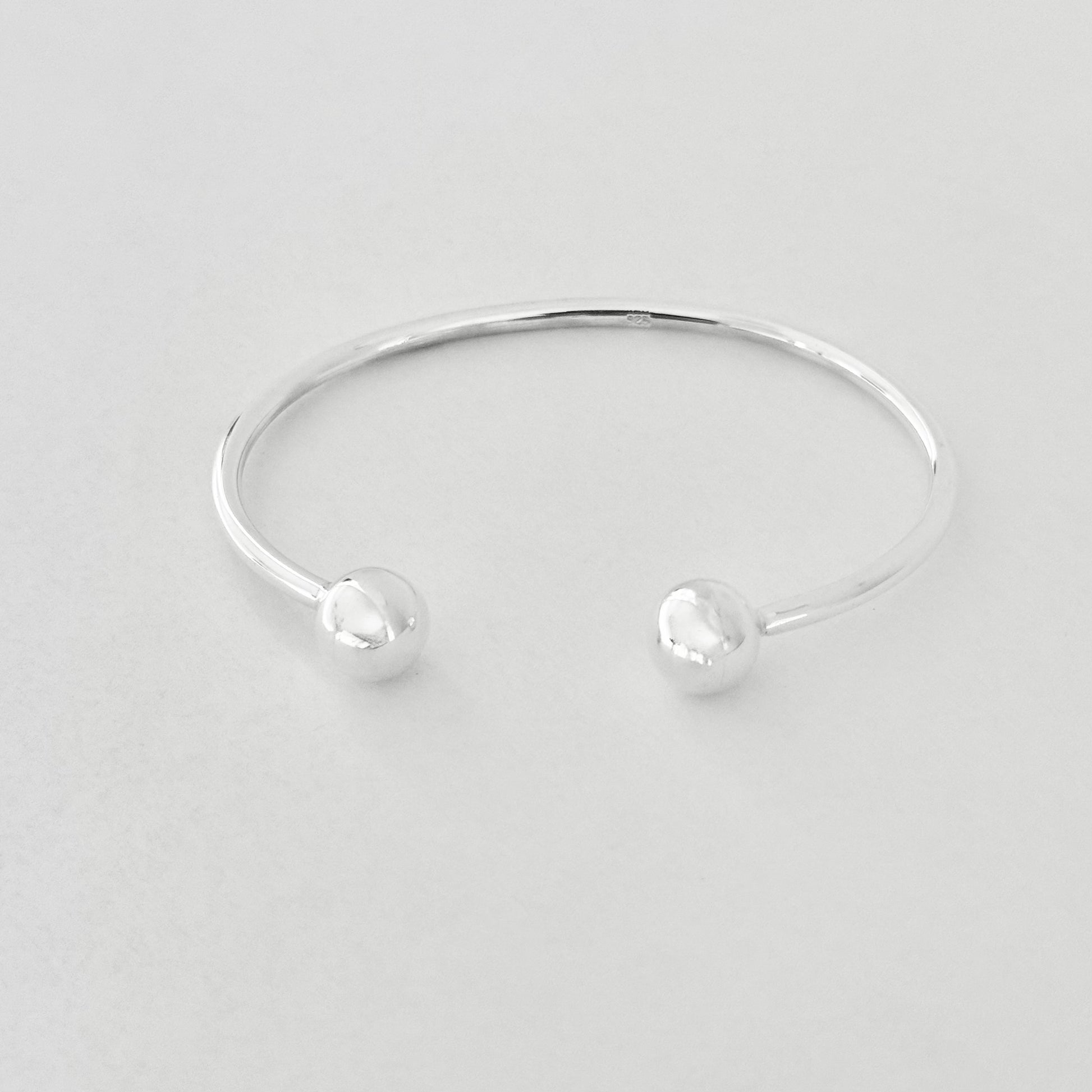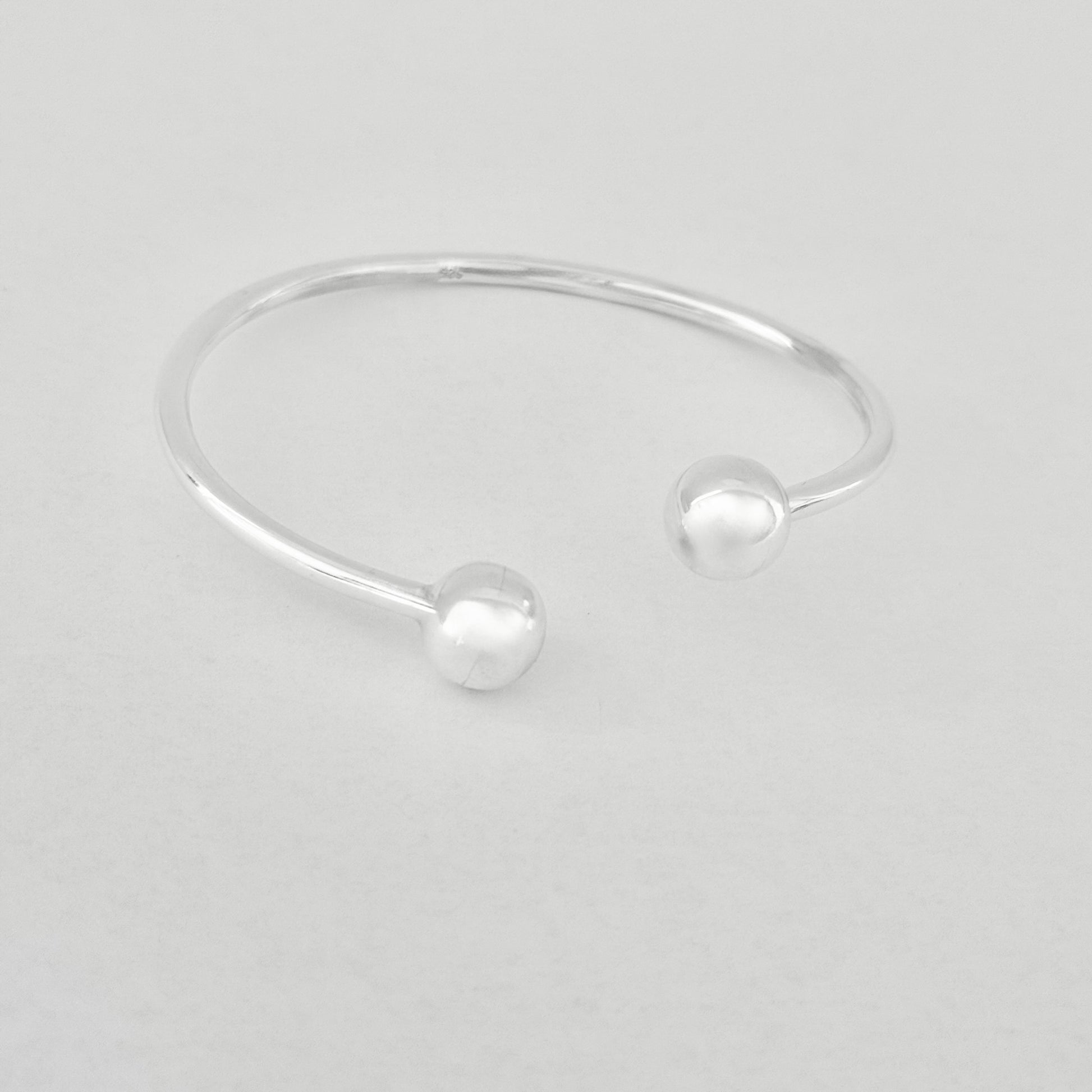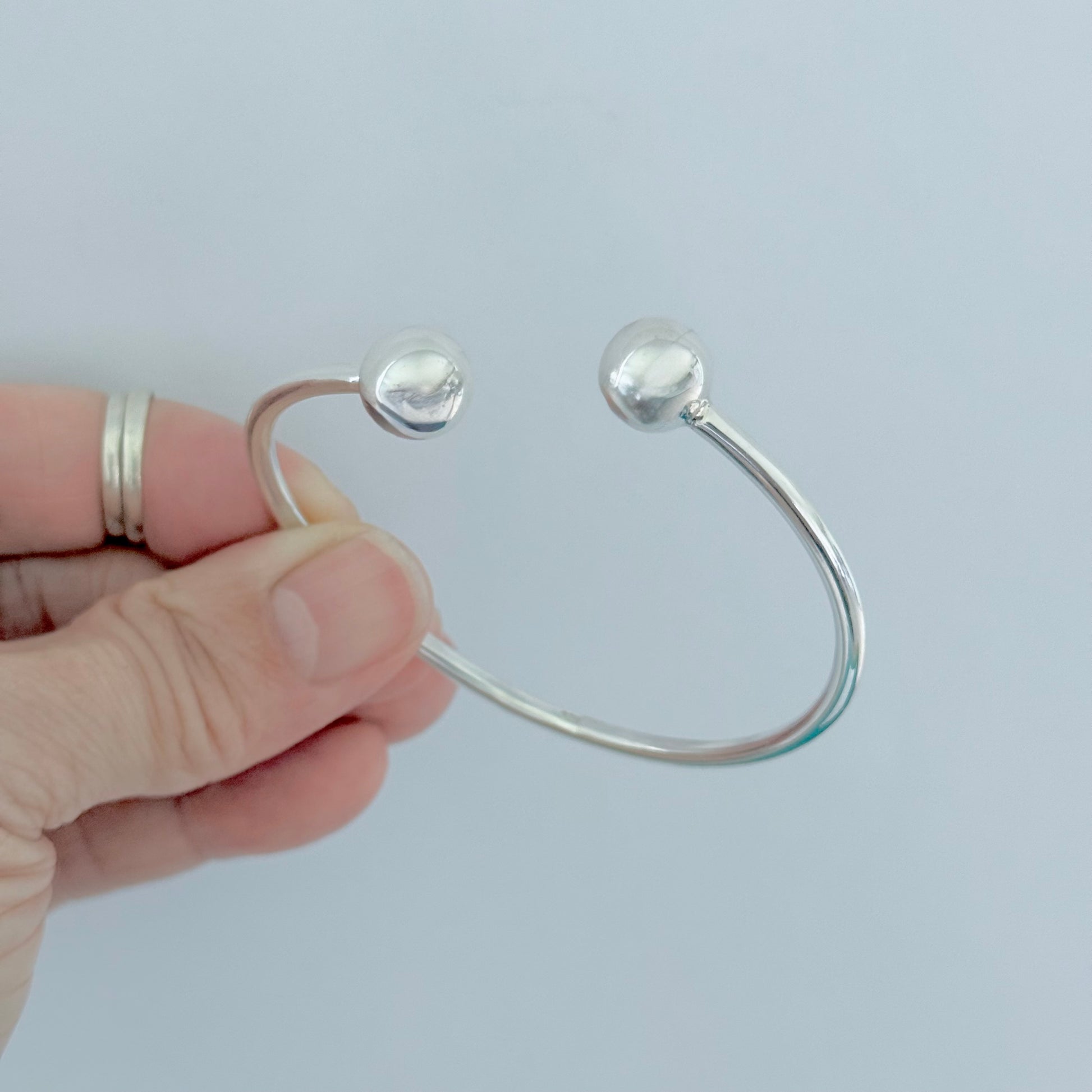 925 Sterling Silver High Polish Ball Cuff Bangle | Adjustable Silver Bracelet