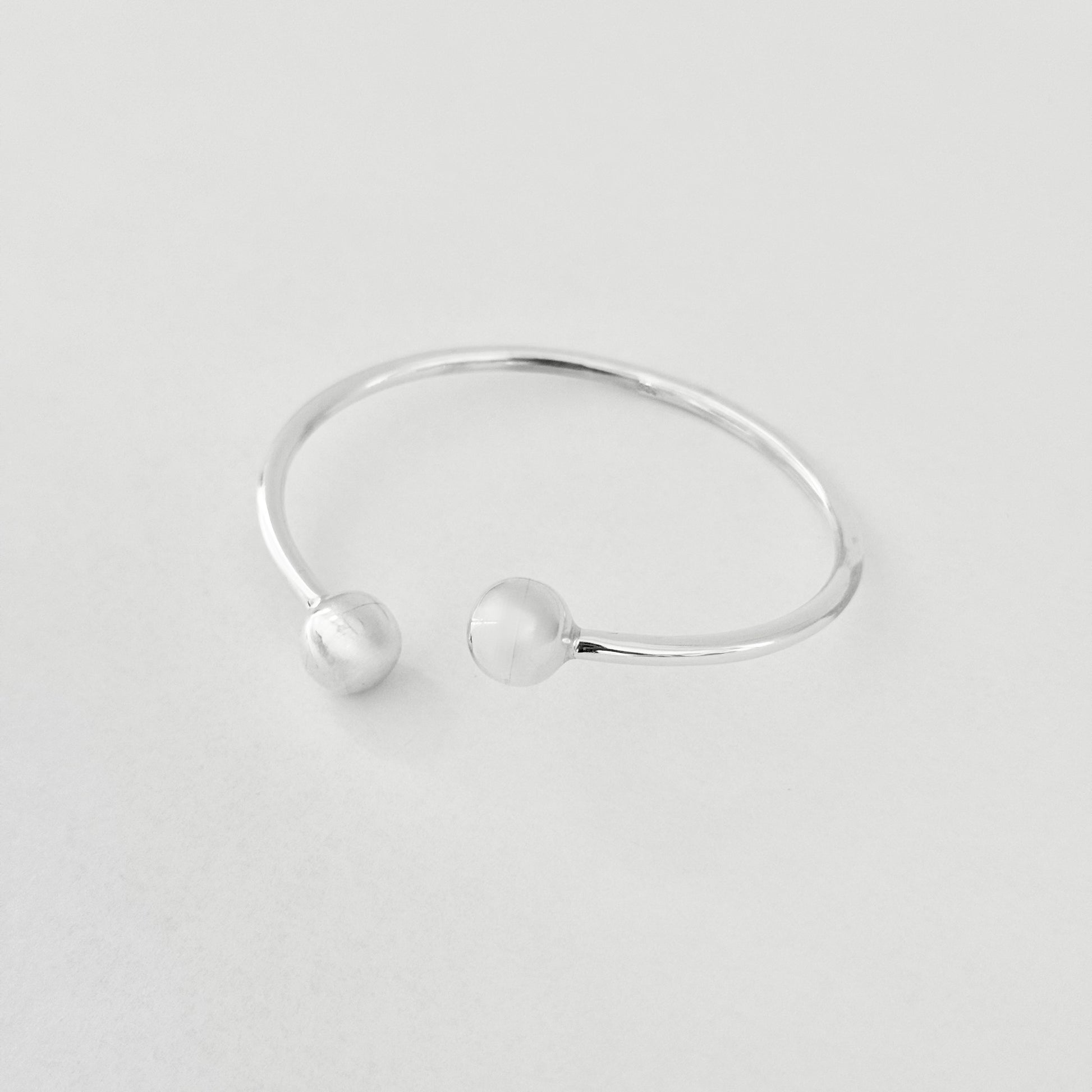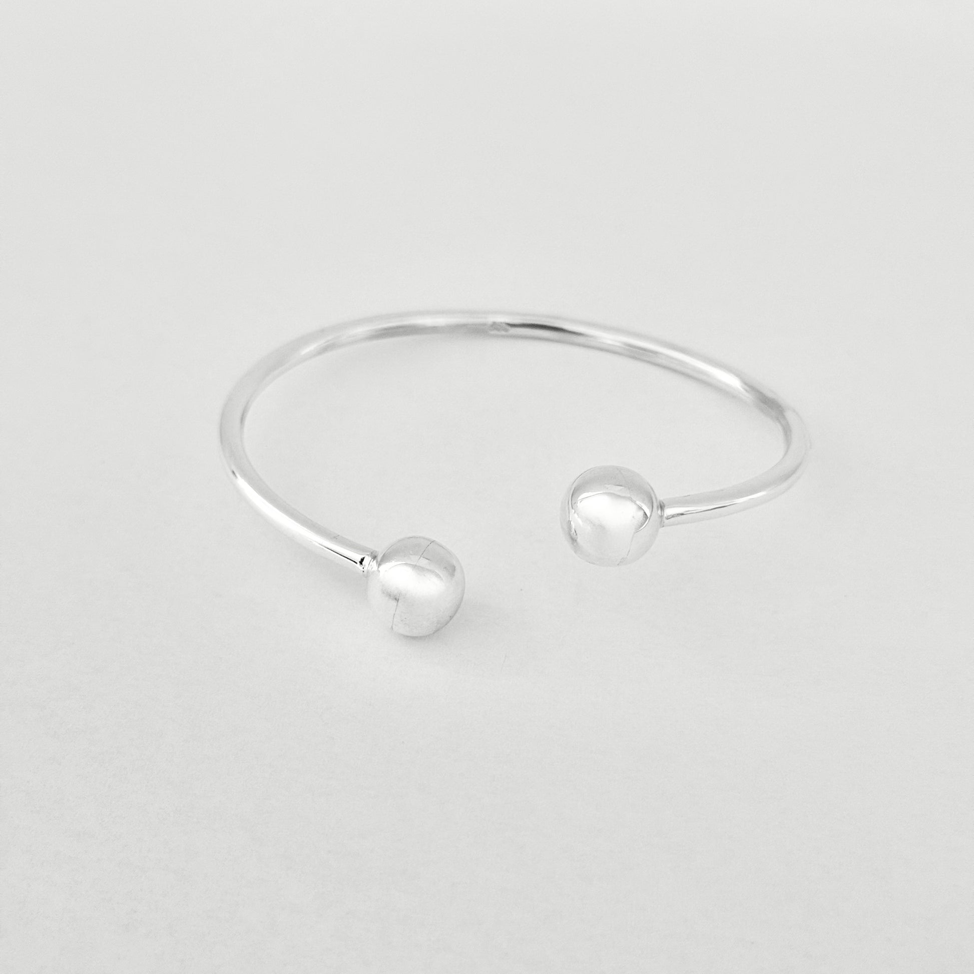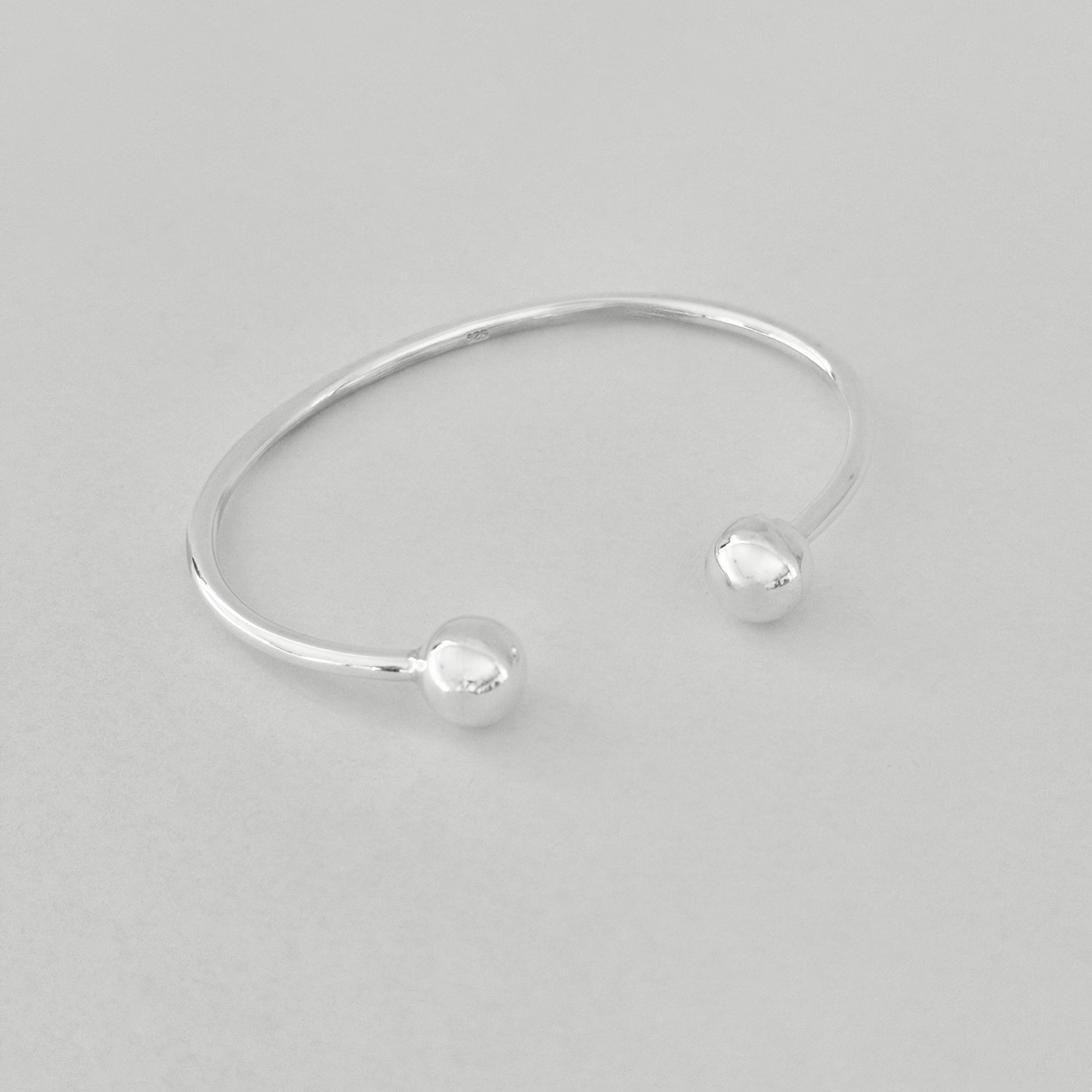 925 Sterling Silver High Polish Ball Cuff Bangle | Adjustable Silver Bracelet
