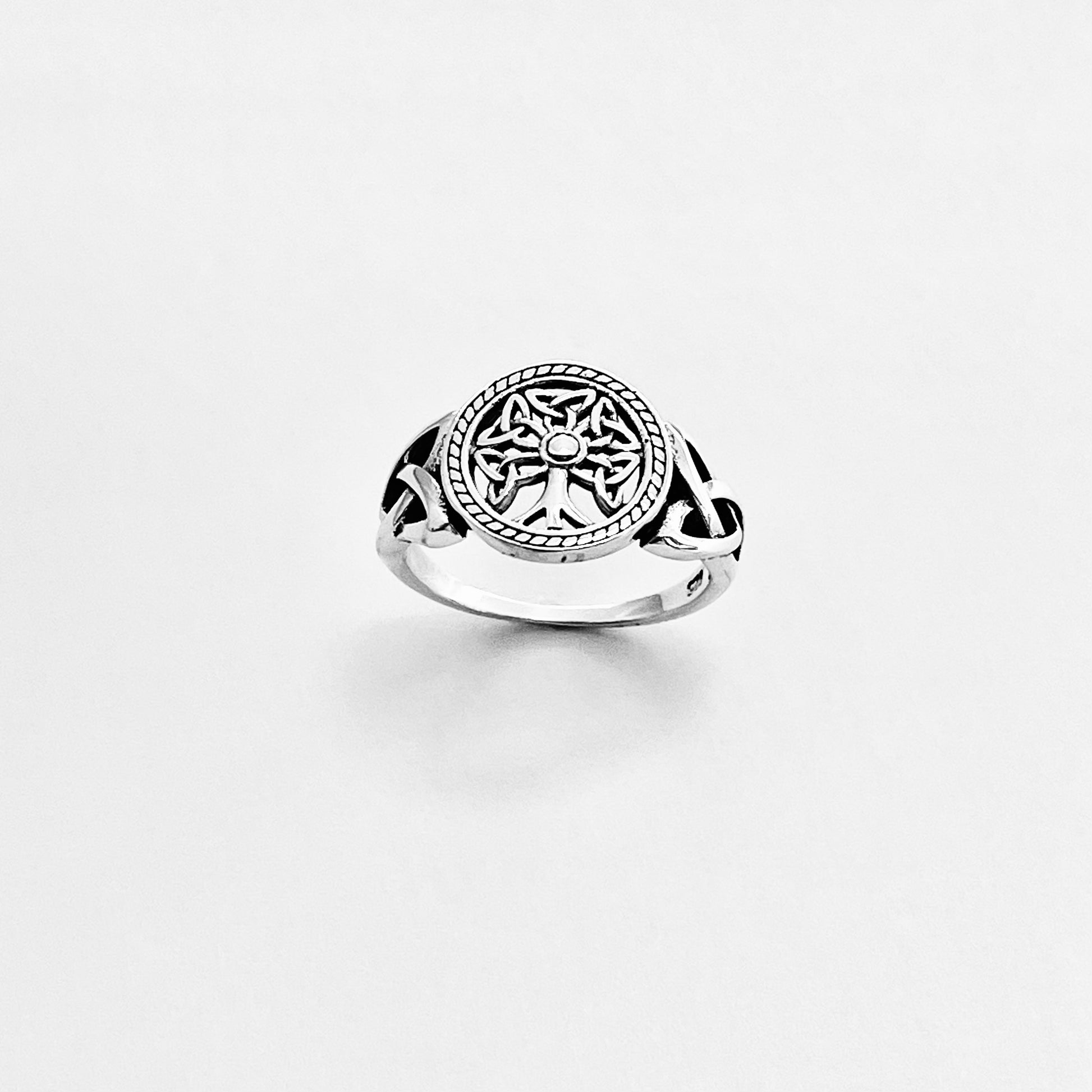 Sterling Silver Little Triquetras Tree of Life Ring with Side Celtic, Fortune Jewelry, Trinity Knots