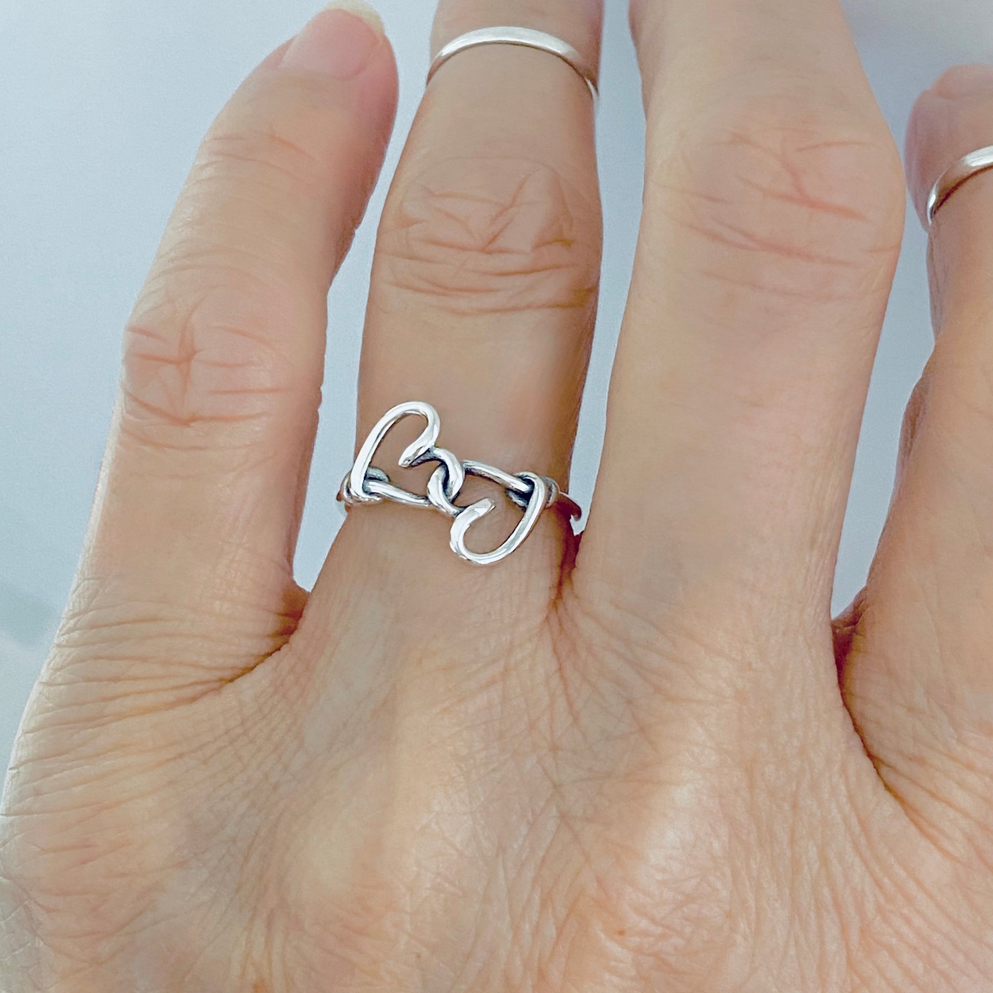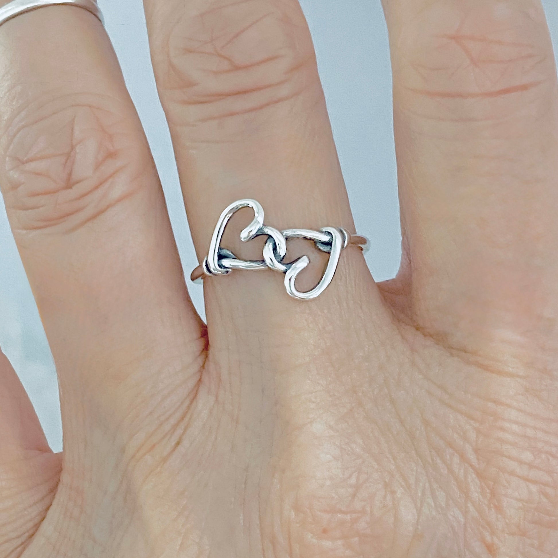 Sterling Silver Double Wire Heart Ring | Forever Connected Love, Minimalist Silver Rings
