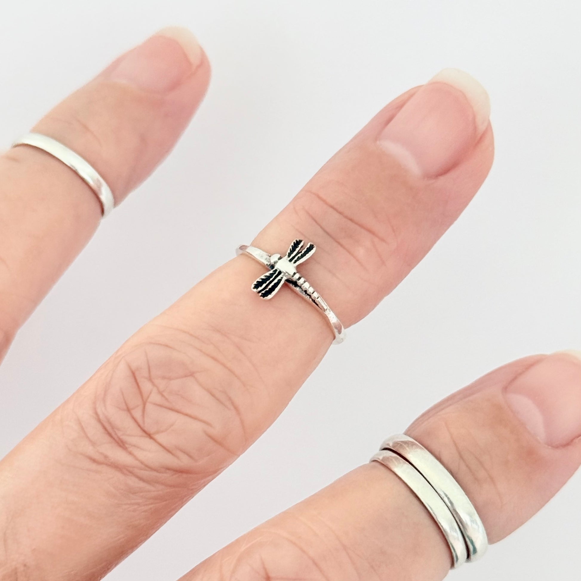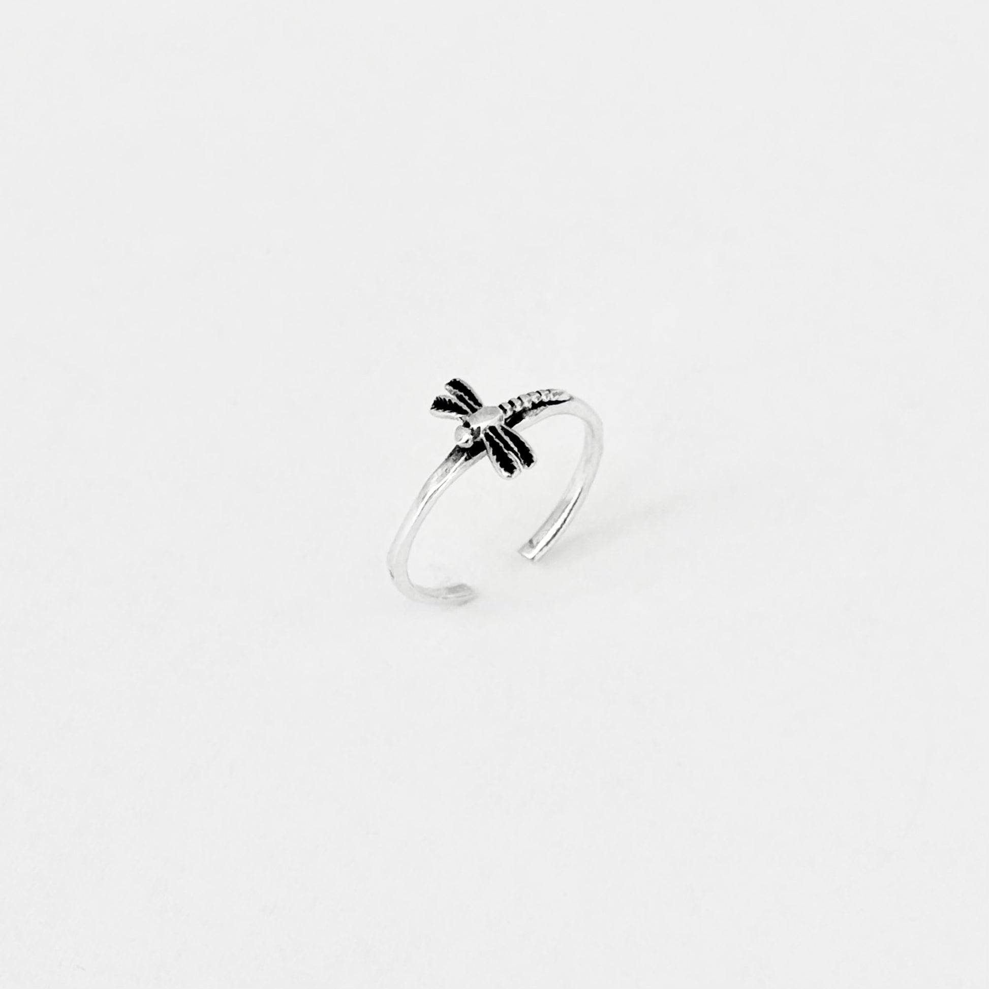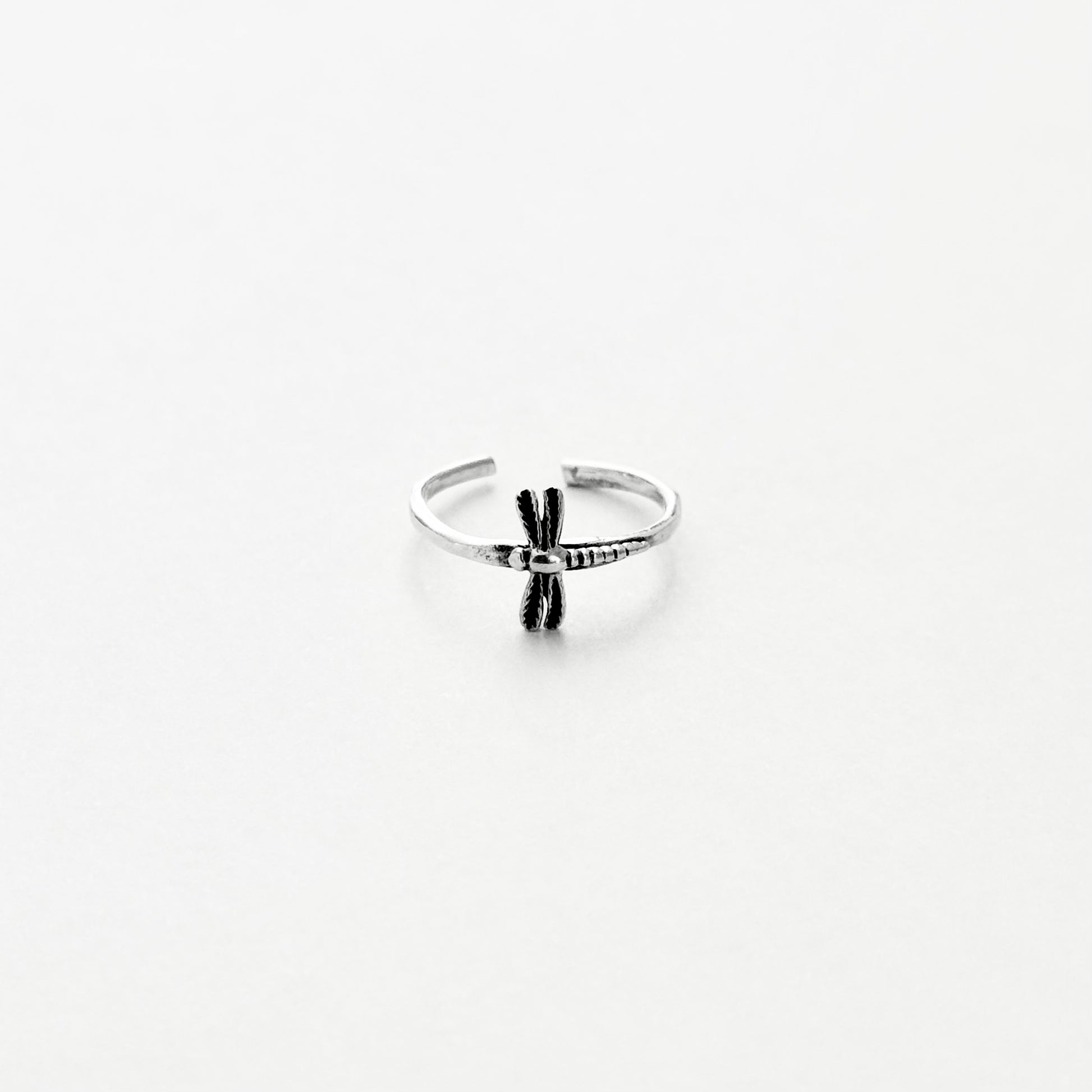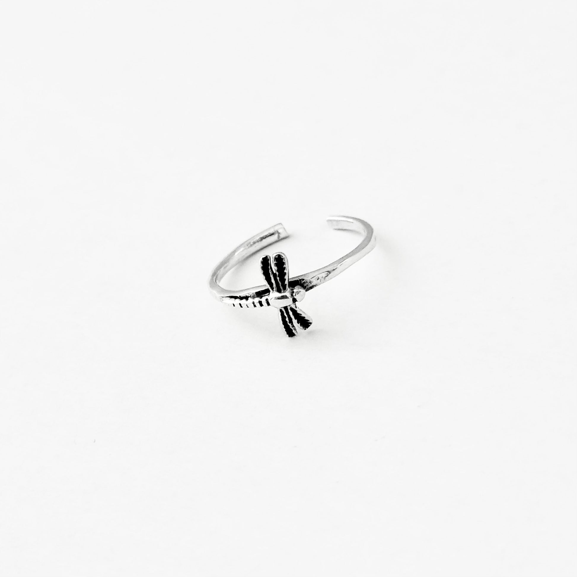 Sterling Silver Dragonfly Toe Ring with Hammered Band, Silver Rings, Spirit Bugs, Insect Wings