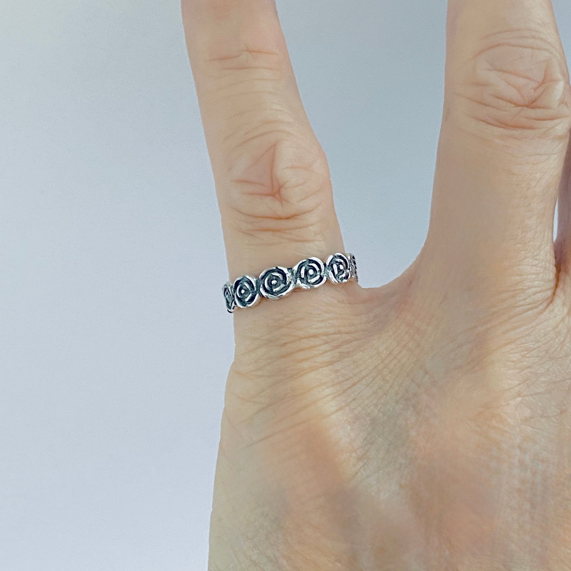 Sterling Silver Eternity Love Rose Ring, Stackable Wedding Bands, Floral Jewelry