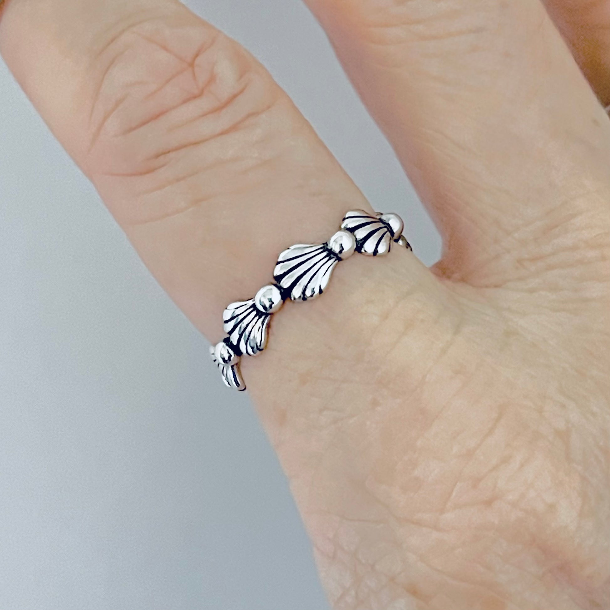 Sterling Silver Eternity Seashell Band, Ocean Jewelry, Beach Shells