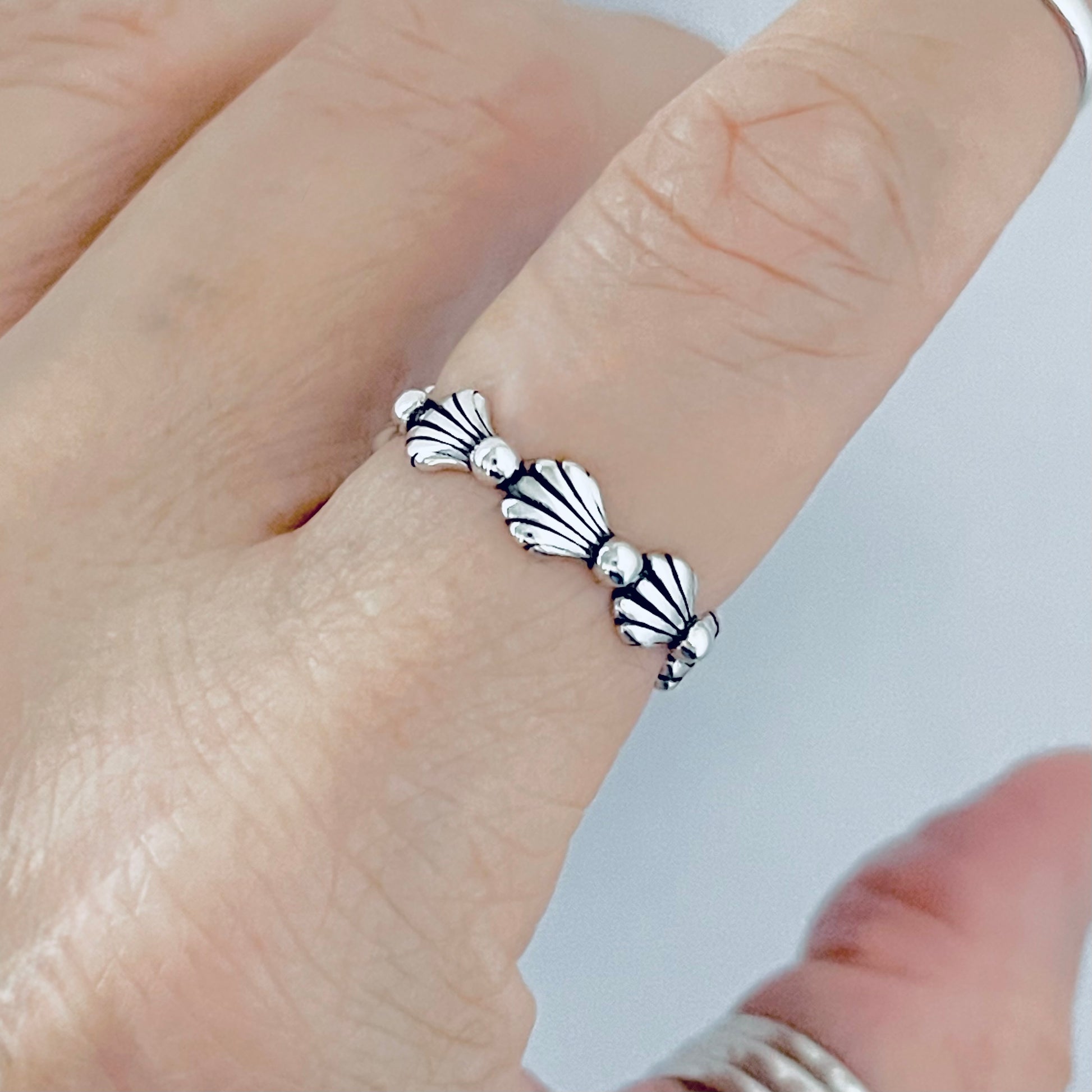 Sterling Silver Eternity Seashell Band, Silver Ring, Surfer Ring, Beach Ring, Index Ring, Thumb Ring, Ocean Ring, 925 Stamped