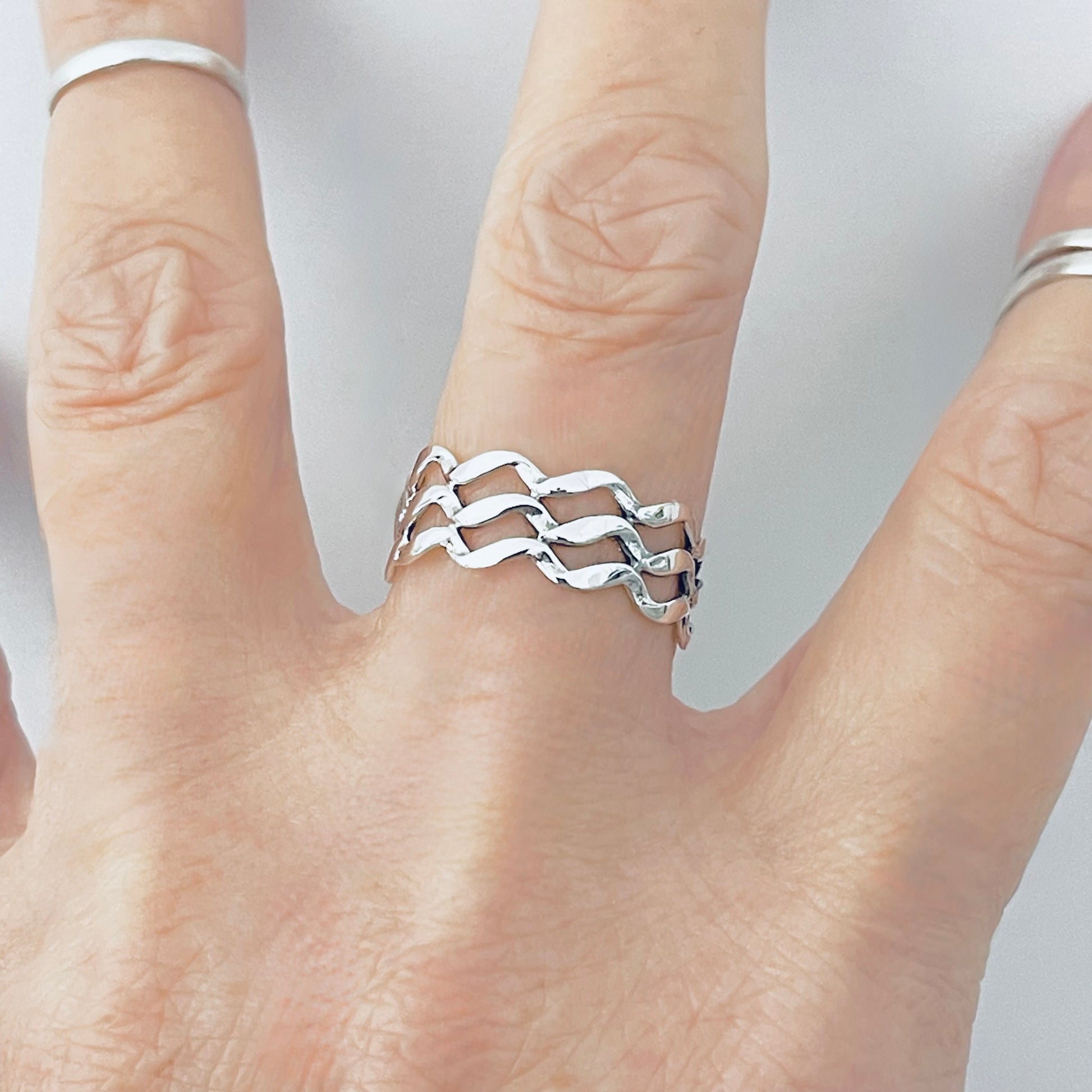 Sterling Silver Eternity Triple Wave Band Ring, Ocean Jewelry, Surfer Rings