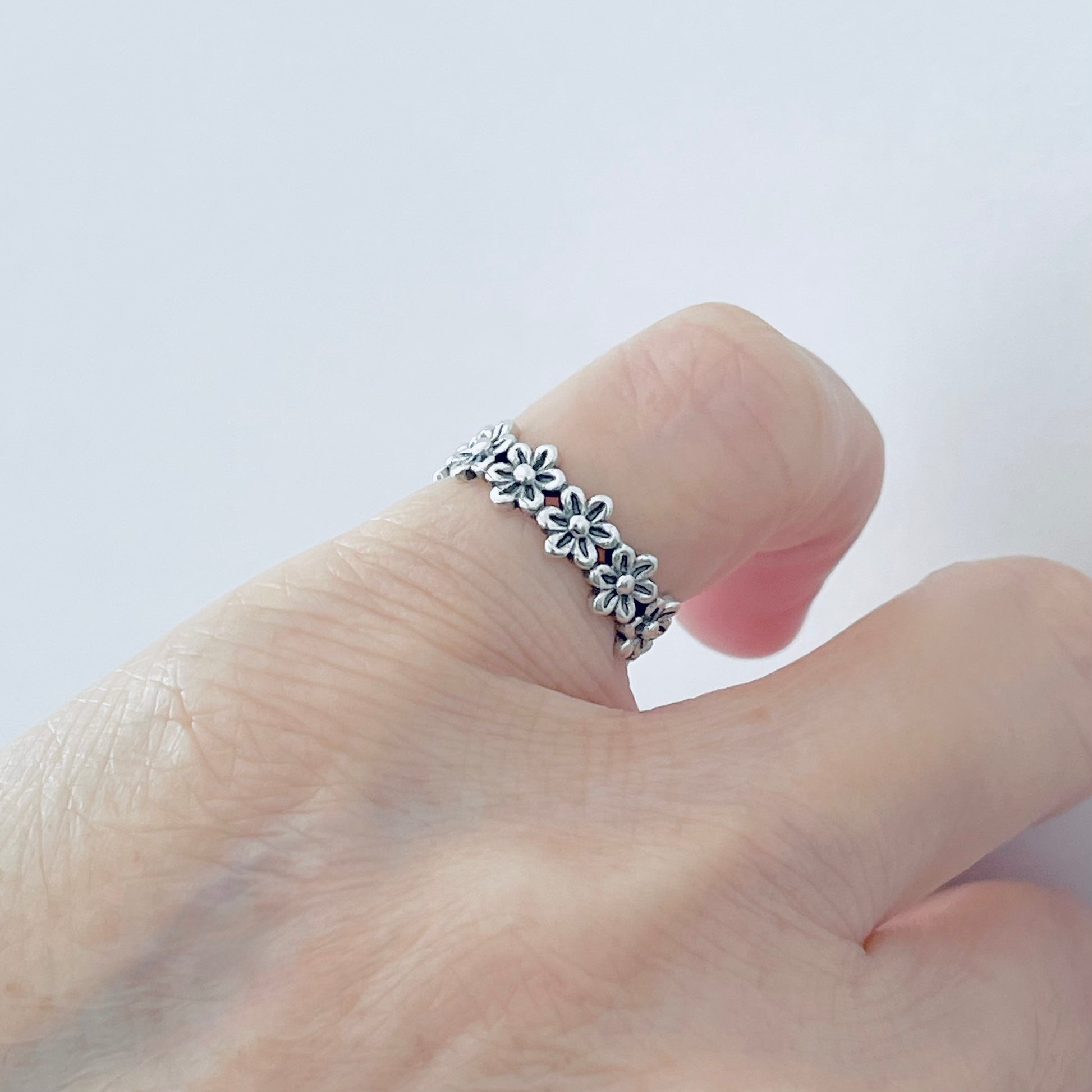 ✨ Perfect for: weddings, anniversaries, stacking with other dainty bands, or gifting to someone special who loves floral silver jewelry.