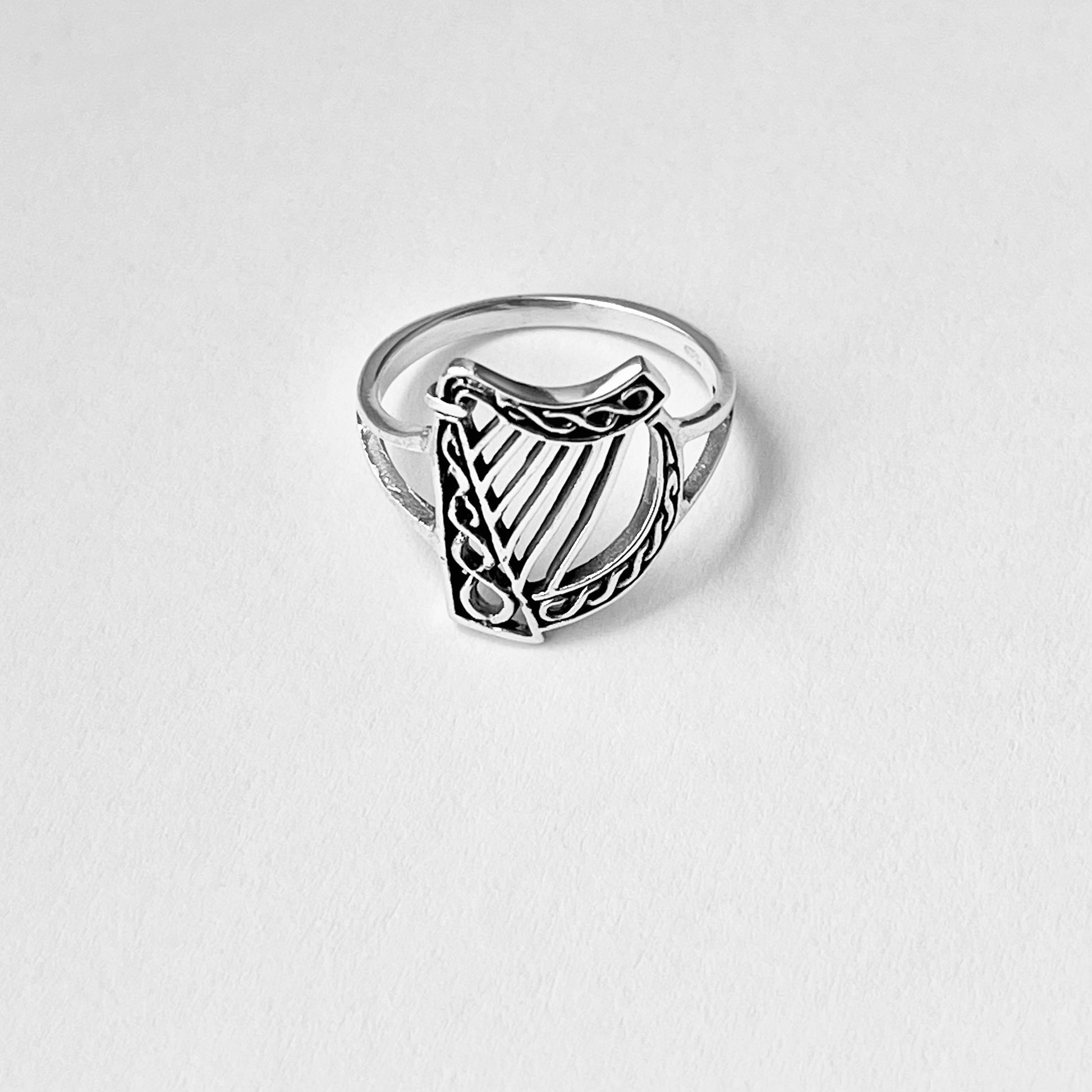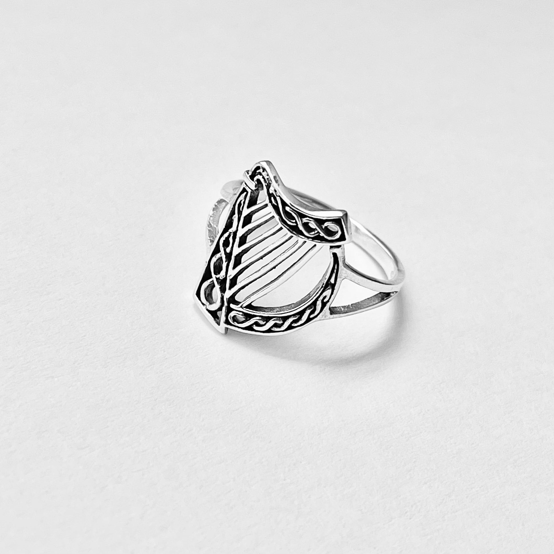 Sterling Silver Harp Musical Instrument Ring, Orchestra Jazz Jewelry
