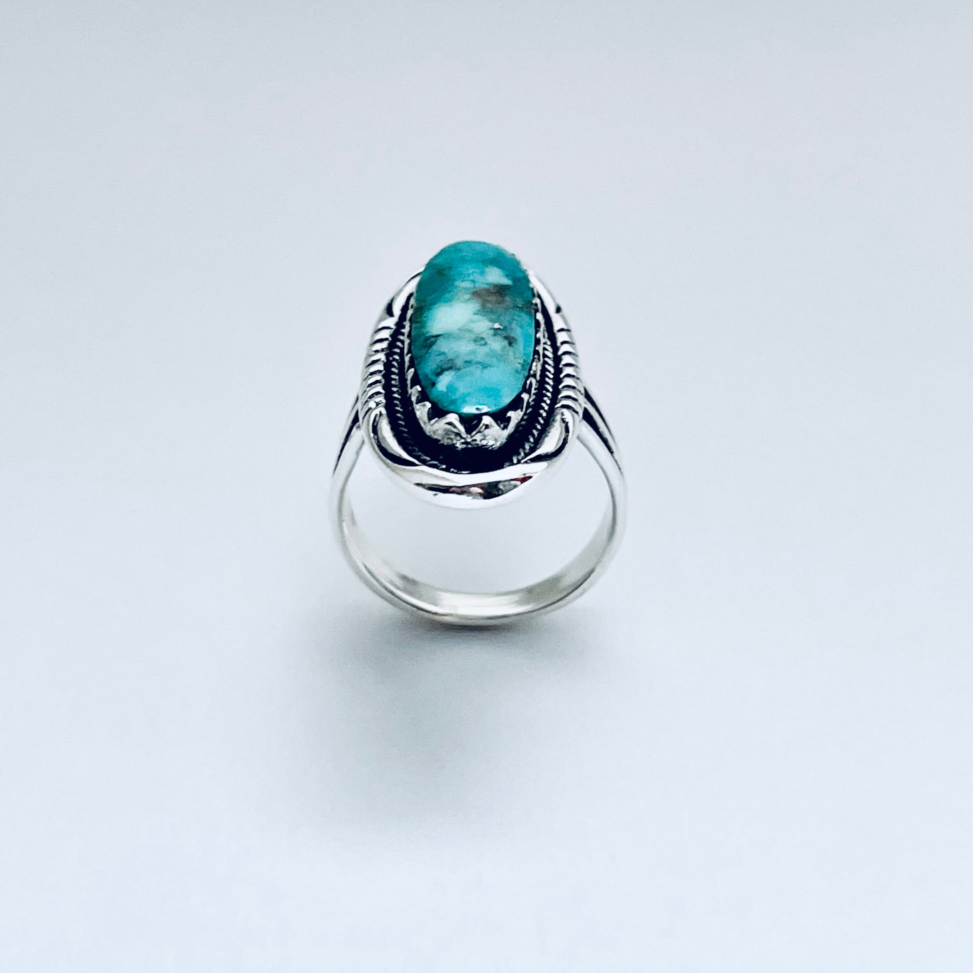 Sterling Silver Large Oval Genuine Turquoise Ring, Boho Ring, Silver Ring, Turquoise Ring, Statement Ring, Stone Ring, 925 Stamped