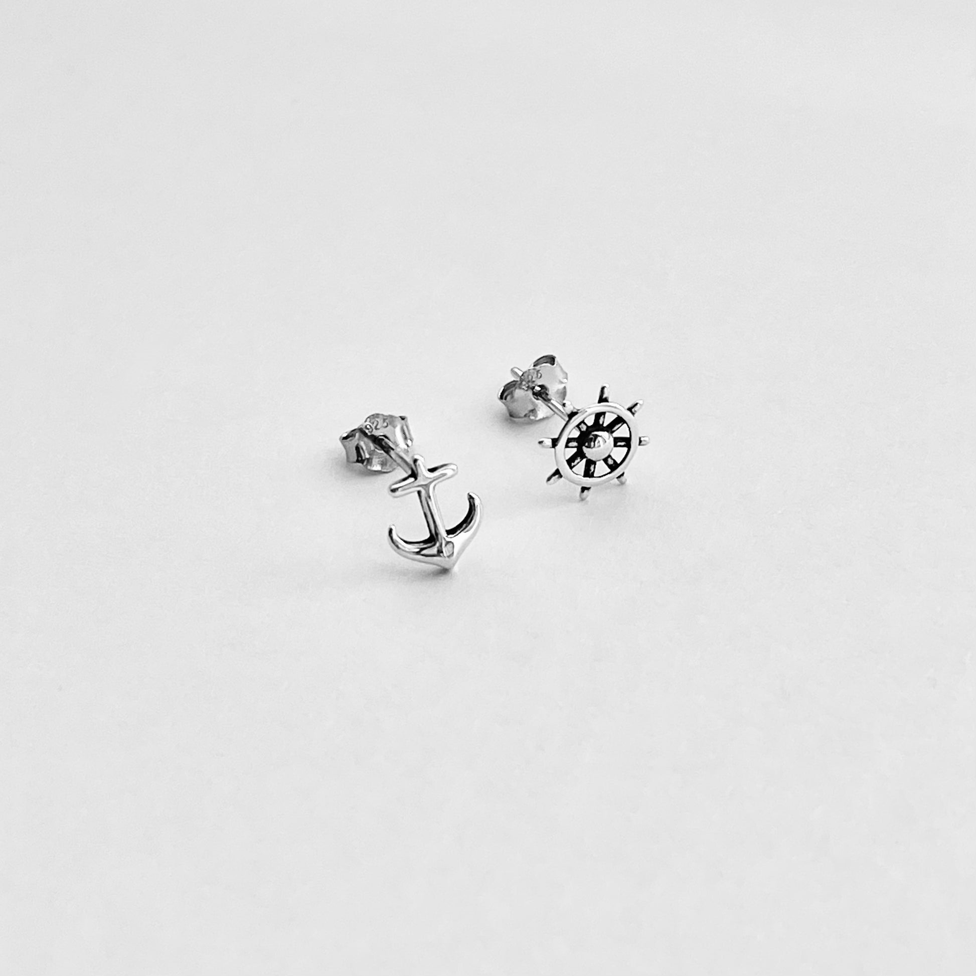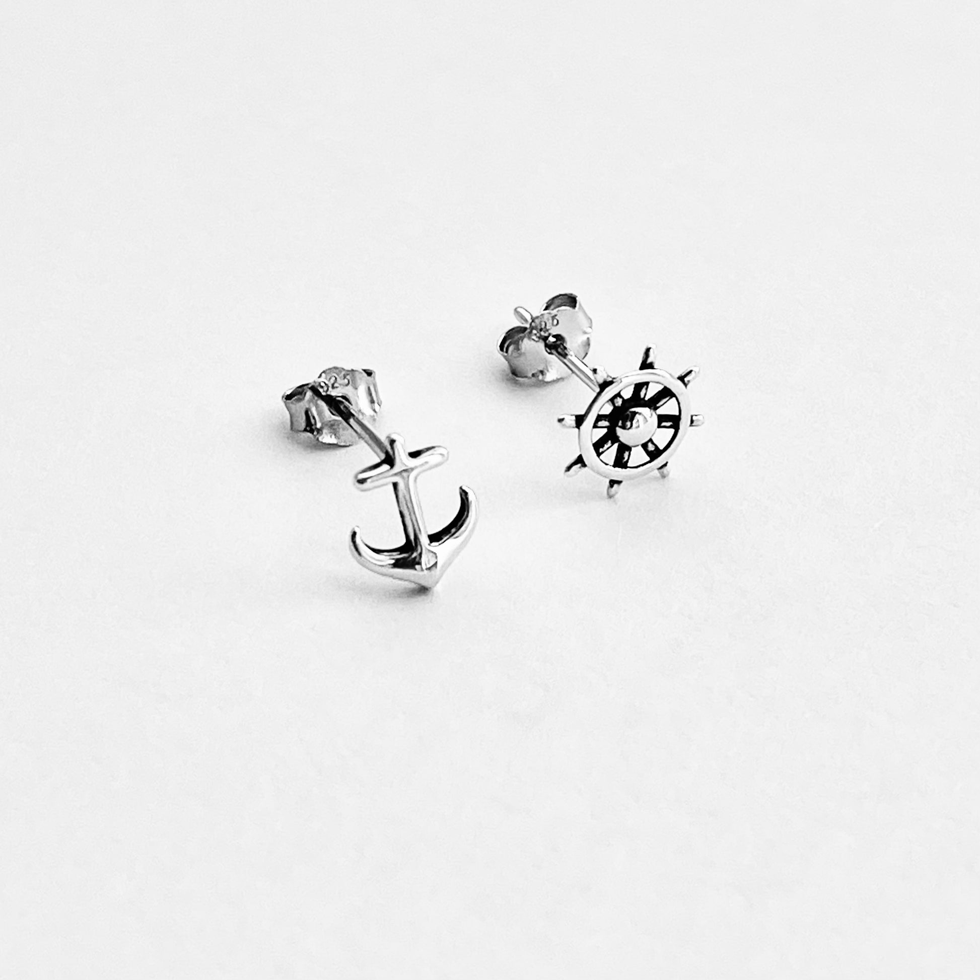 Navigate your style with our 925 Sterling Silver Helm & Anchor Stud Earrings. Perfect for lovers of nautical jewelry, ship-inspired accessories, and handmade sterling silver earrings, these earrings feature detailed helm and anchor motifs that celebrate the spirit of the sea.