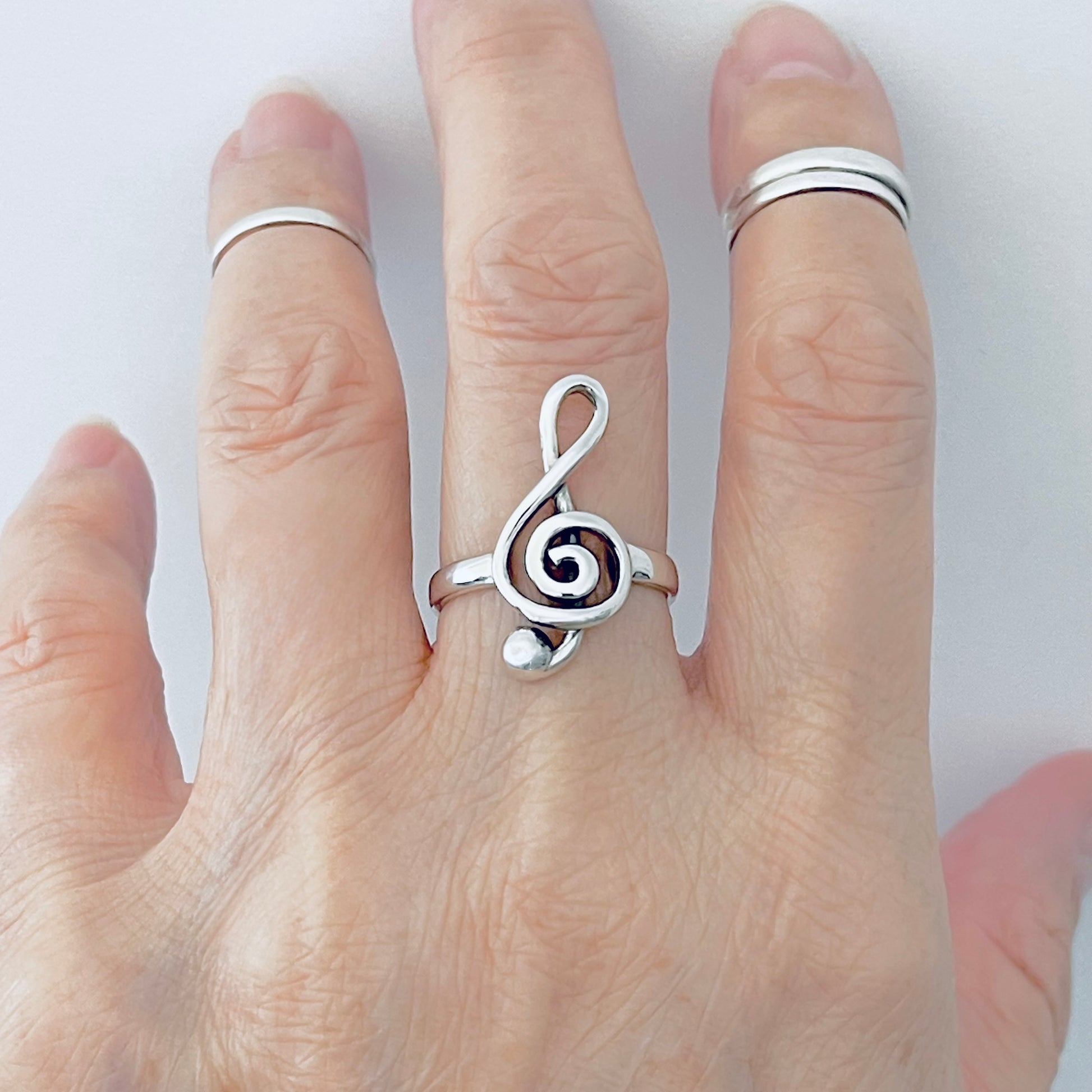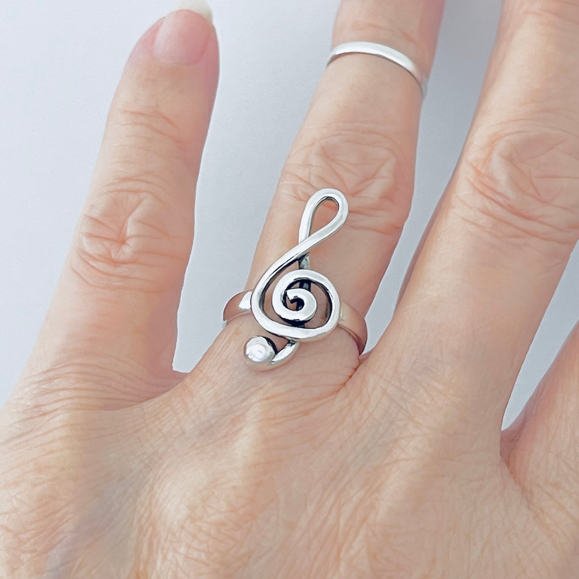 Sterling Silver Large Music Note Ring | Clef Notes, Musicians Jewelry