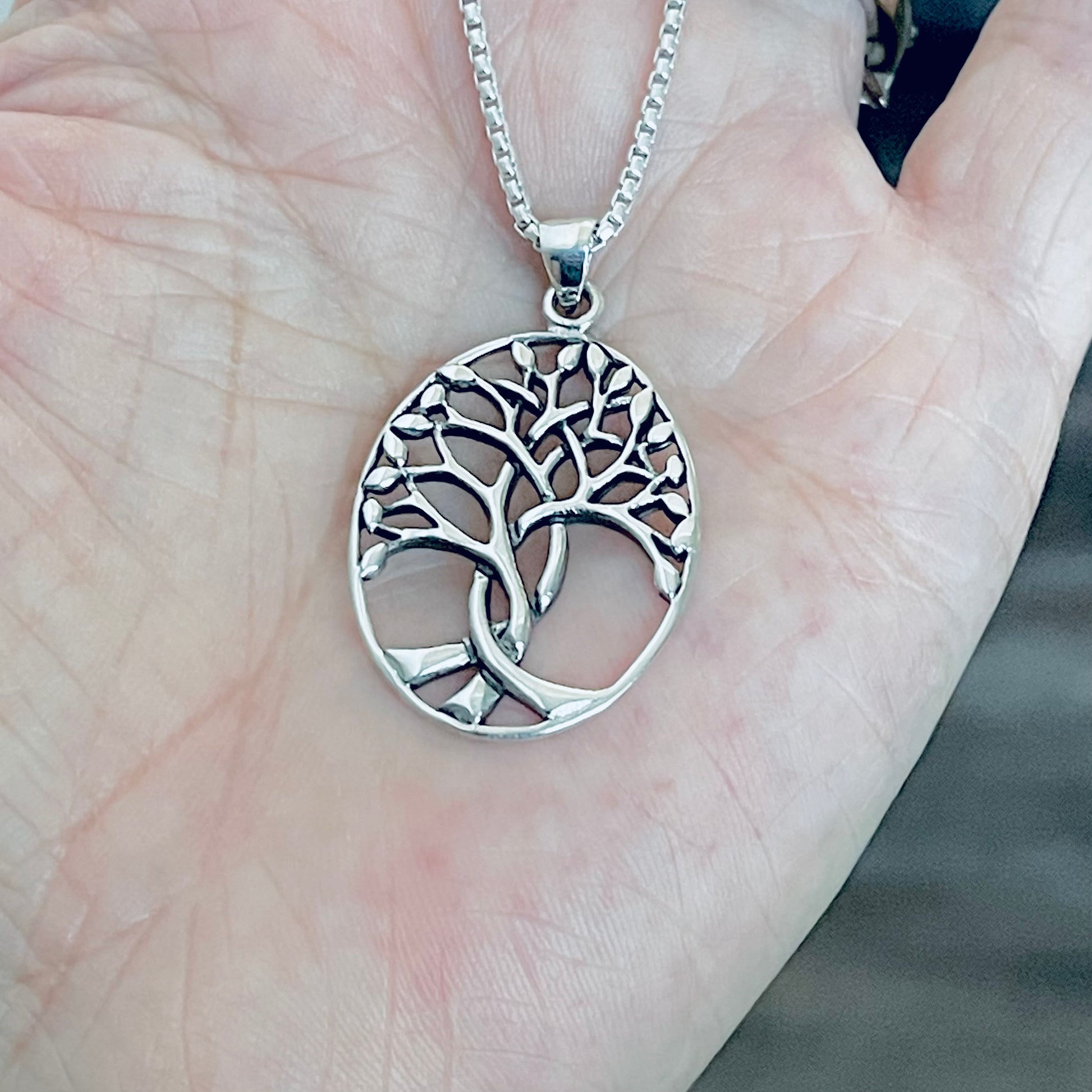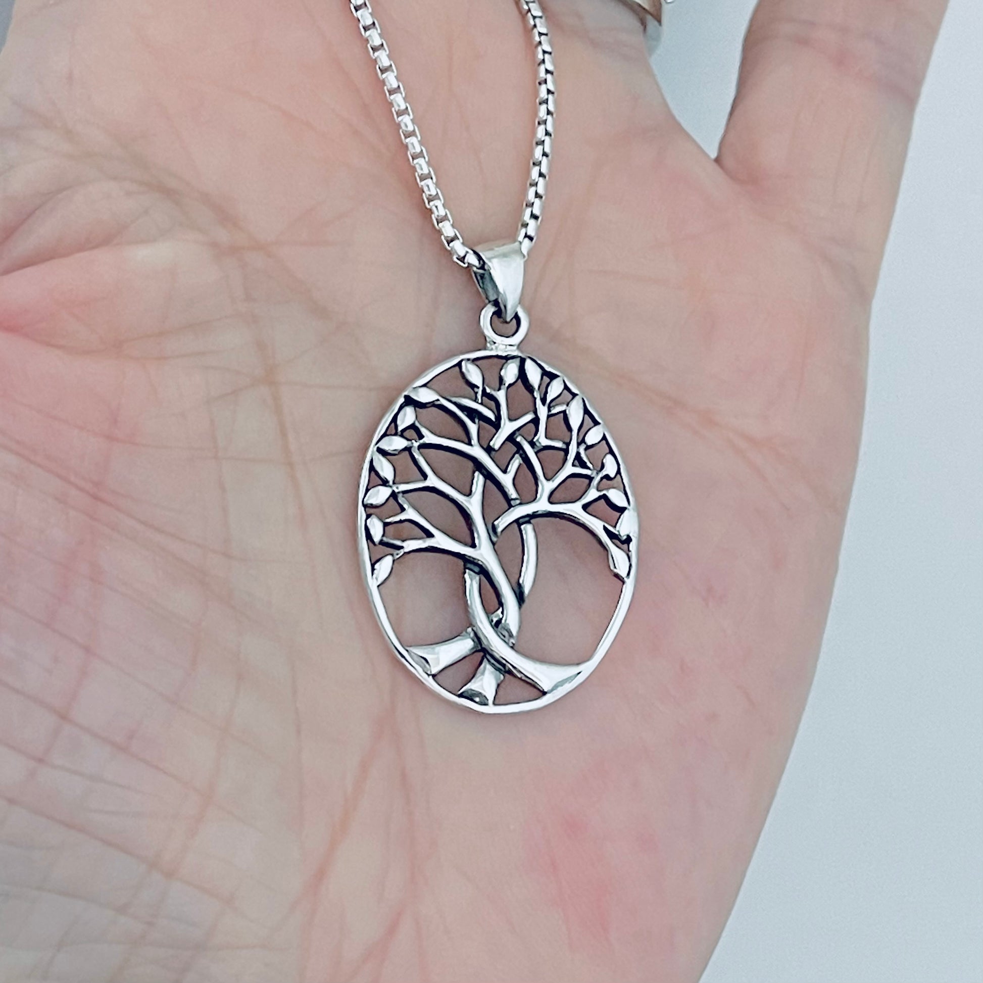 Sterling Silver Tree Of Life Pendant with Box Necklace, Boho Necklace, Silver Necklace, Tree Necklace, Statement Necklace, Fortune Necklace, Leaves Necklace, 925 Stamped