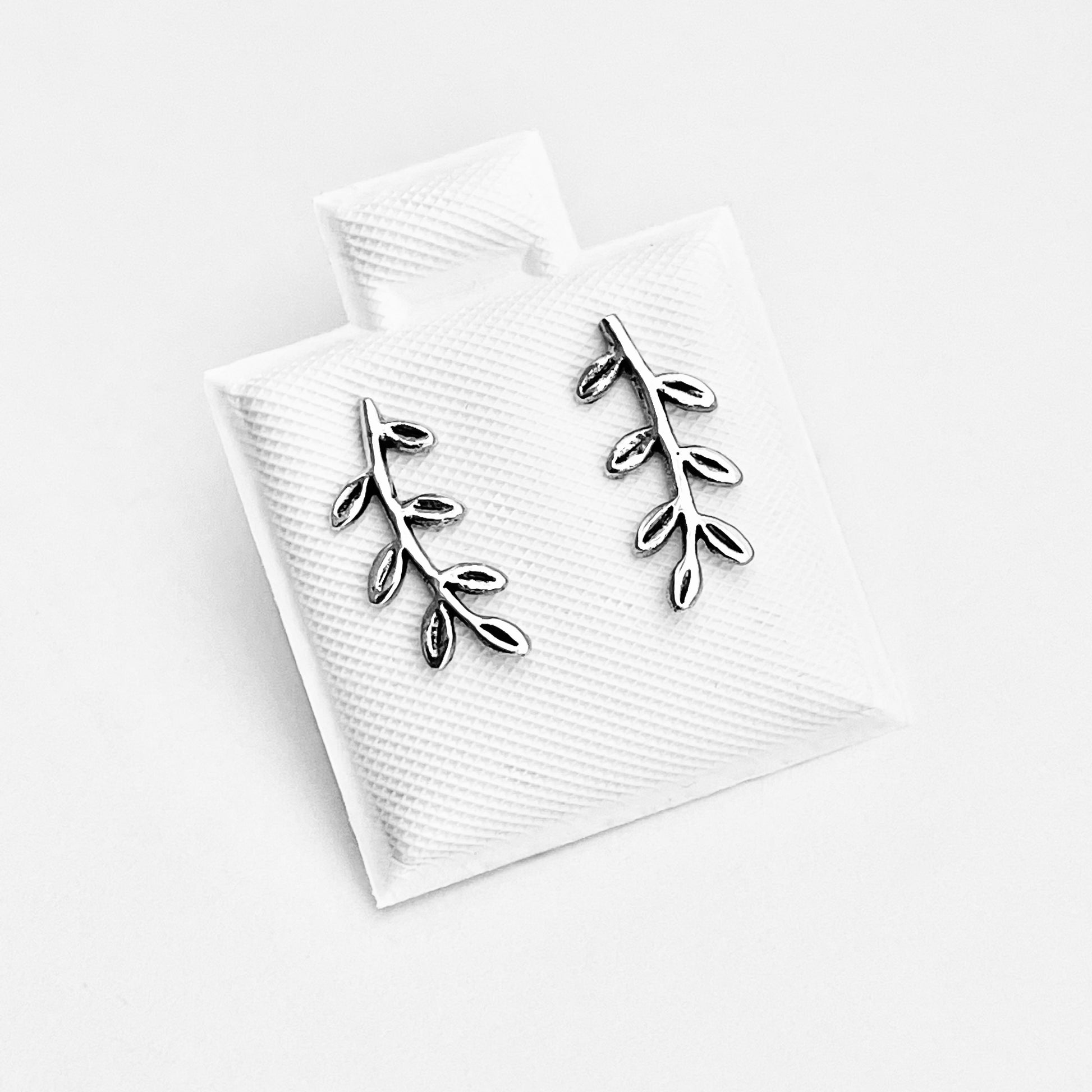 925 Sterling Silver Leaf Branch Stud Earrings | Nature-Inspired Tree & Plant Design