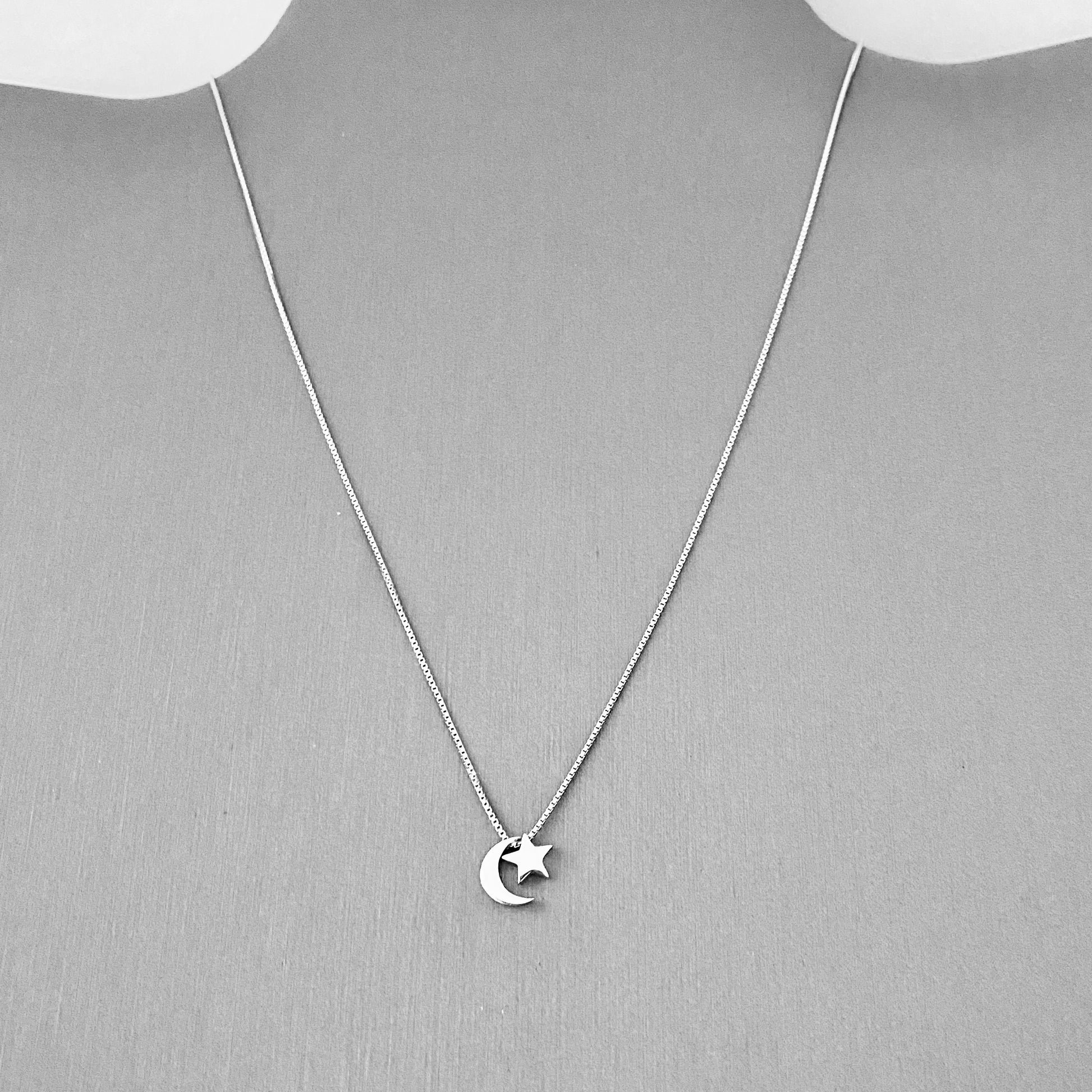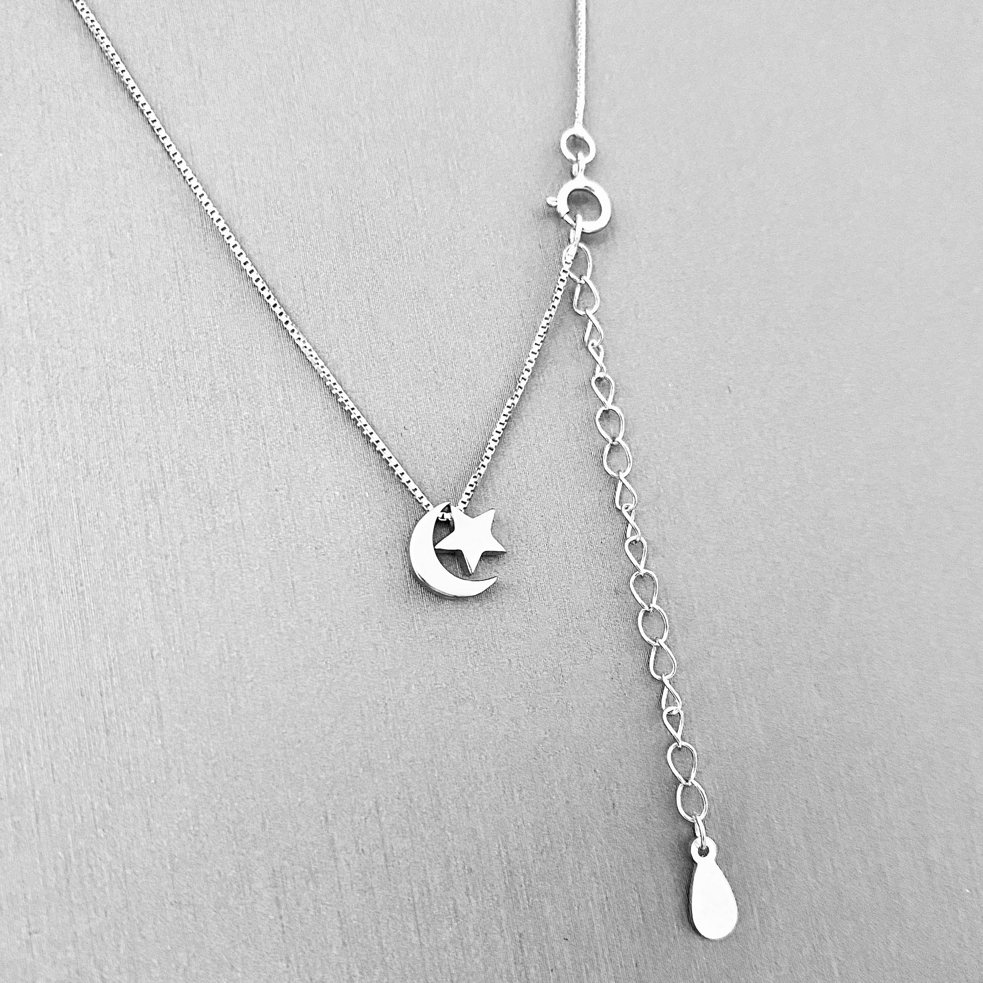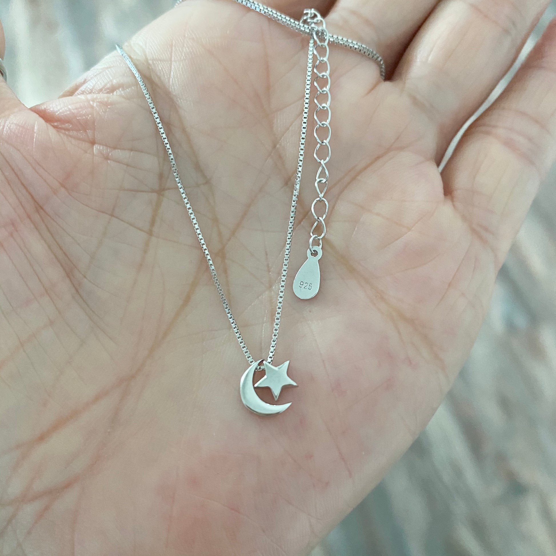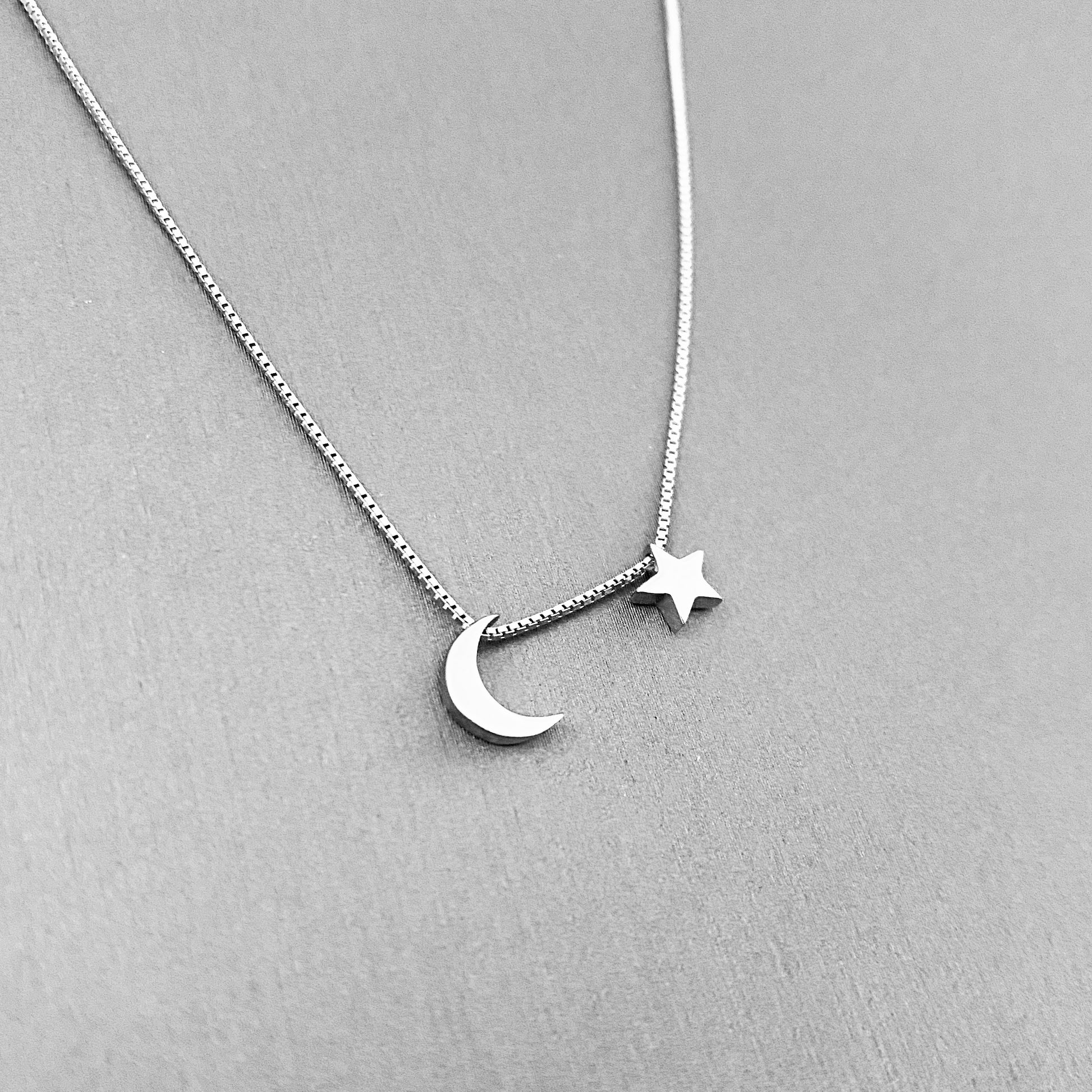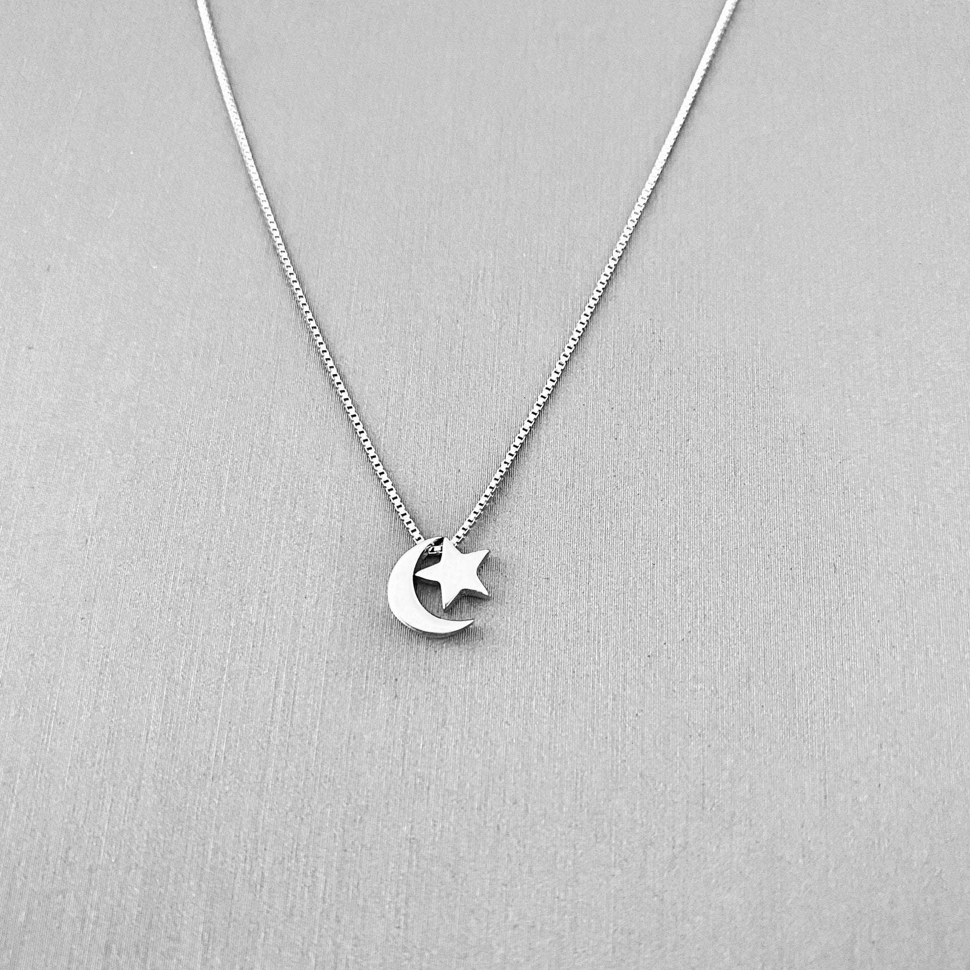 Sterling Silver Little Dainty Crescent Moon and Star Necklace, Silver Chain, Celestial Necklaces