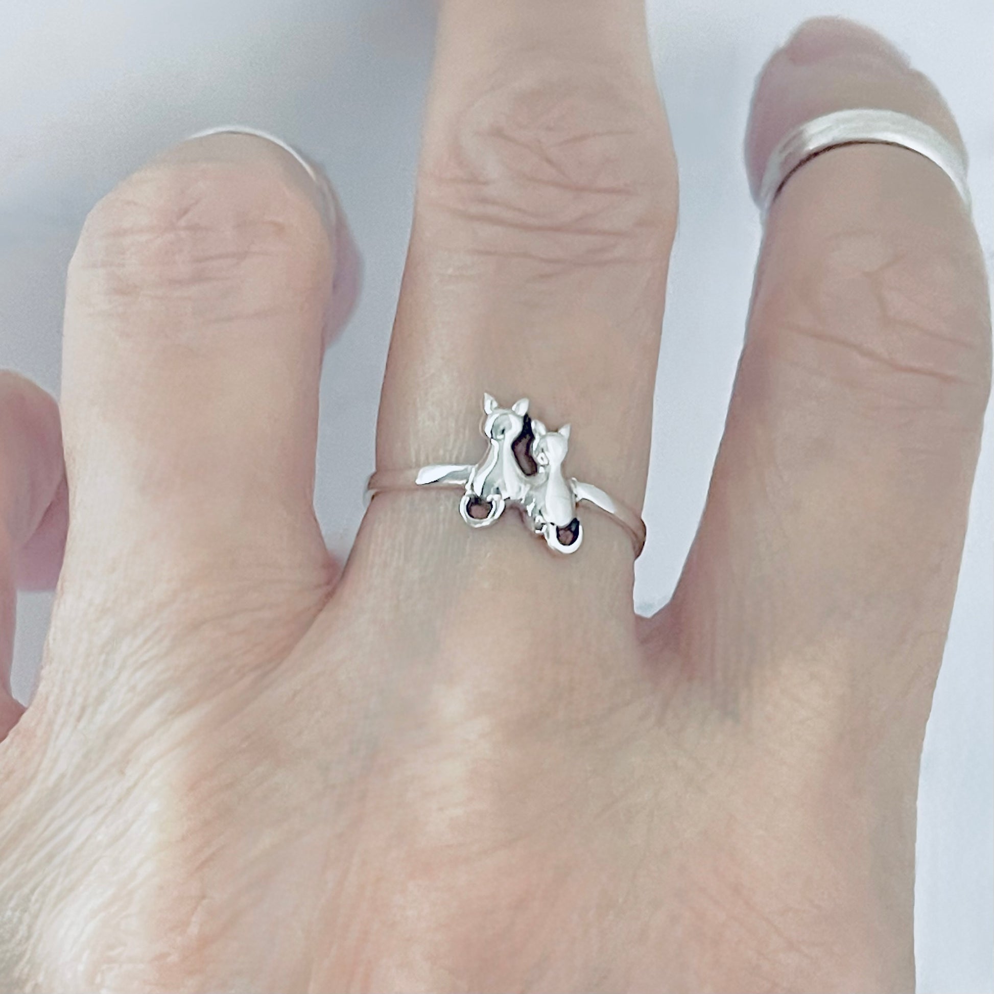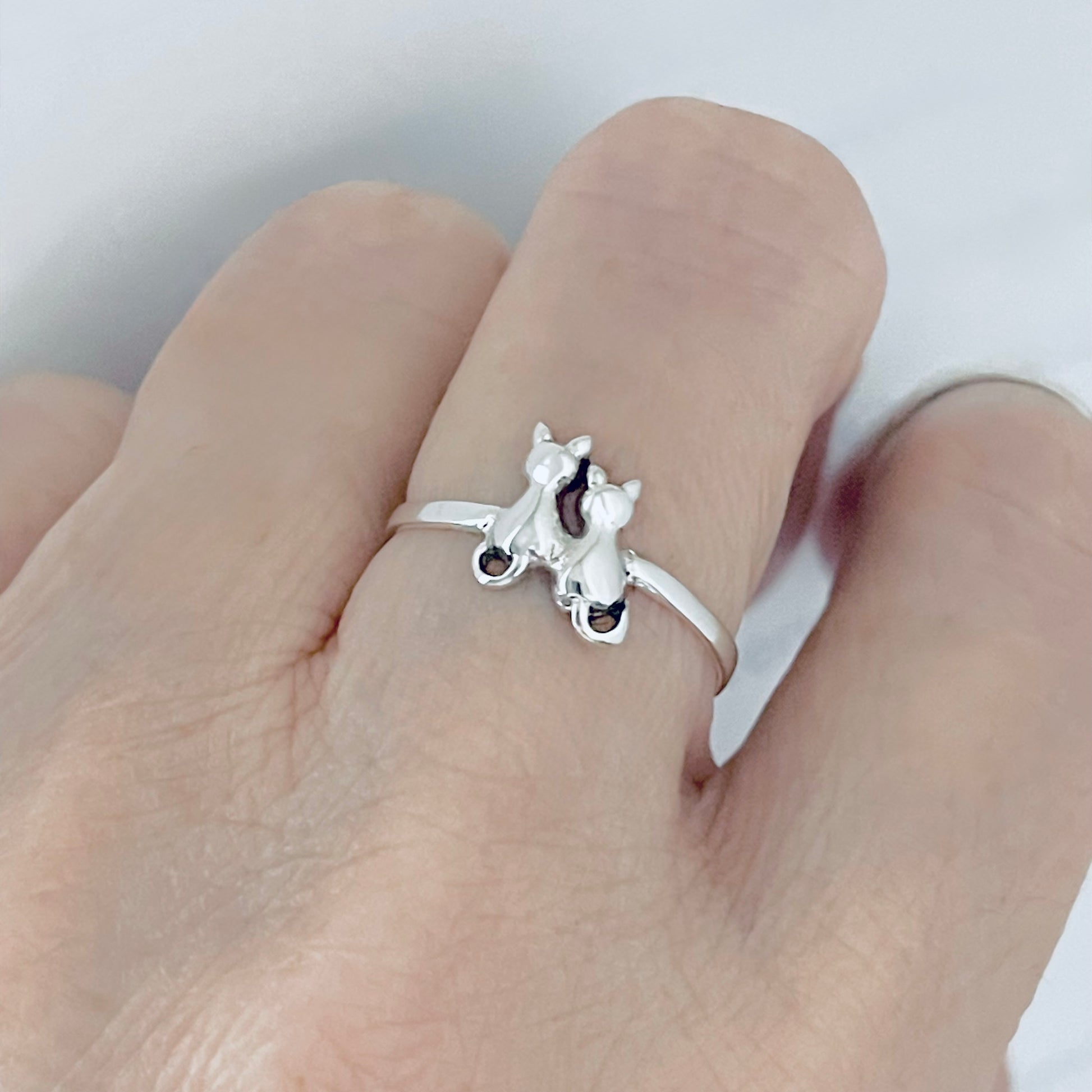 Sterling Silver Dainty Little Best Friends Cat Ring, Delicate Kitten Rings, Animal Pets Jewelry