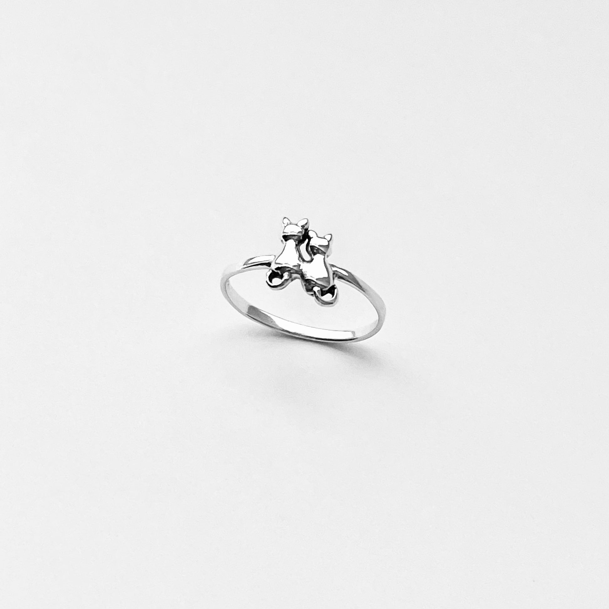 Sterling Silver Little Delicate Best friends Cat Ring, Dainty Kitty Rings, Animal Pets Jewelry, Silver Rings, Kids Ring, 925 Stamped