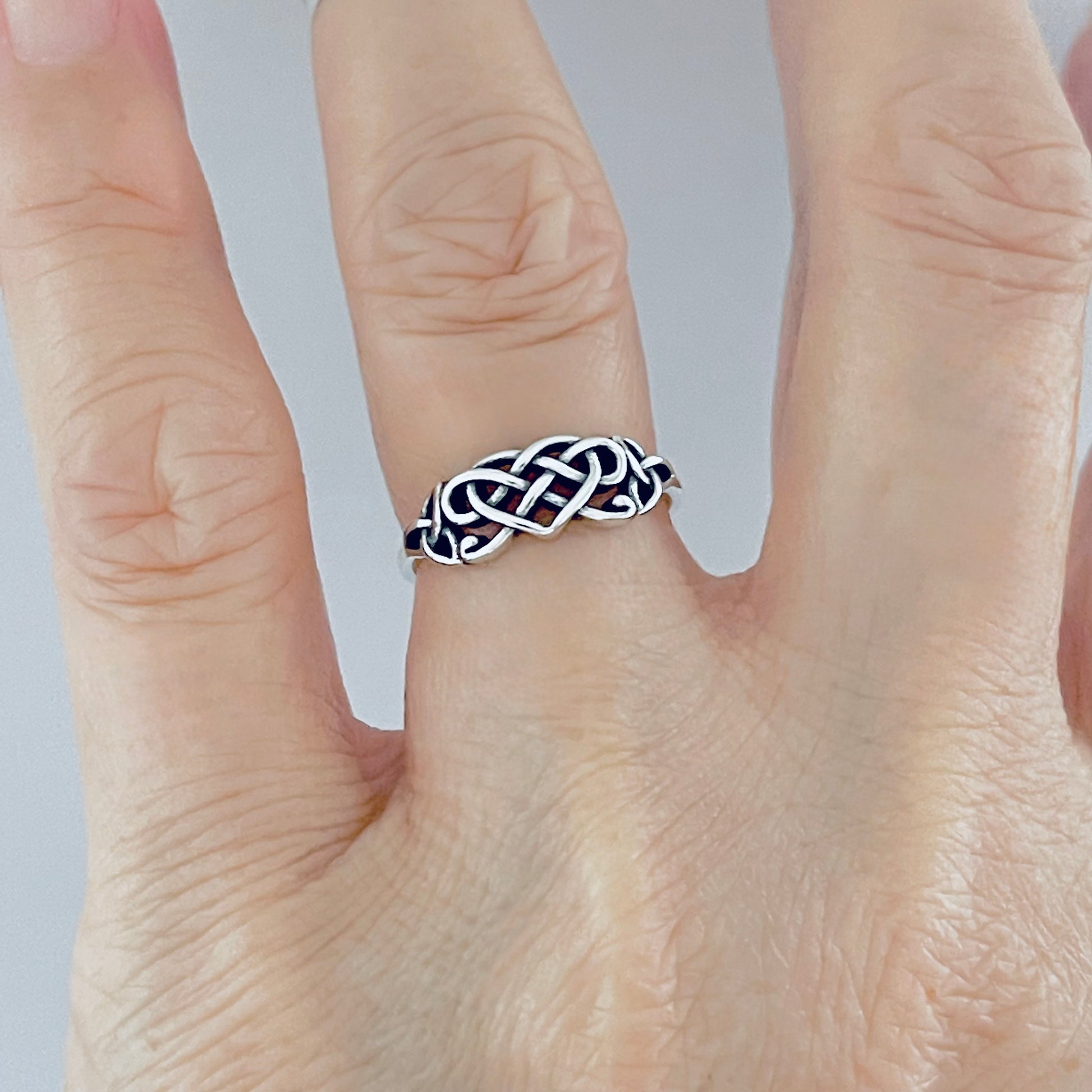 Sterling Silver Small Triquetra and Celtic Heart Ring, Dainty Trinity Knots Jewelry