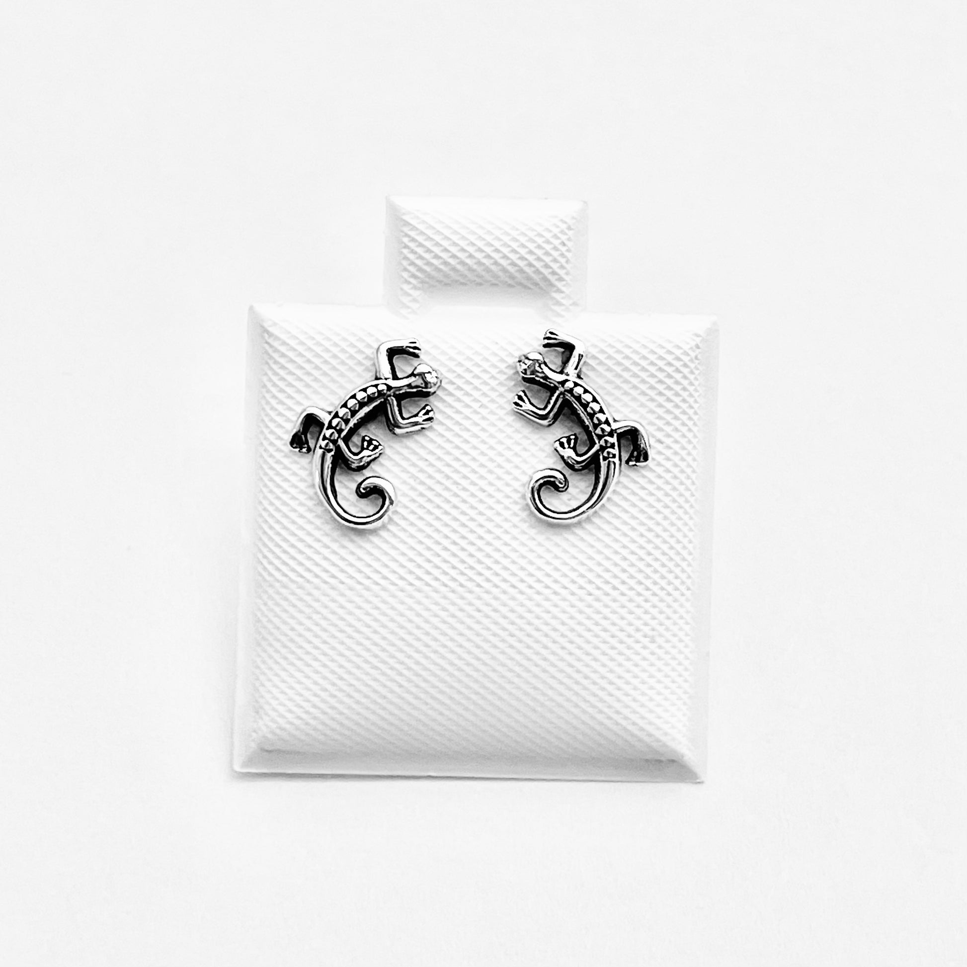 925 Sterling Silver Lizard Stud Earrings | Gecko & Reptile Silver Earrings