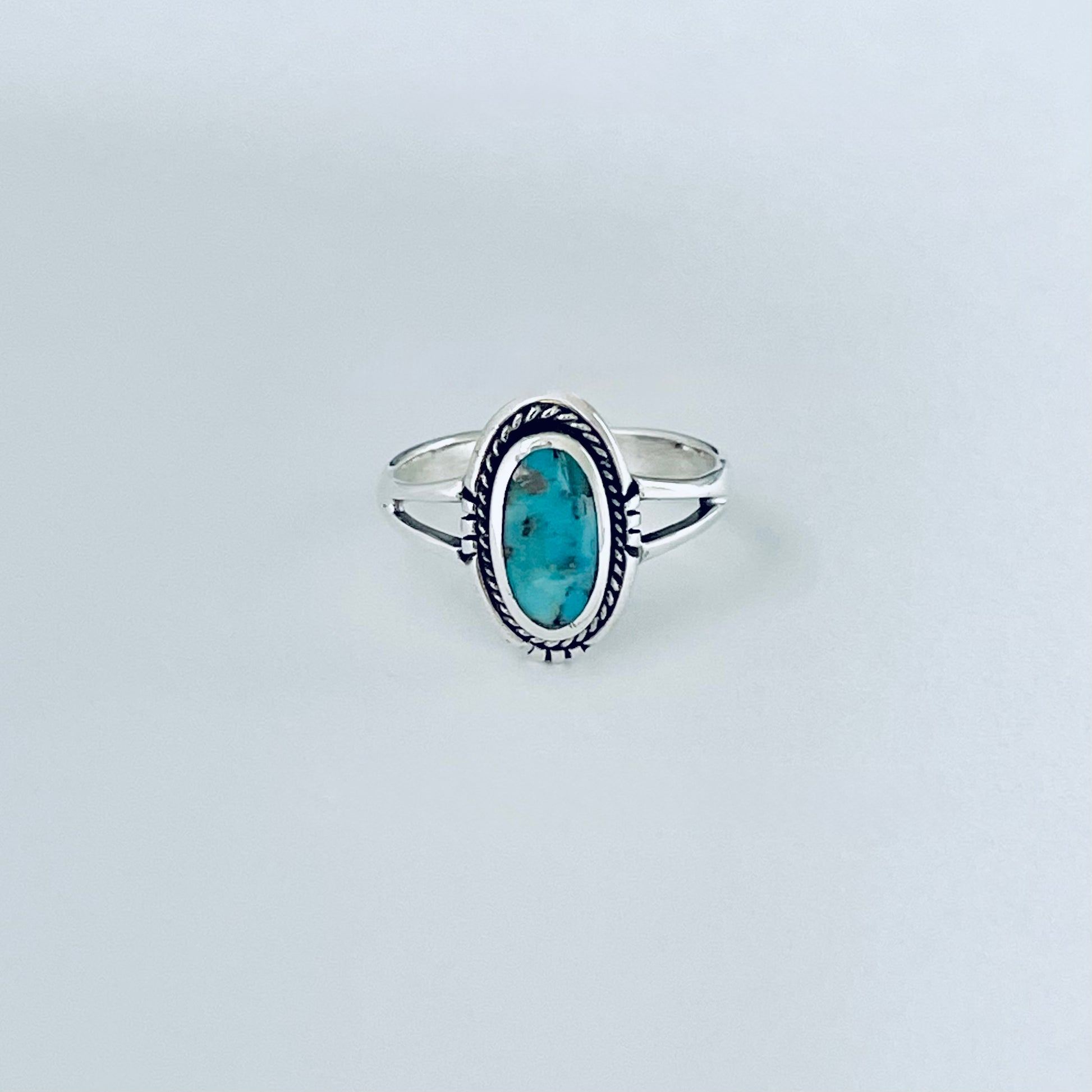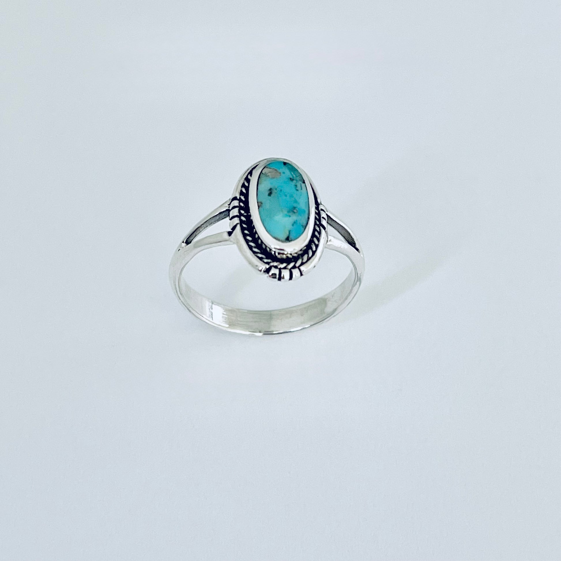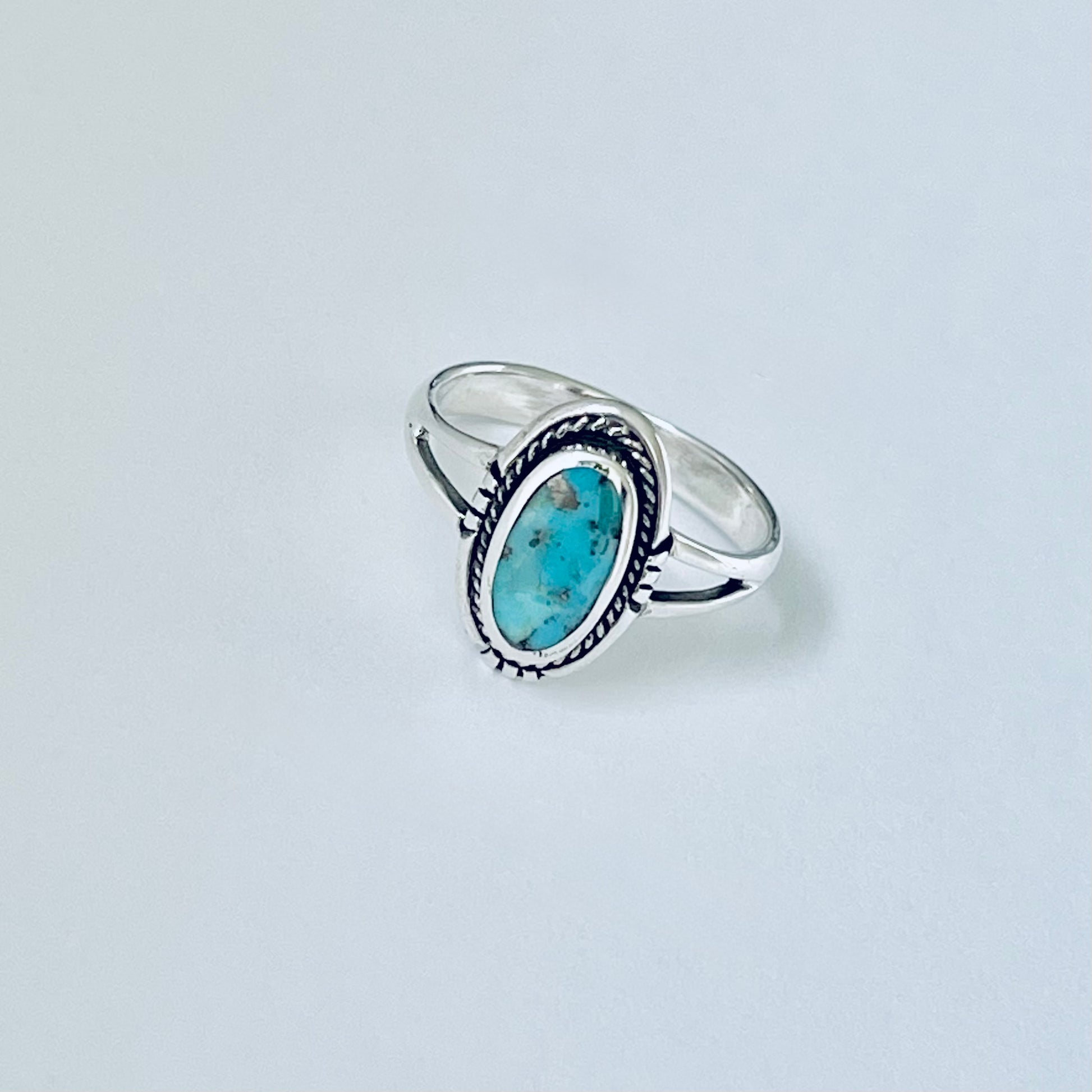 Sterling Silver Oval Genuine Turquoise Ring with Braid, Statement Stone Jewelry