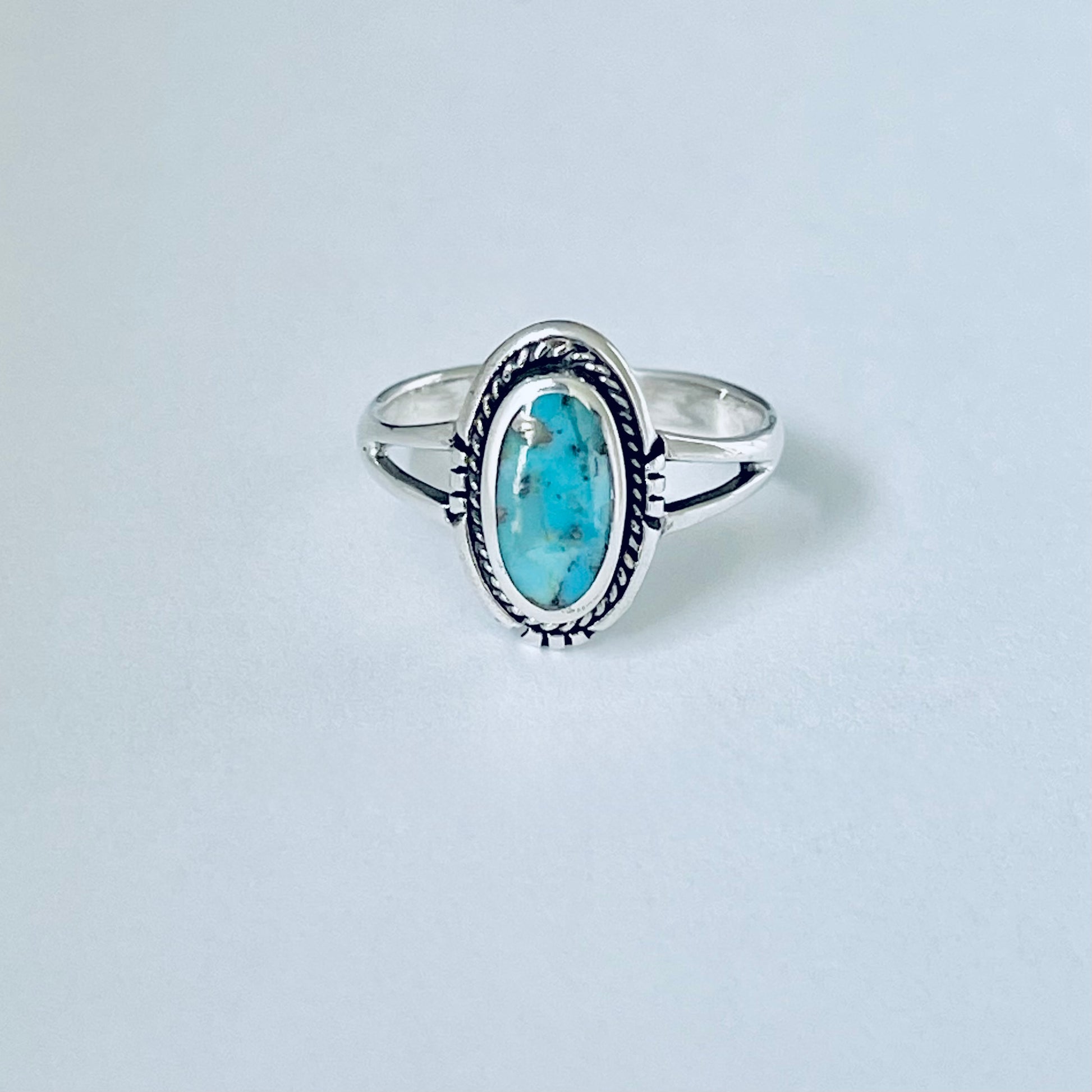 Sterling Silver Medium Oval Genuine Turquoise Ring, Boho Ring, Silver Ring, Turquoise Ring, Statement Stone Jewelry, 925 Stamped