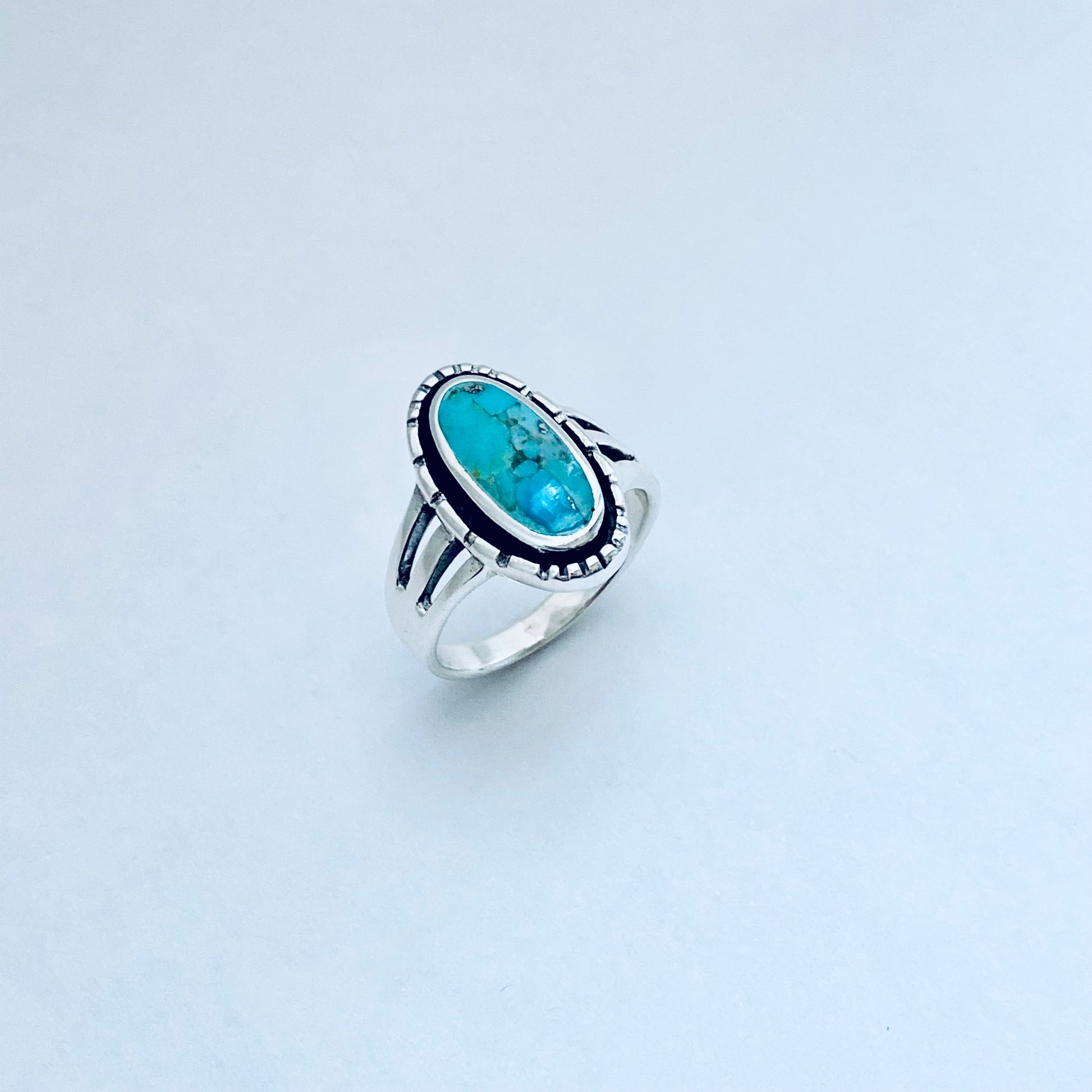 Sterling Silver Oval Genuine Turquoise Ring, Statement Boho Jewelry