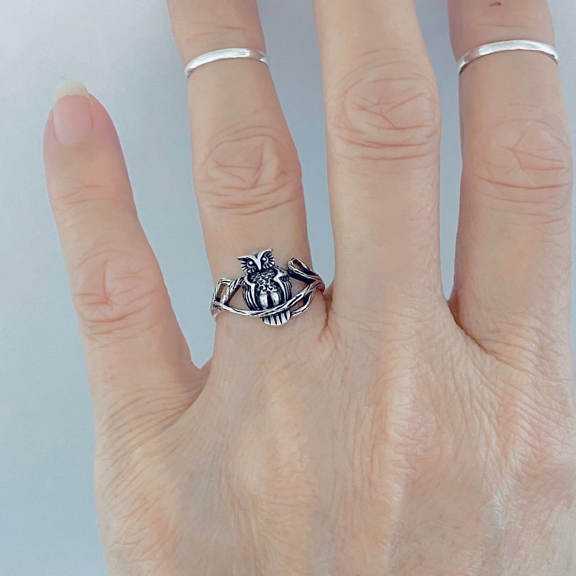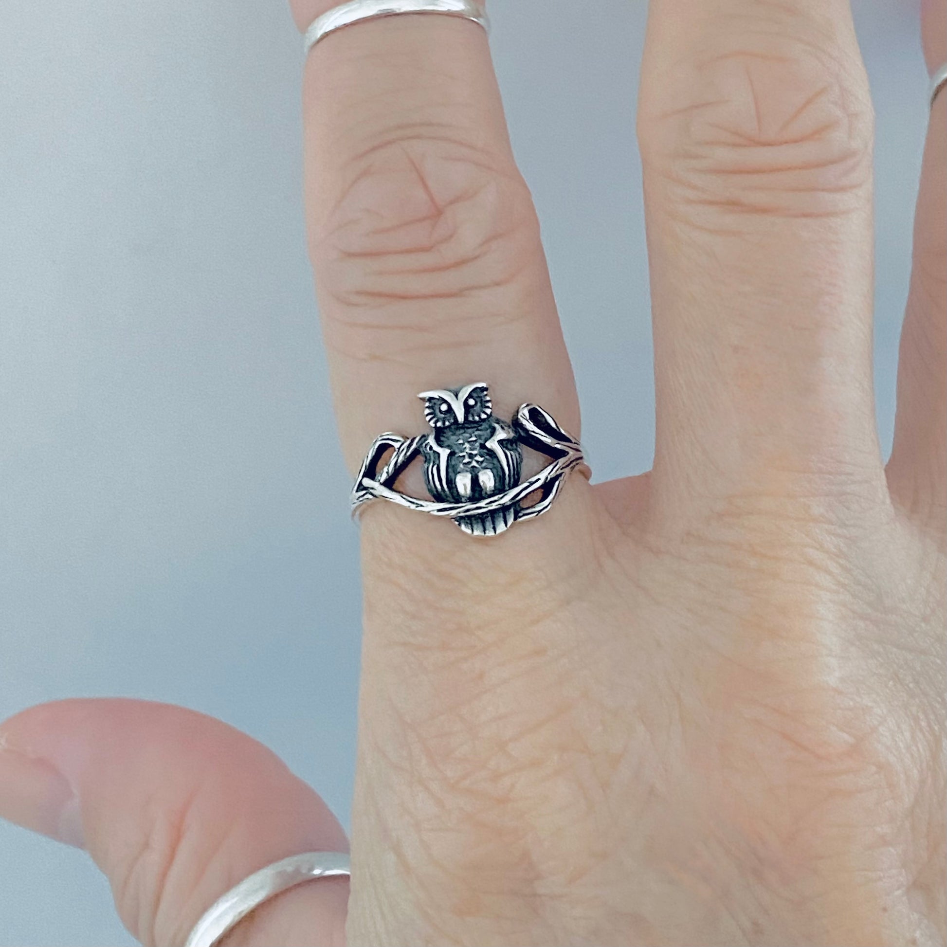 Sterling Silver Owl on Branch Ring, Spirit Bird Rings, Animal Jewelry