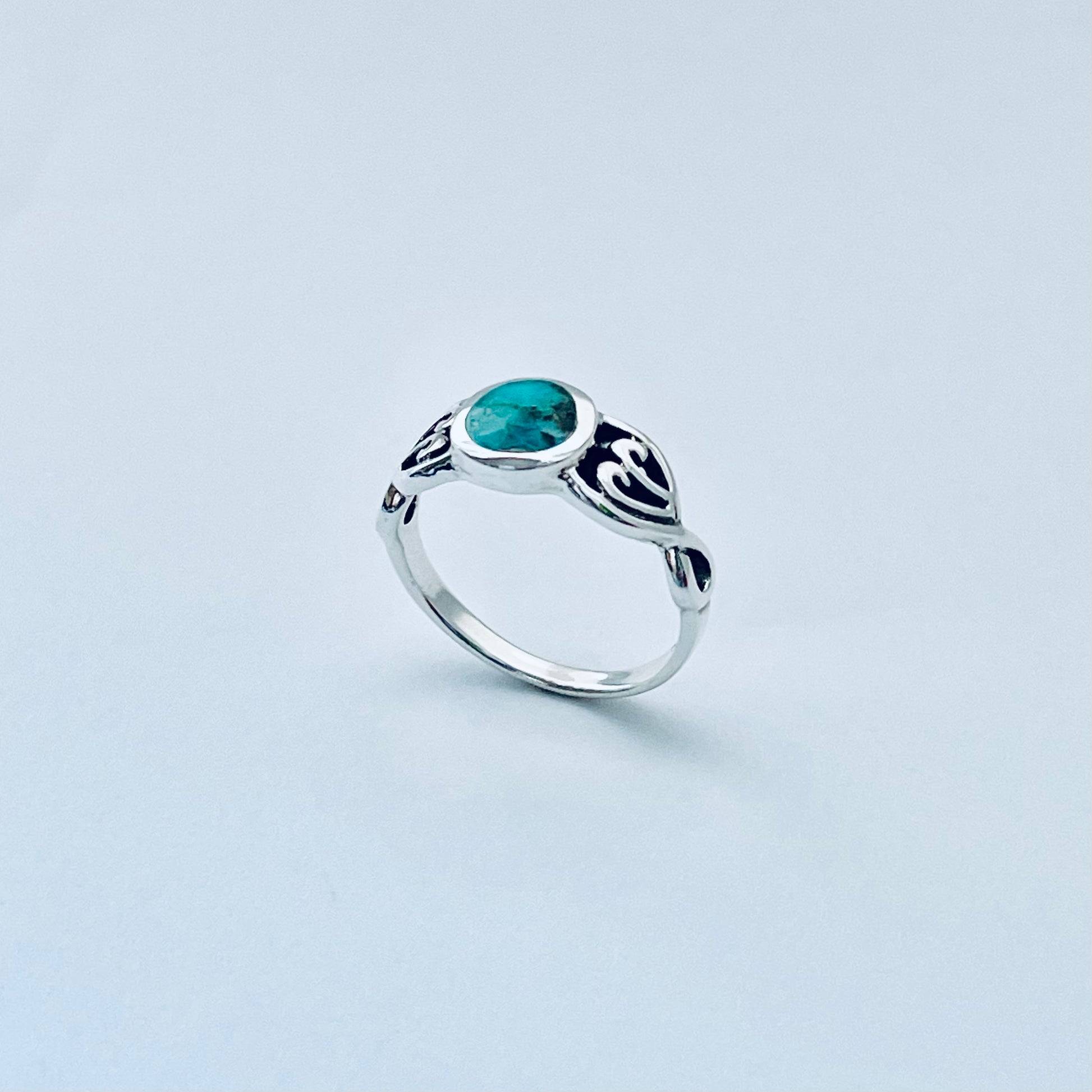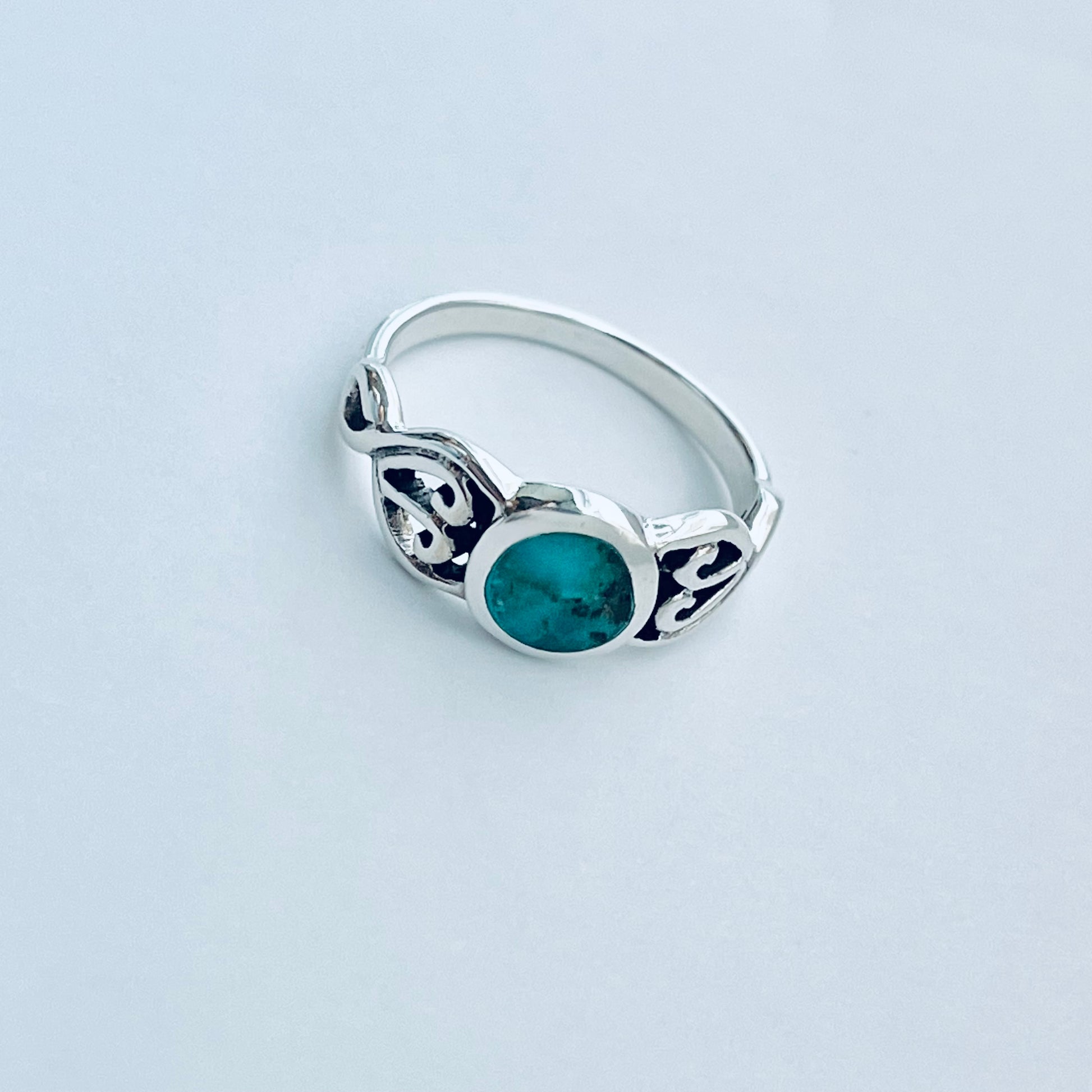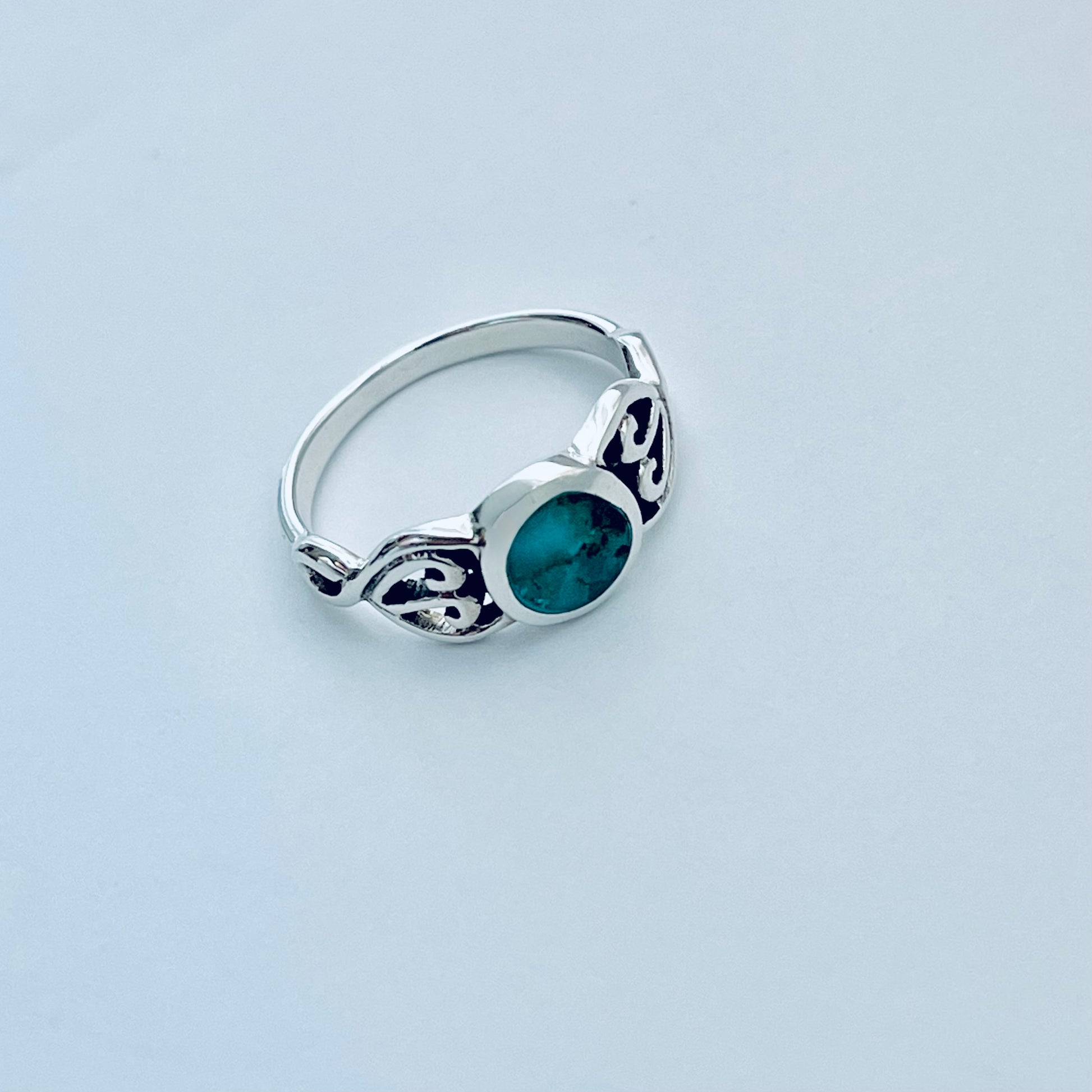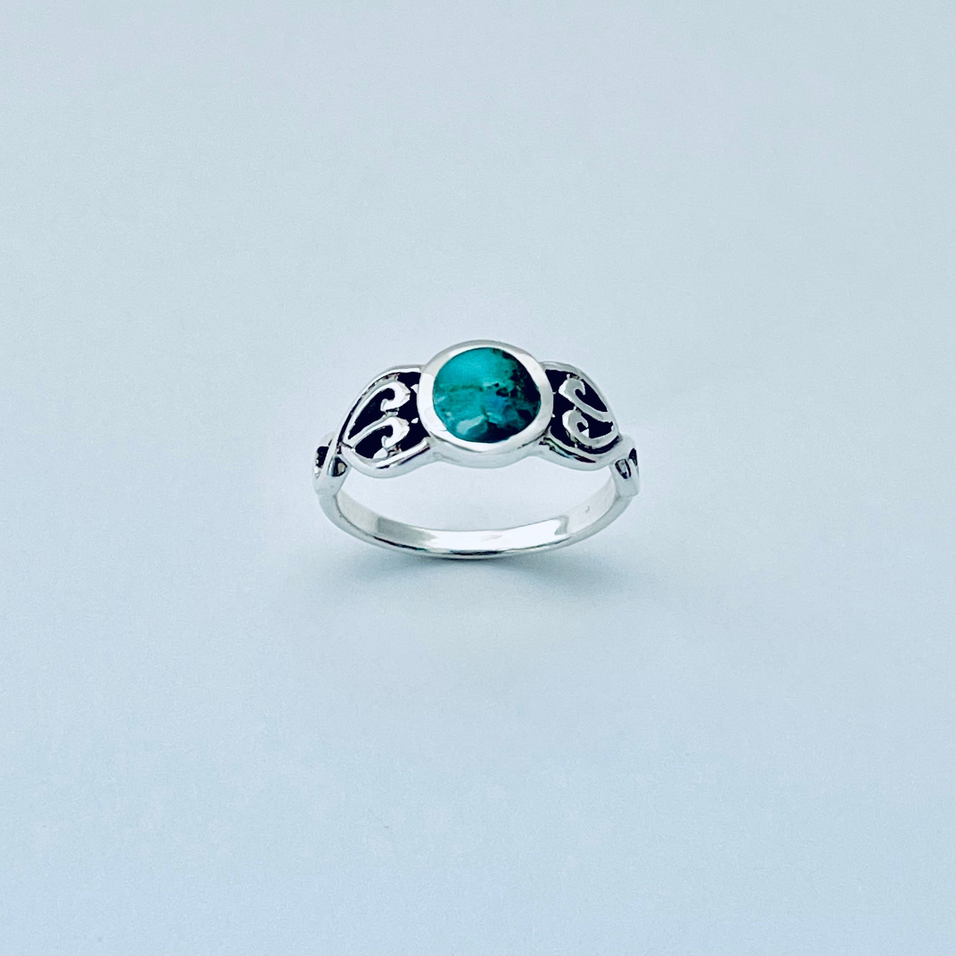 Sterling Silver Round Genuine Turquoise Ring with Swirl, Silver Ring, Turquoise Stone Ring, 925 Stamped