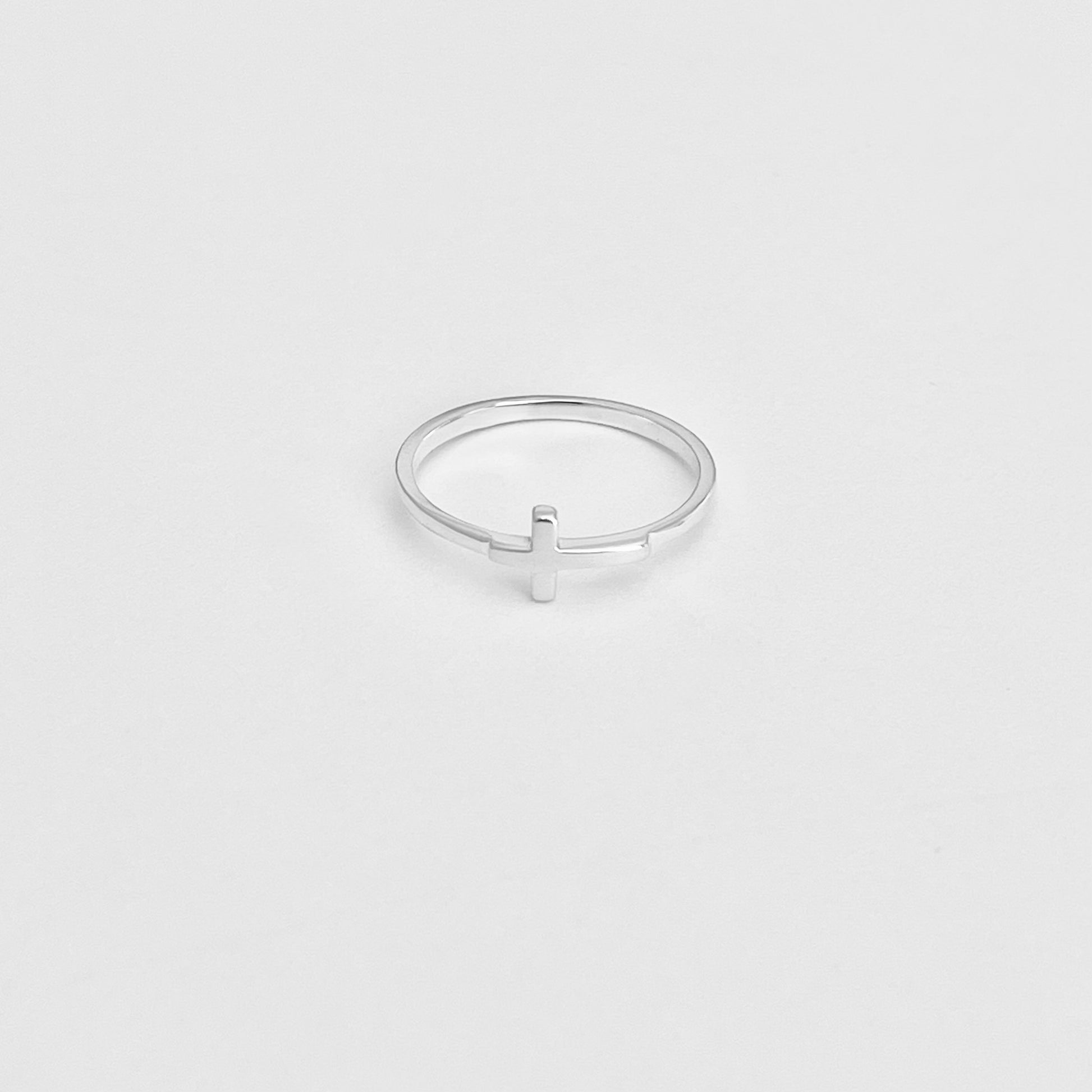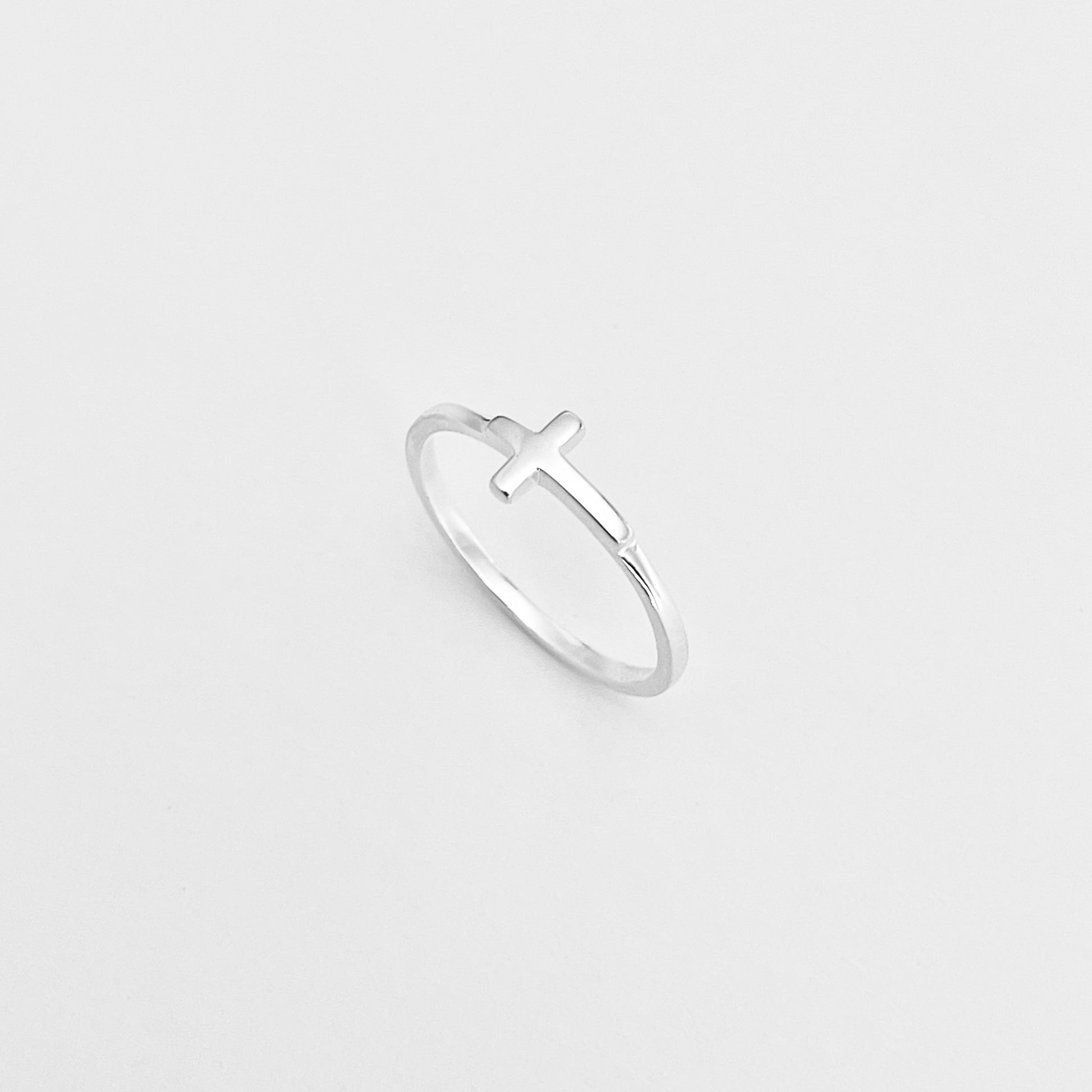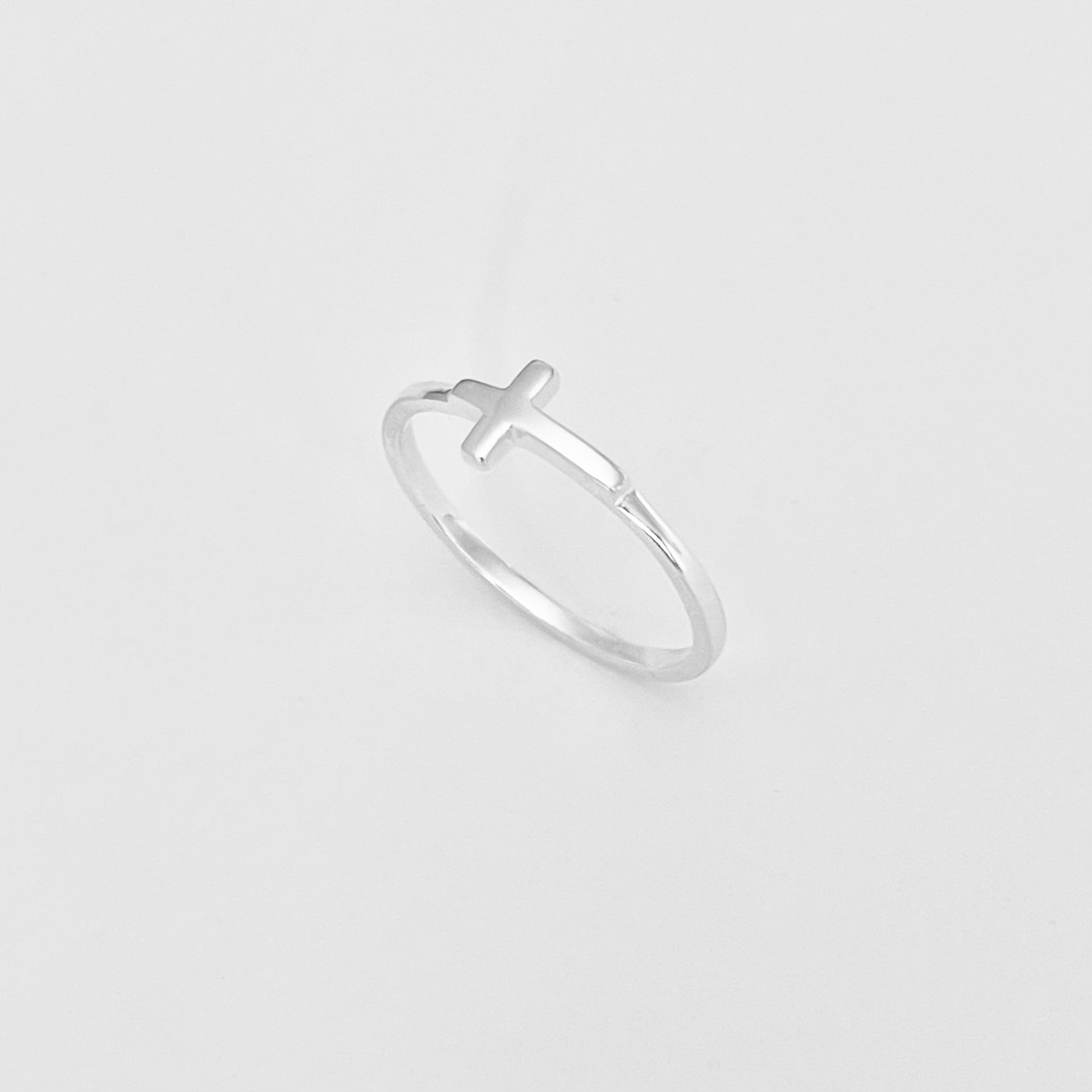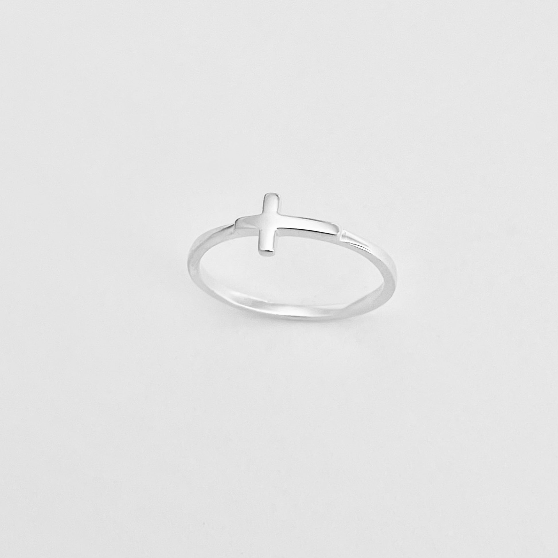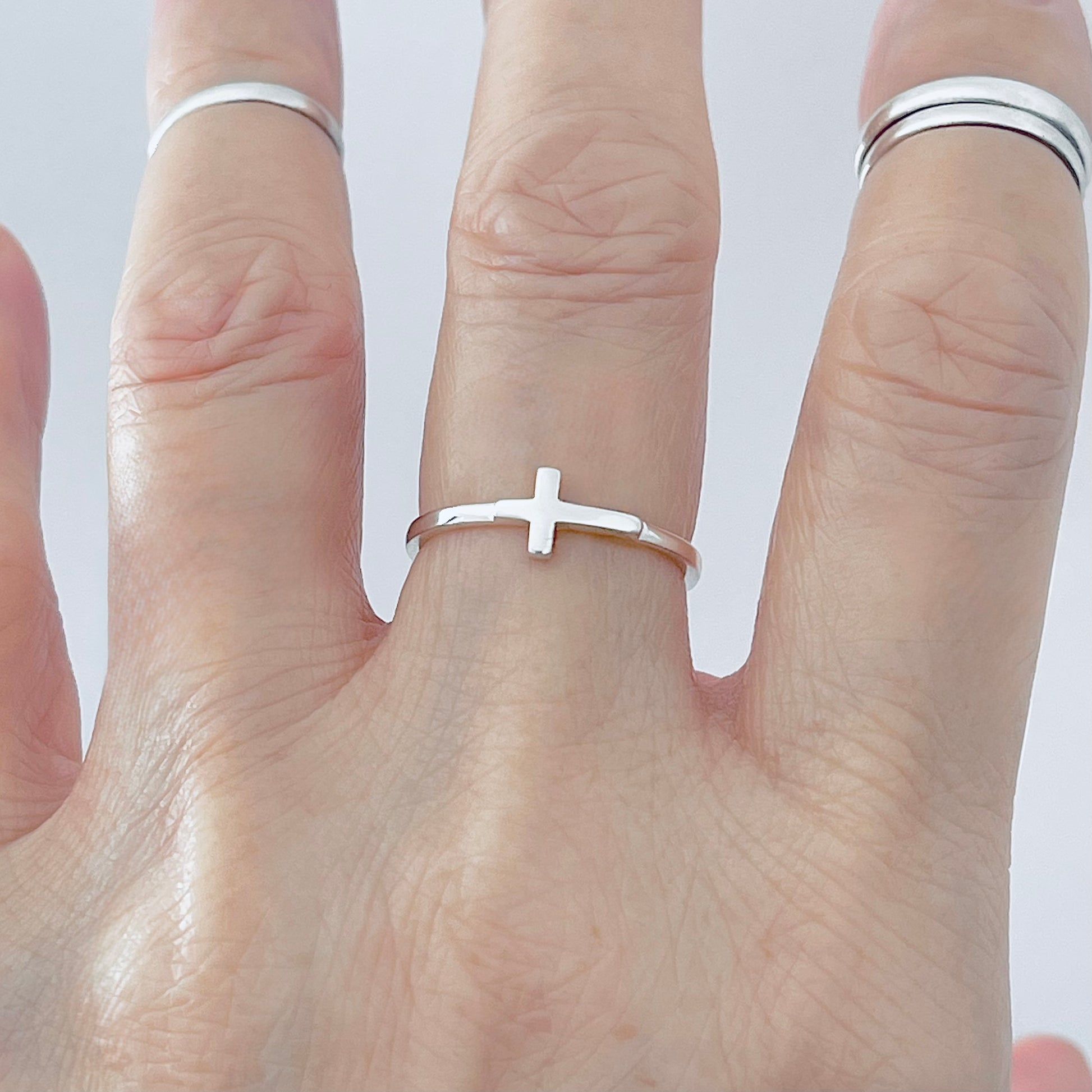 Sterling Silver Small High Polish Sideway Cross Ring, Minimalist Religious Jewelry