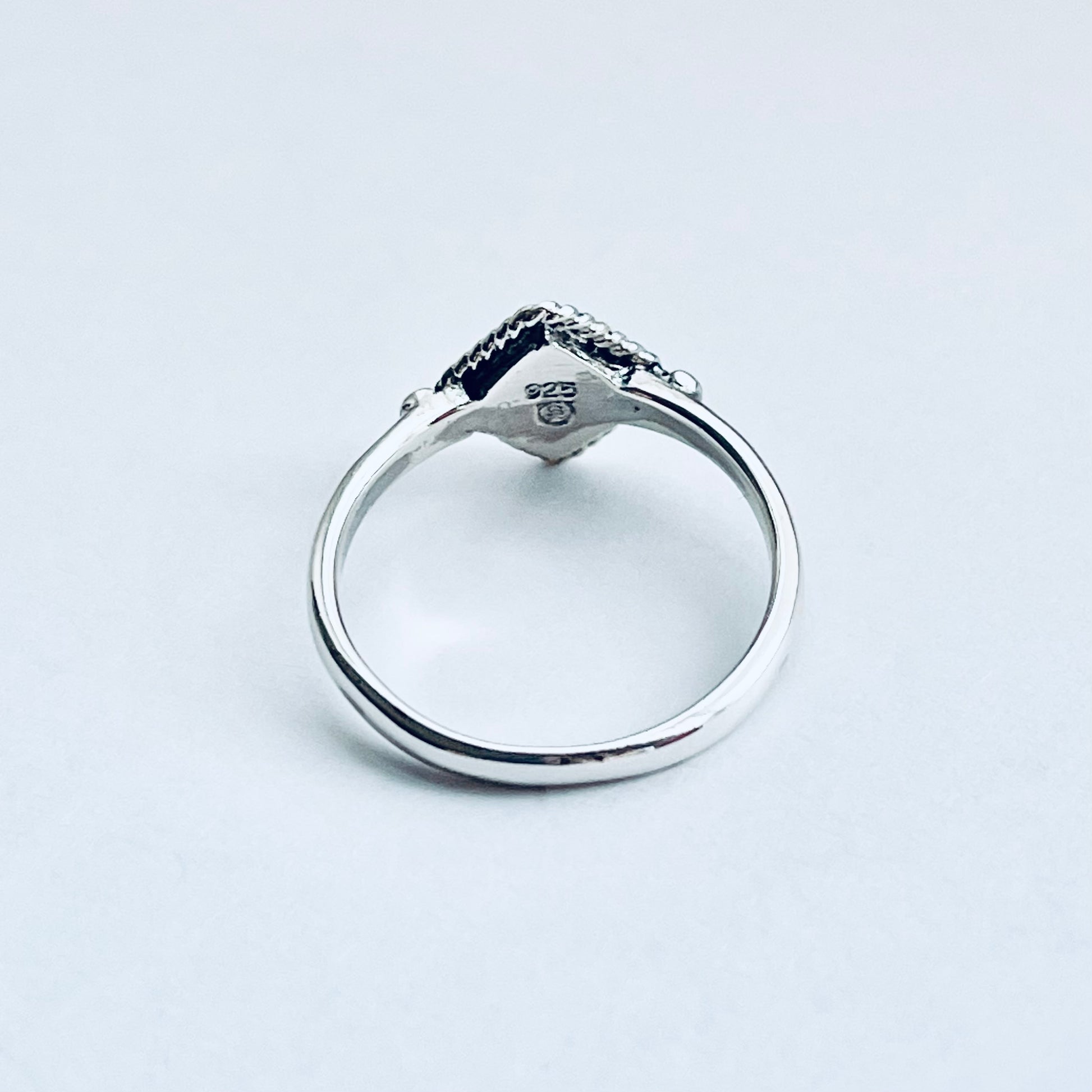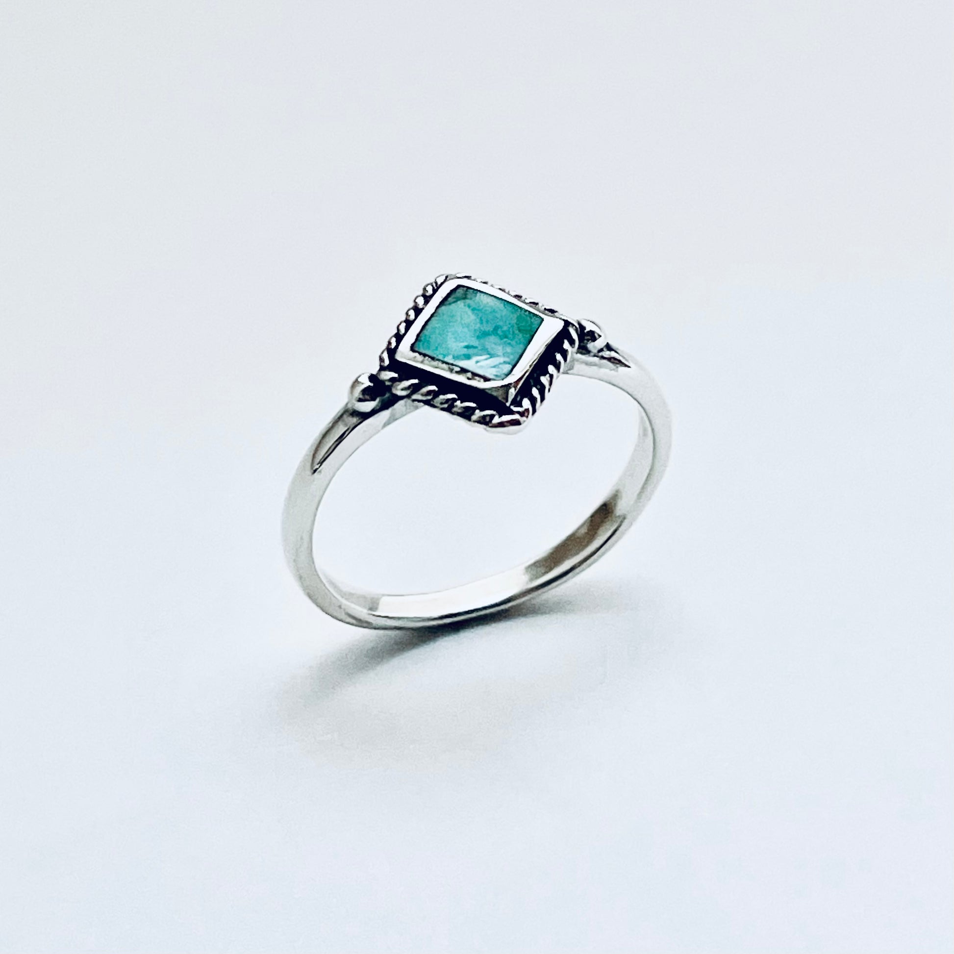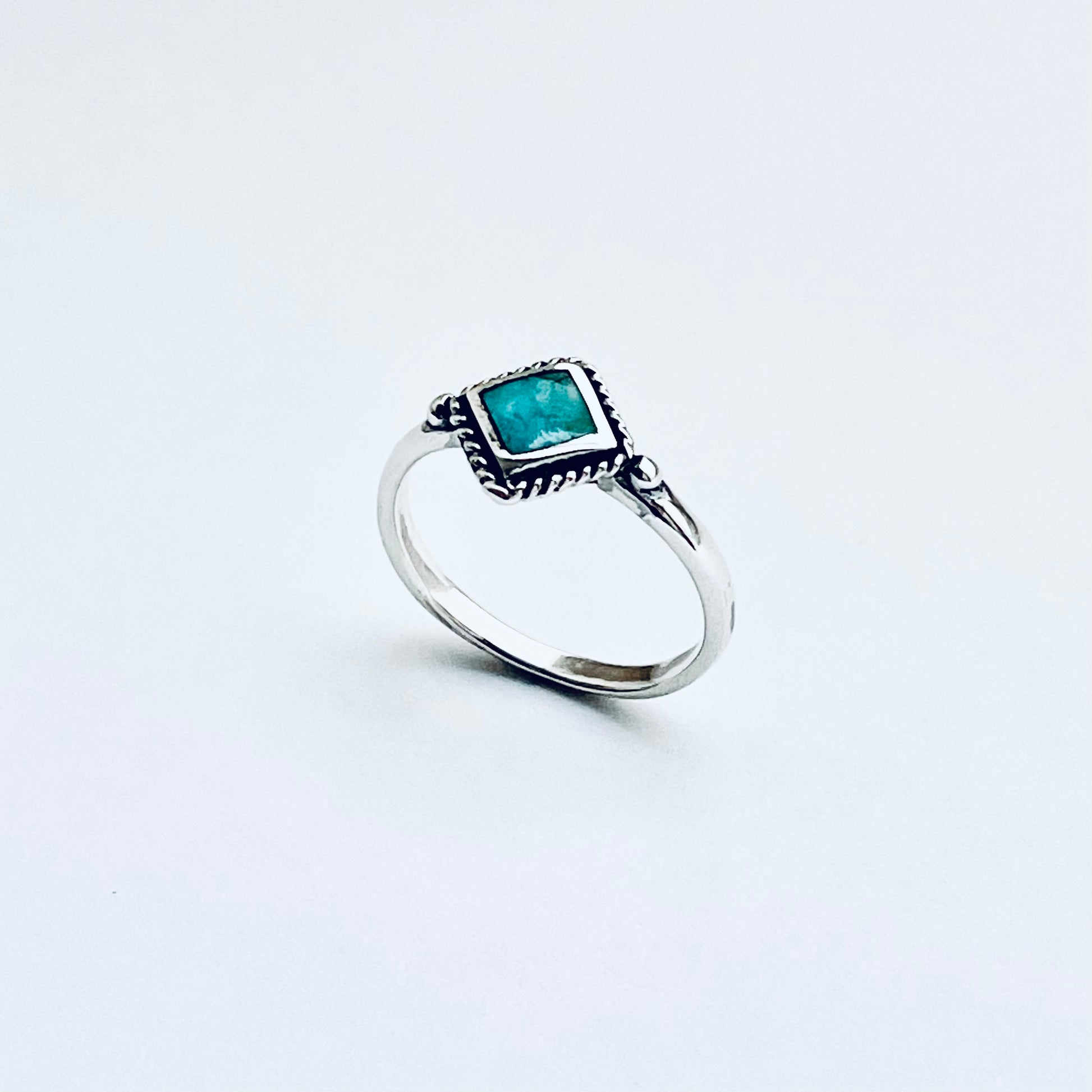 Sterling Silver Small Diamond Shape Genuine Turquoise Ring with Braid, Dainty Stone Jewelry