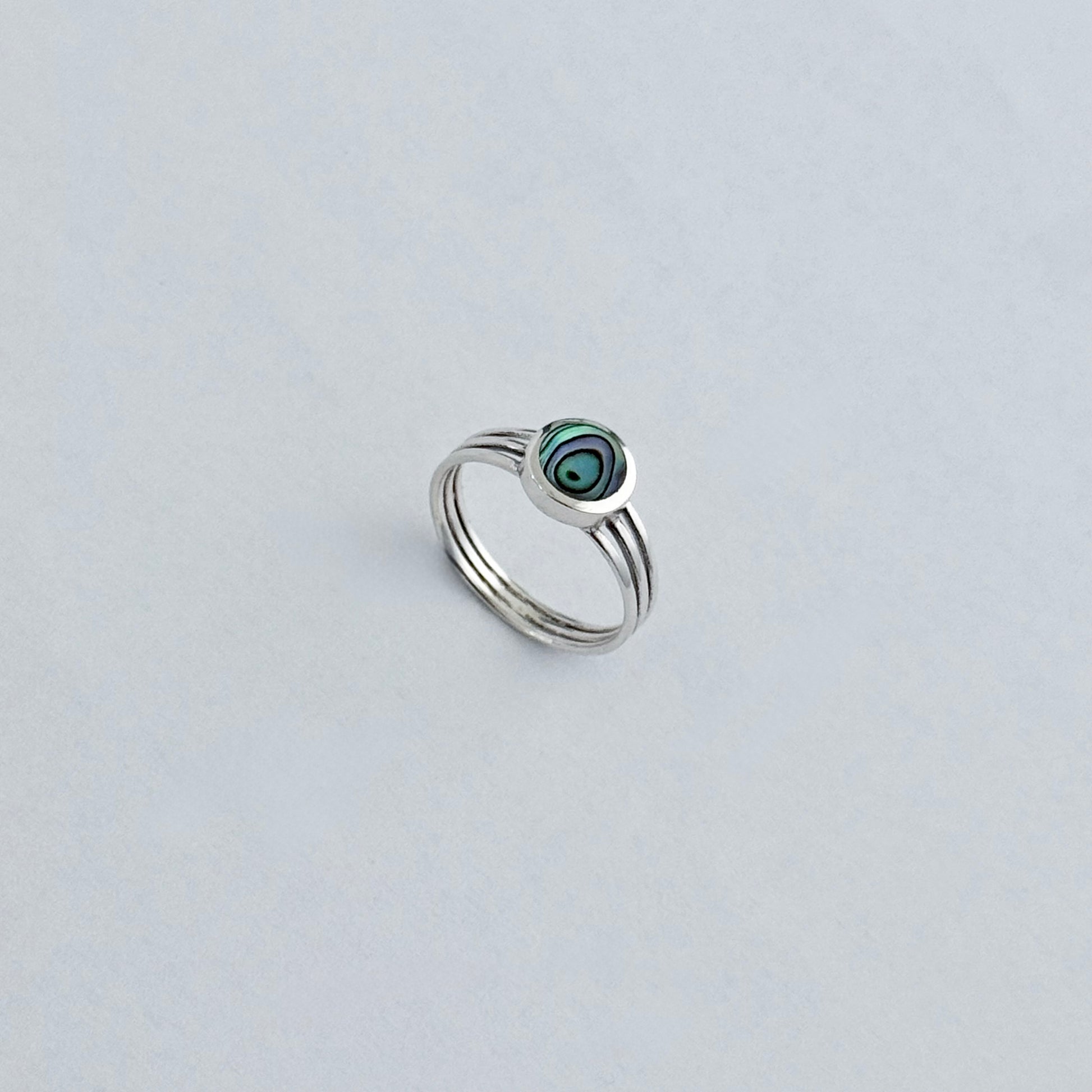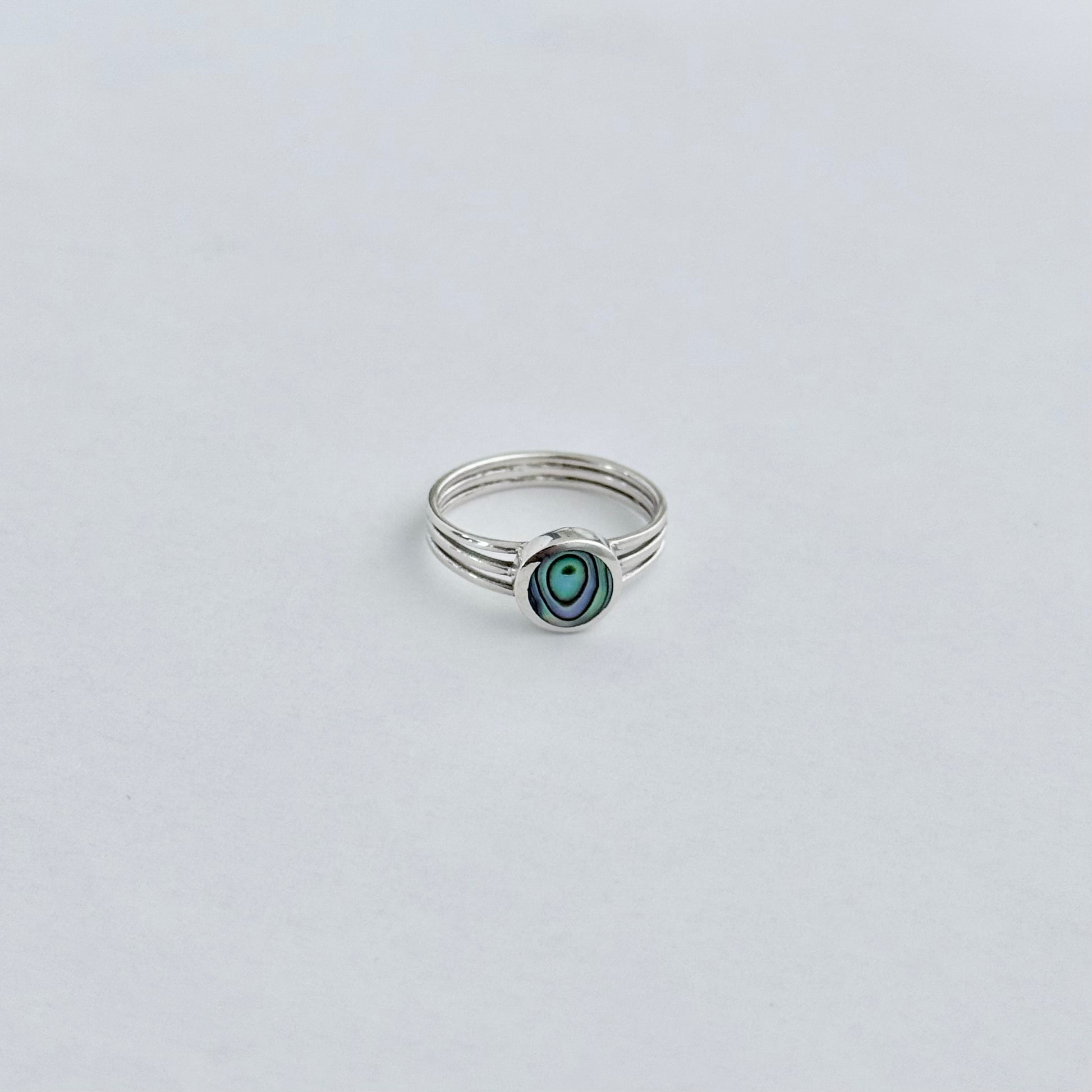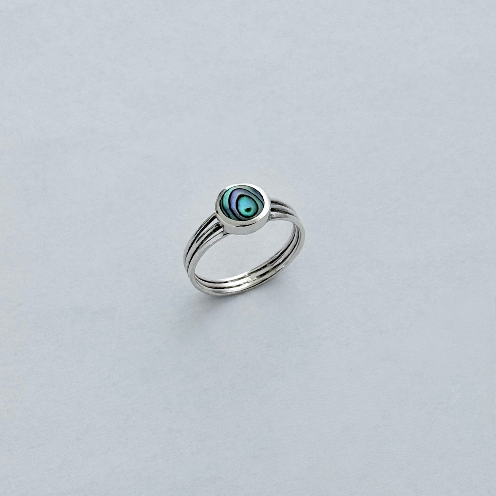 925 Sterling Silver Small Round Abalone Ring | Seashell & Ocean Jewelry