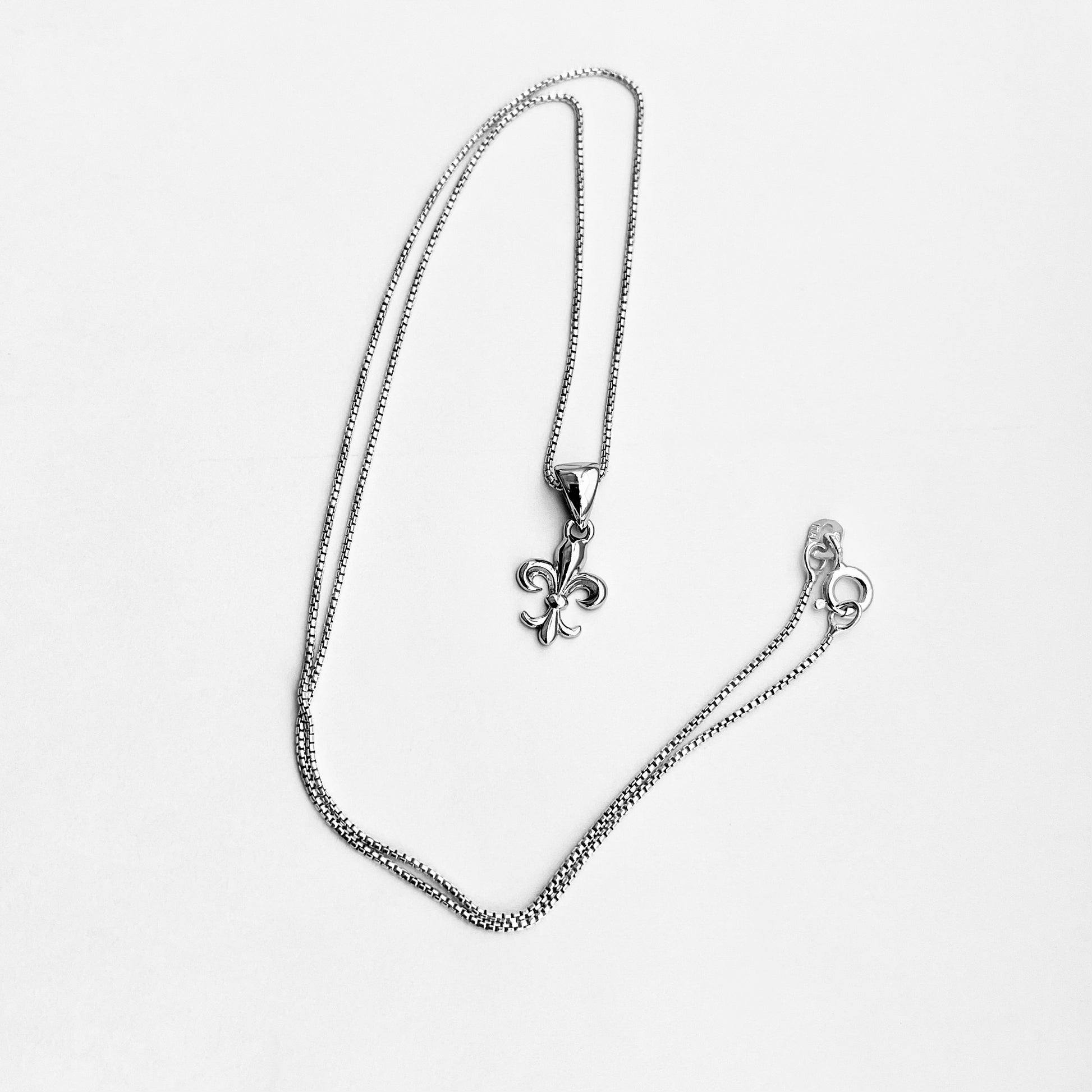 Sterling Silver Small Dainty Saints Pendant with Italian Box Necklace, France Symbol Jewelry, Fleur De Lis Necklace, Flower of Lily, 925 Stamped