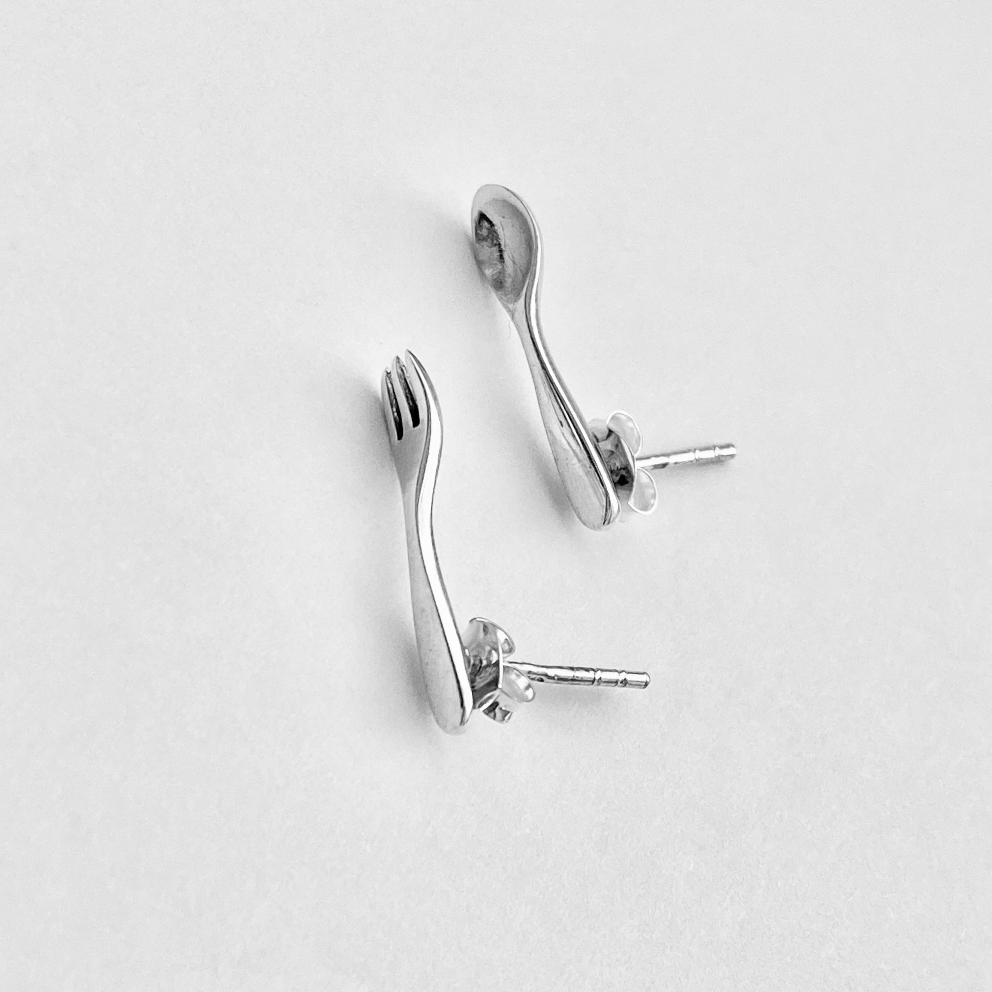 Sterling Silver Utensils Earring, Chefs Stud Earrings, Spoon Earrings, Silver Earrings, Fork Earrings, Kitchen Earrings, 925 Stamped