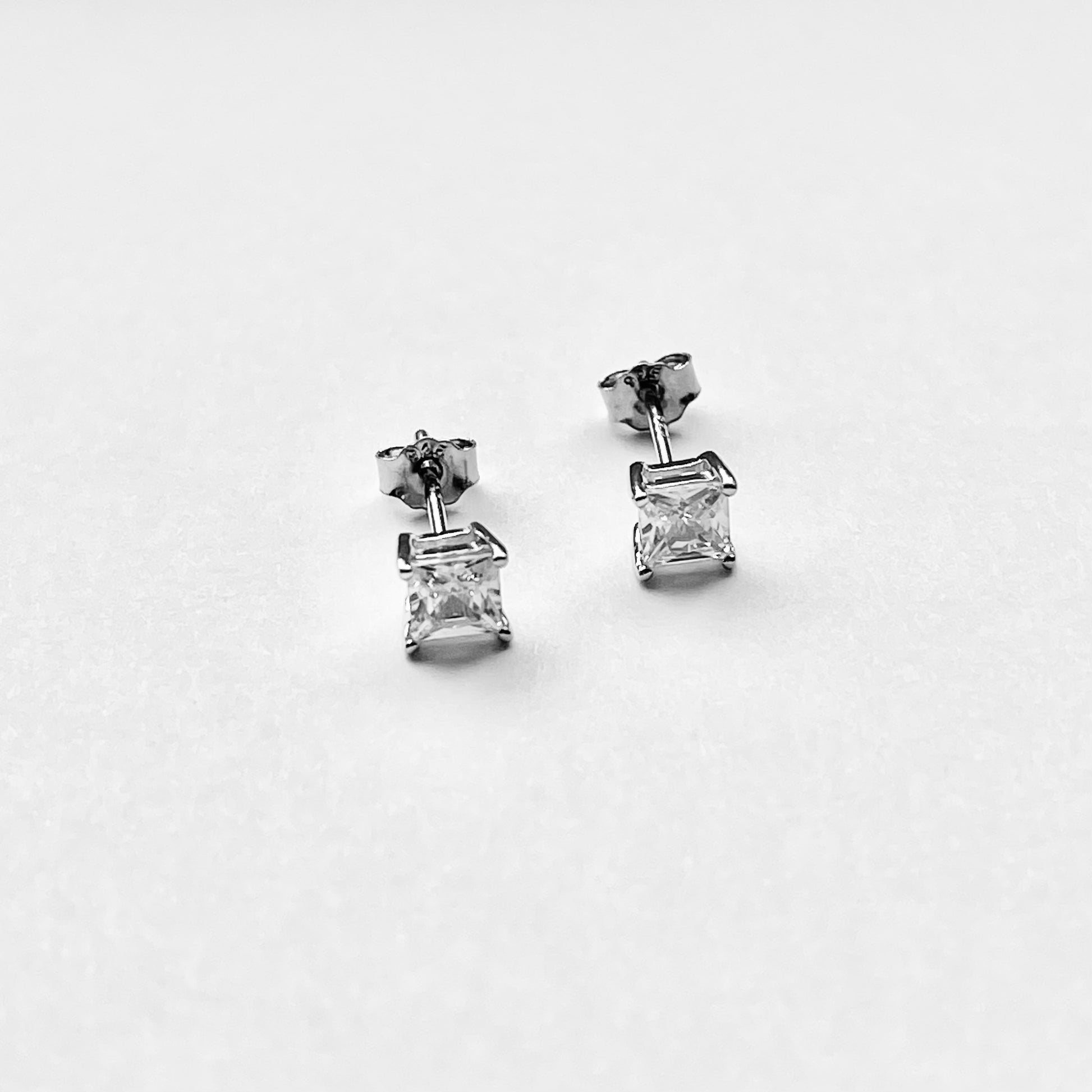 Sterling Silver 4 x 4 mm Square CZ Stud Earring, April Birthstone Jewelry