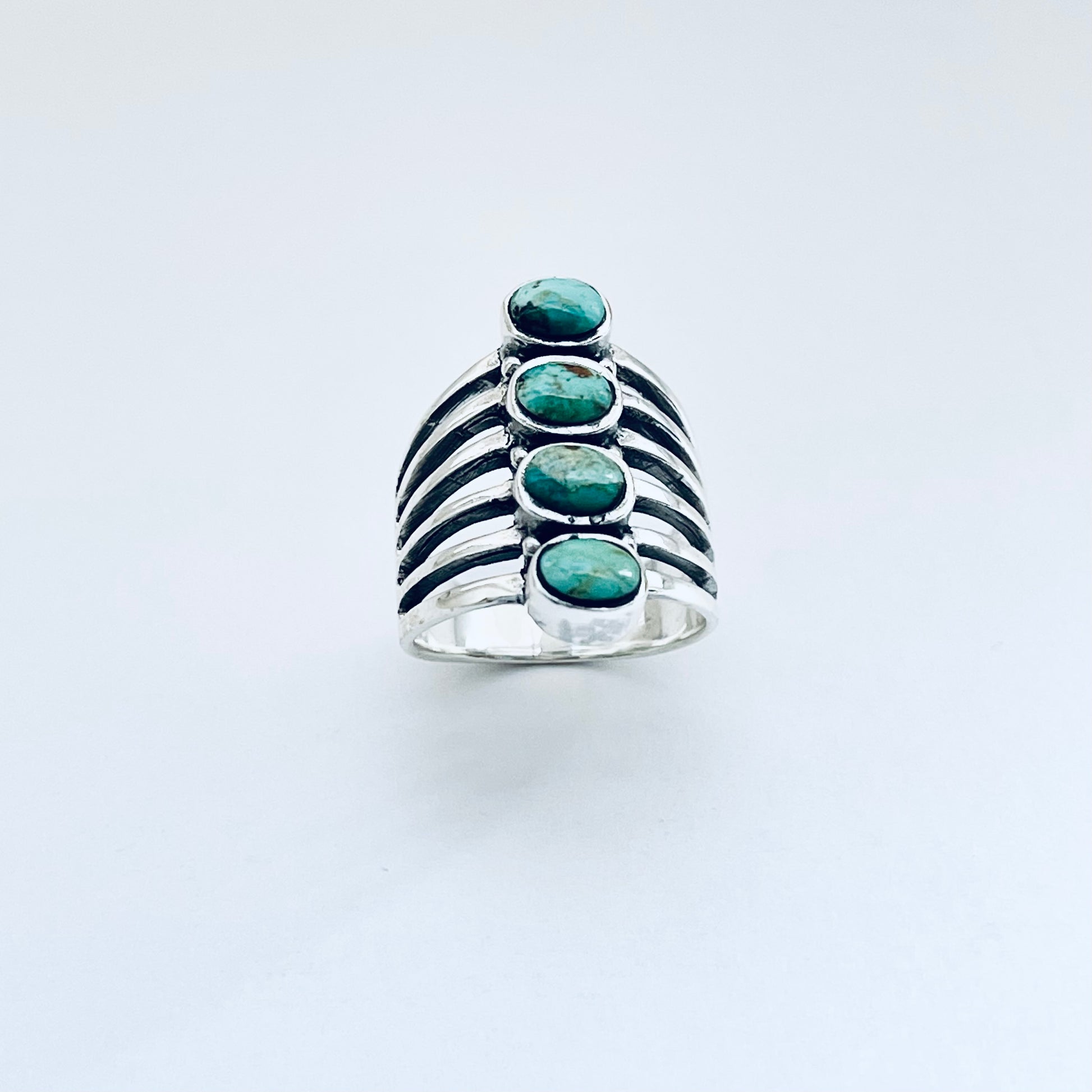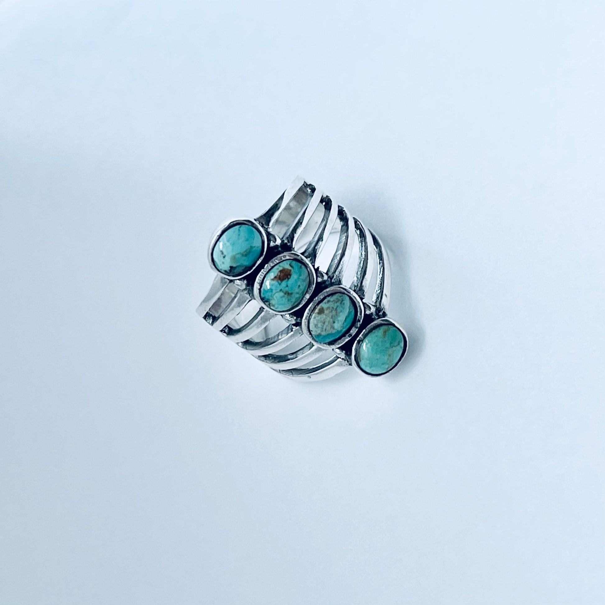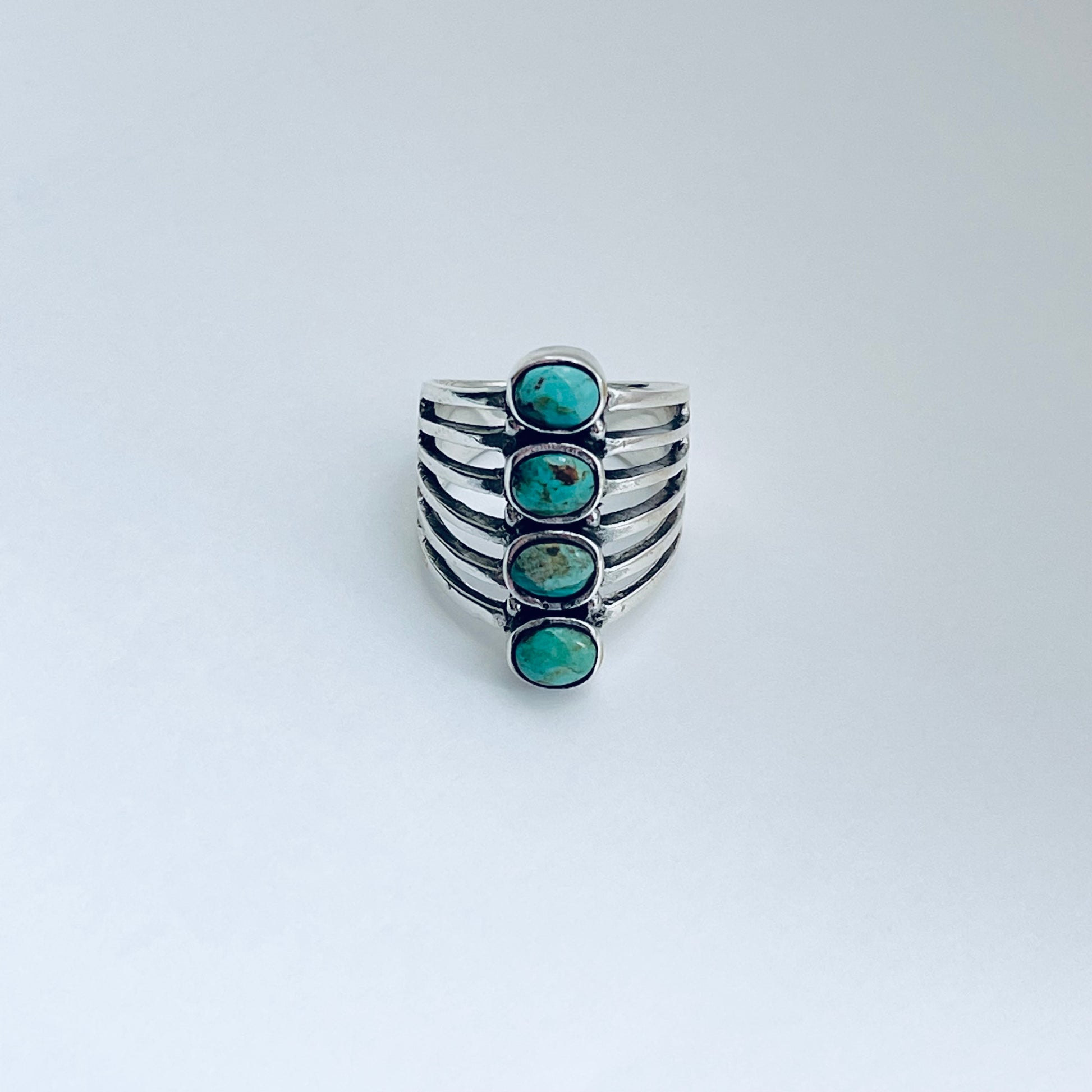 Sterling Silver 4 Stone Genuine Turquoise Ring, Boho Ring, Silver Ring, Turquoise Ring, Statement Ring, Stone Ring, 925 Stamped