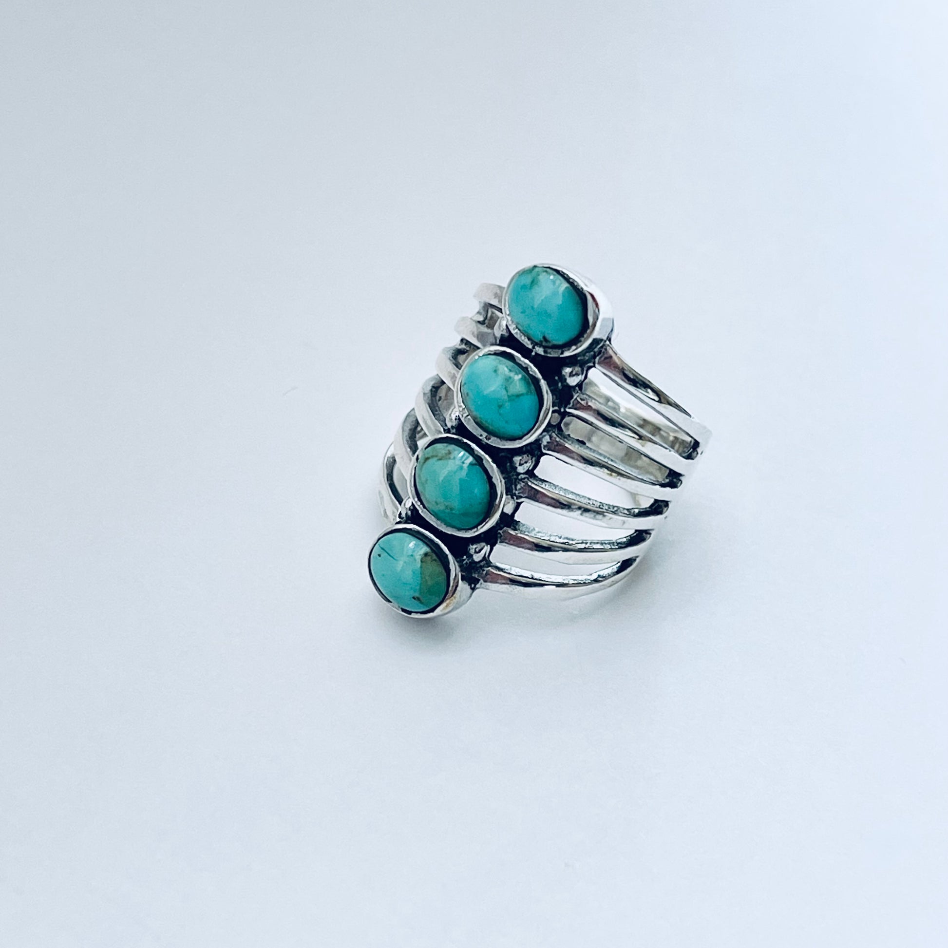 Sterling Silver 4 Stone Genuine Turquoise Ring, Boho Statement Jewelry