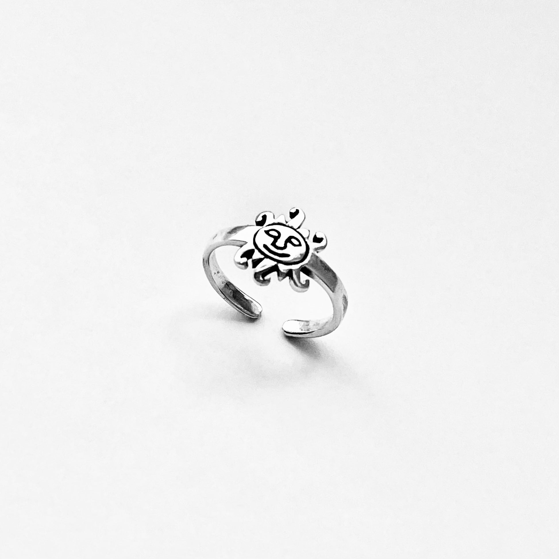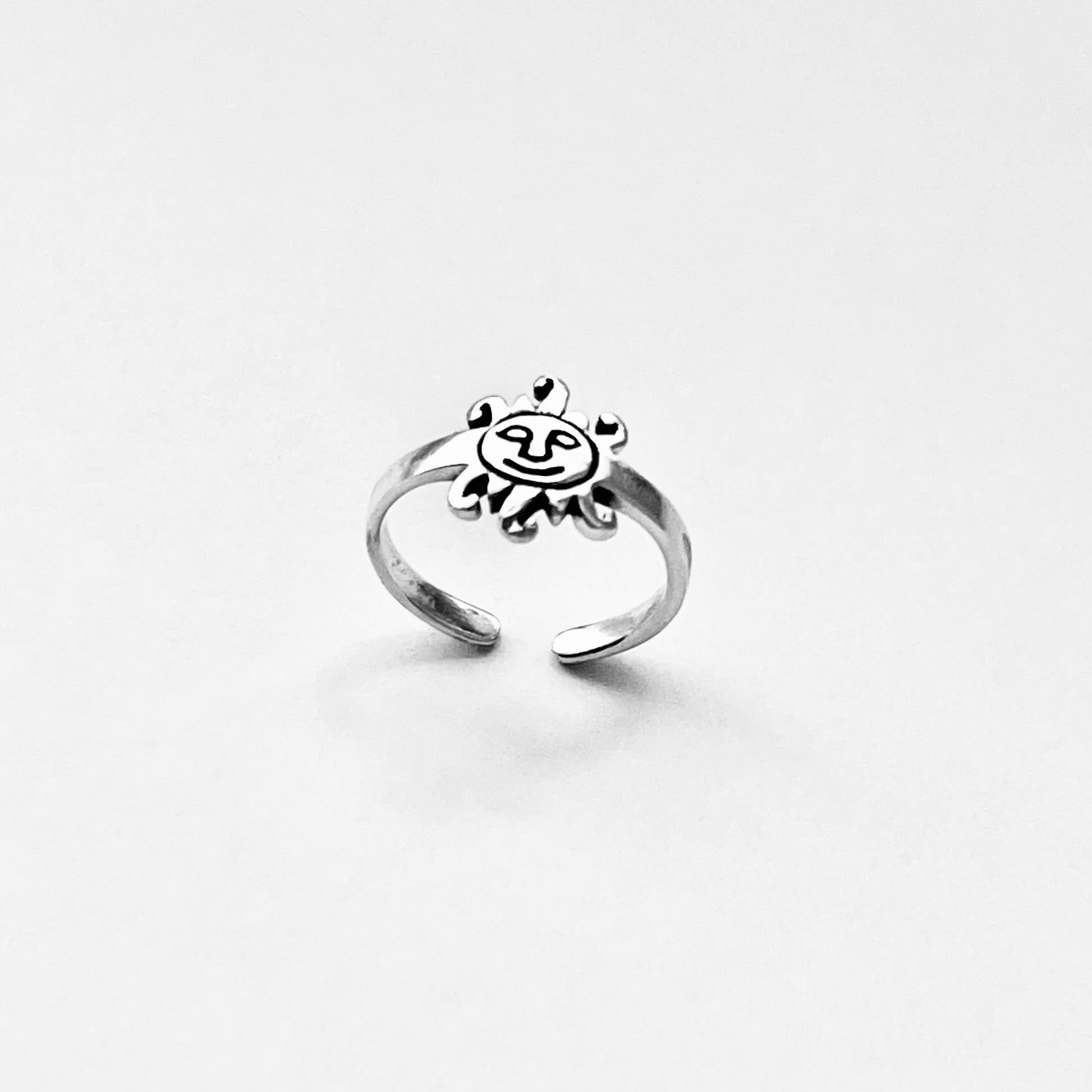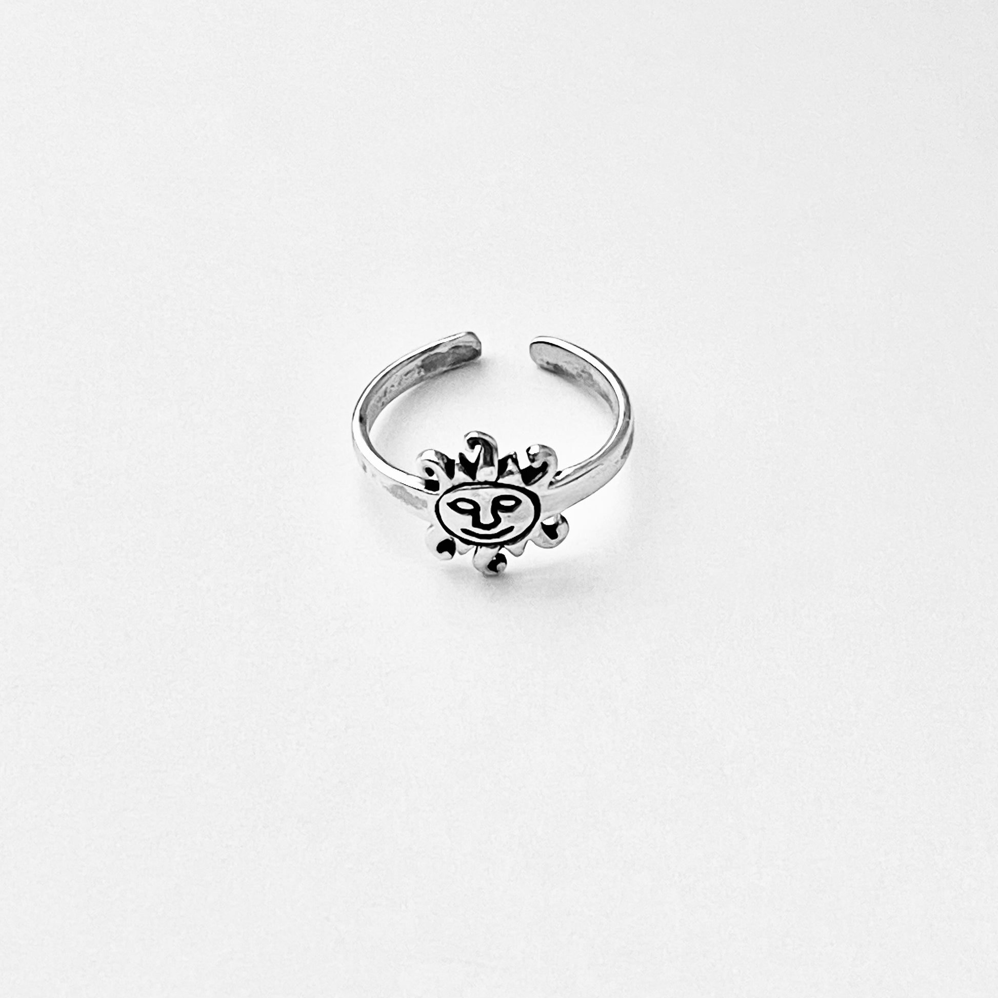 Shine bright with our 925 Sterling Silver Sun Face Toe Ring, a dainty and celestial-inspired ring that adds a touch of sunshine to your style. This adjustable toe ring features a charming sun face design, perfect for stacking with other toe rings or wearing solo as a statement piece. A thoughtful handmade sterling silver gift for lovers of celestial jewelry.