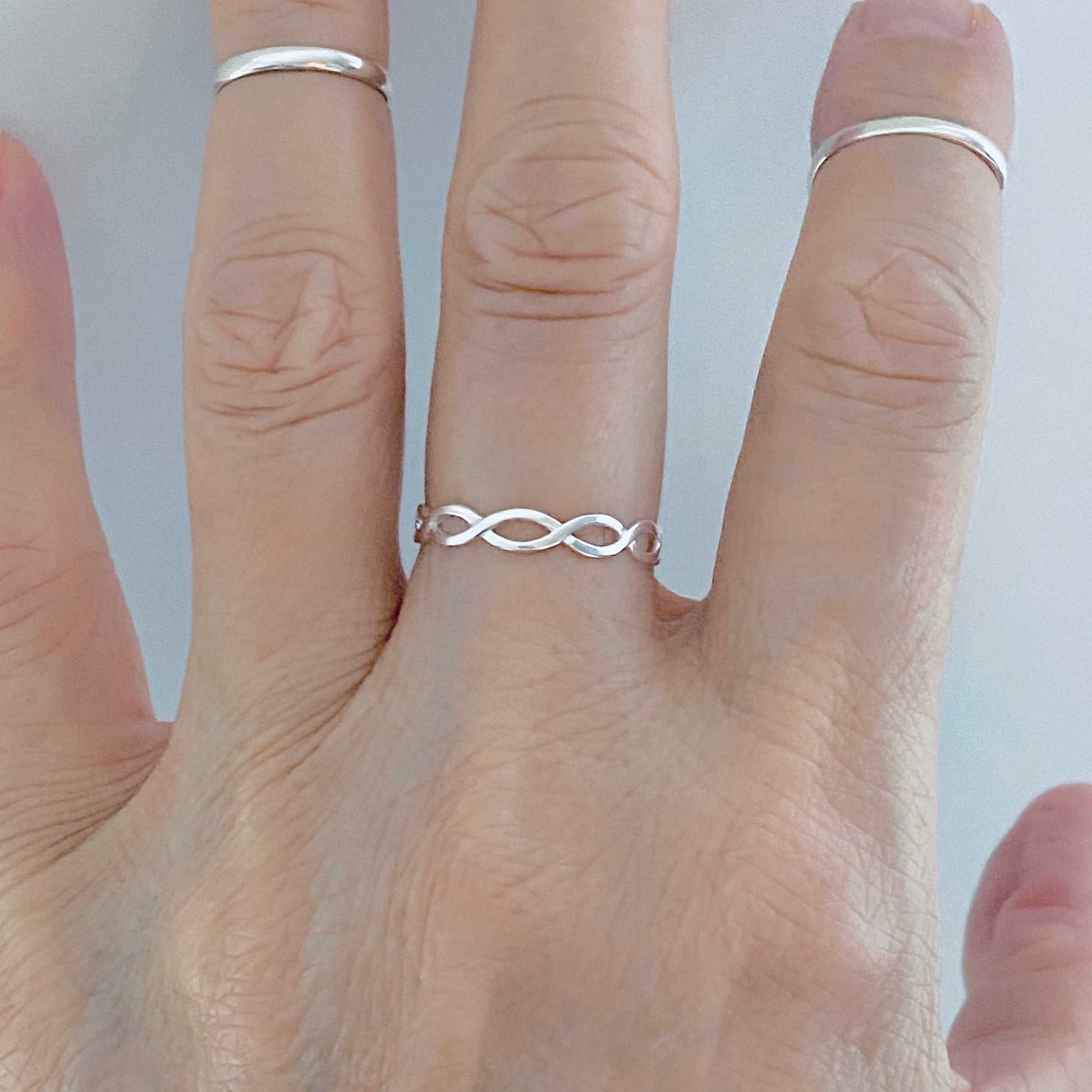 Sterling Silver Thin High Polish Eternity Braid Ring, Delicate Jewelry, Infinity Rings