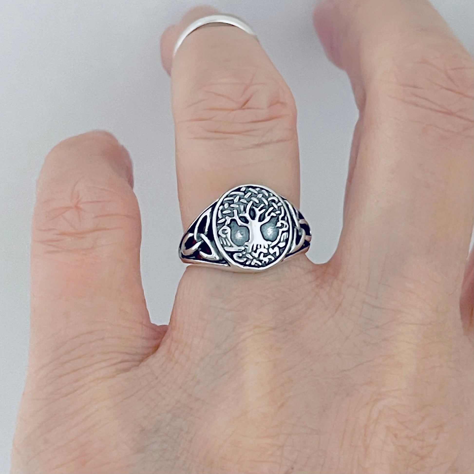 Sterling Silver Tree of Life Ring with Celtic, Trinity Knot Rings, Fortune Trees Jewelry