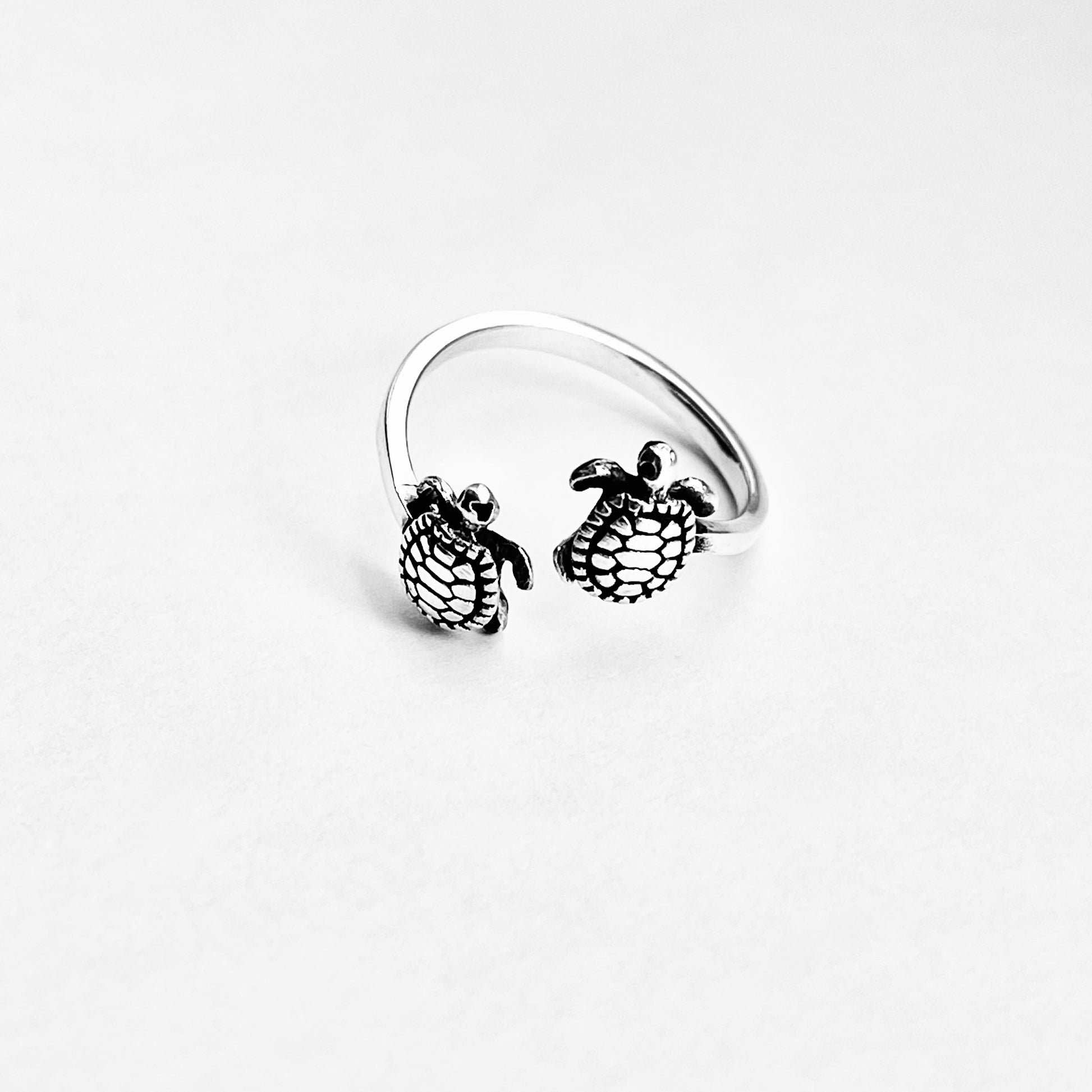 Sterling Silver Twins Turtle Ring, Sea Animals, Ocean Jewelry