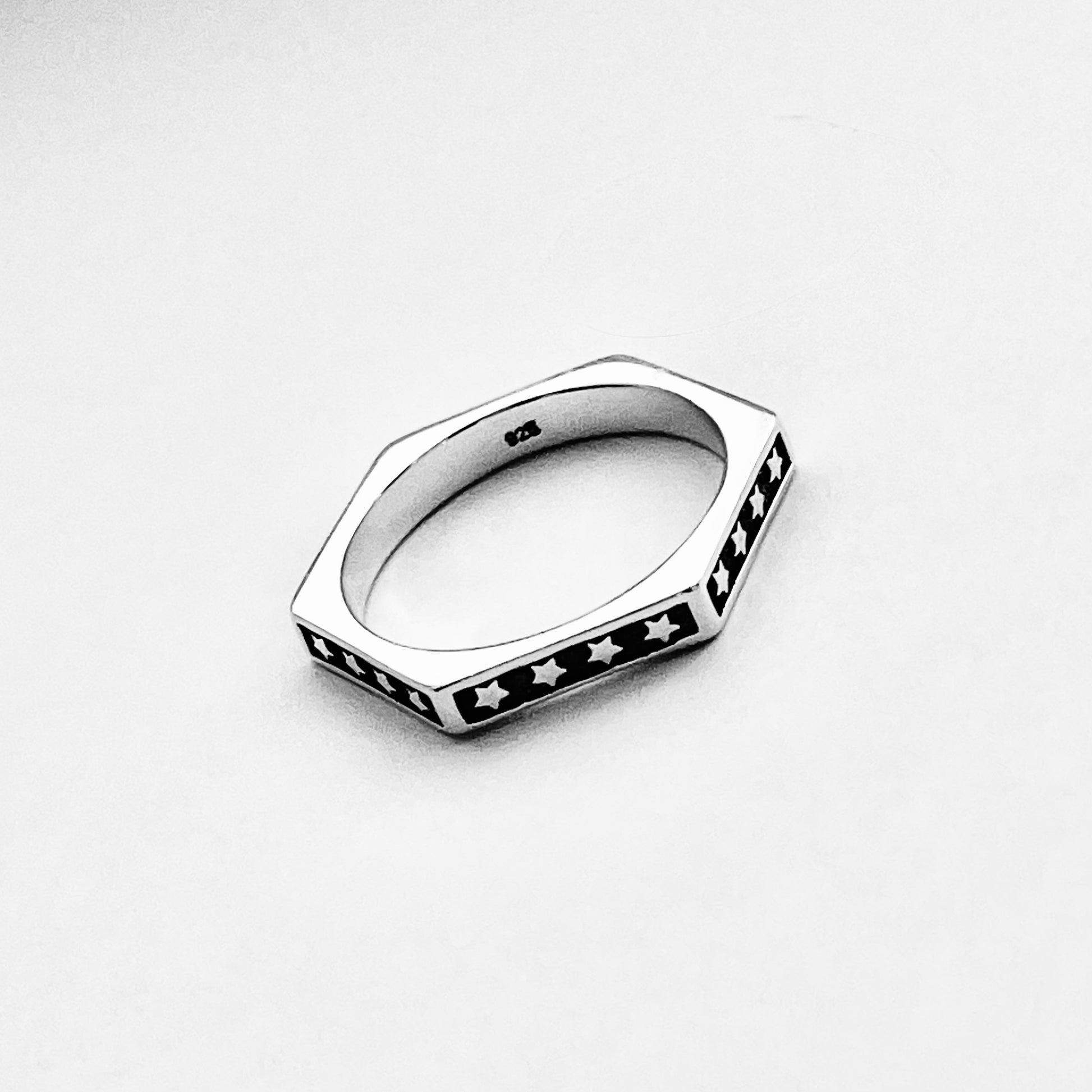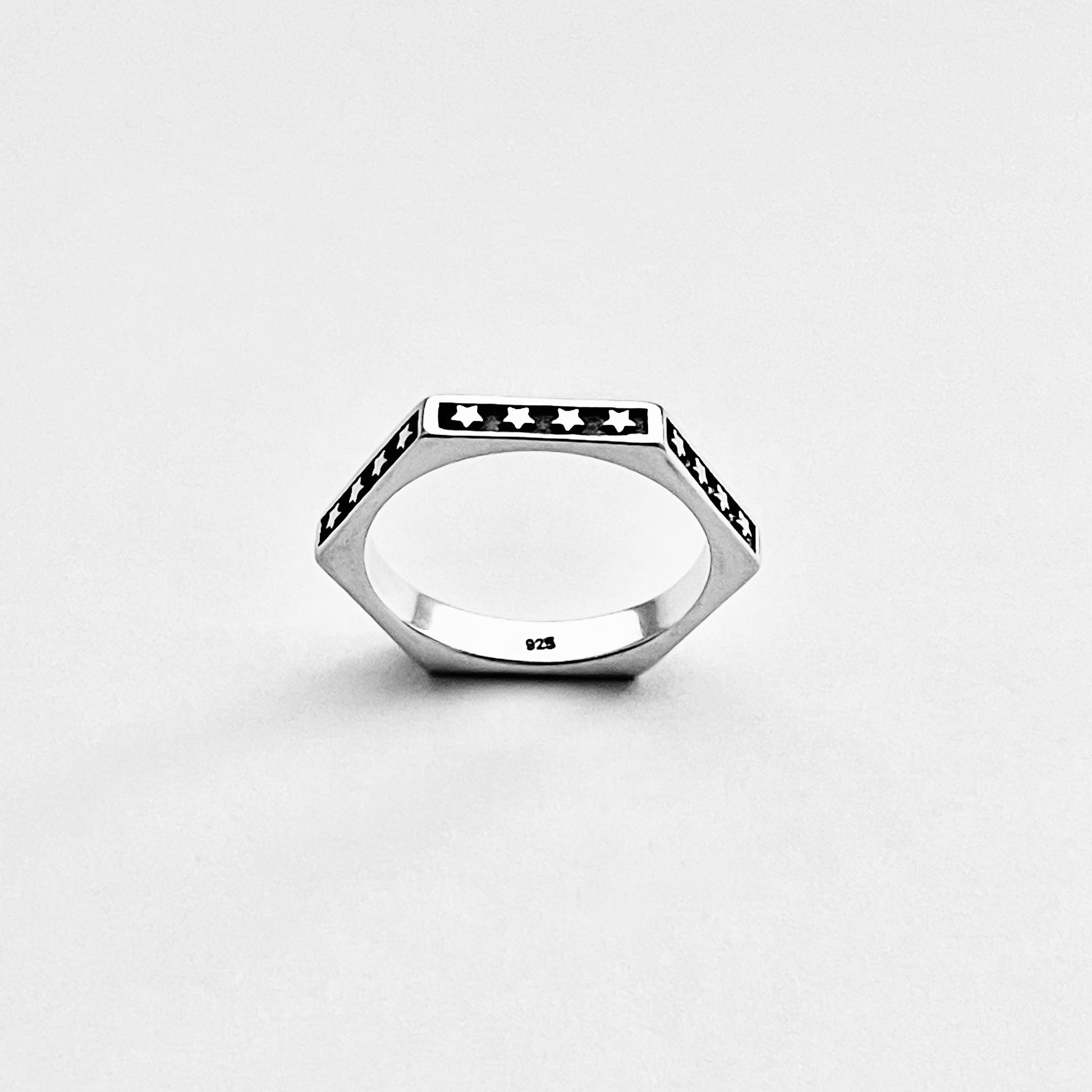 Sterling Silver Unisex Hexagon Star Ring, Hexagon Wedding Band, Stackable Ring, Silver Band, Silver Ring, Dainty Ring, 925 Stamped