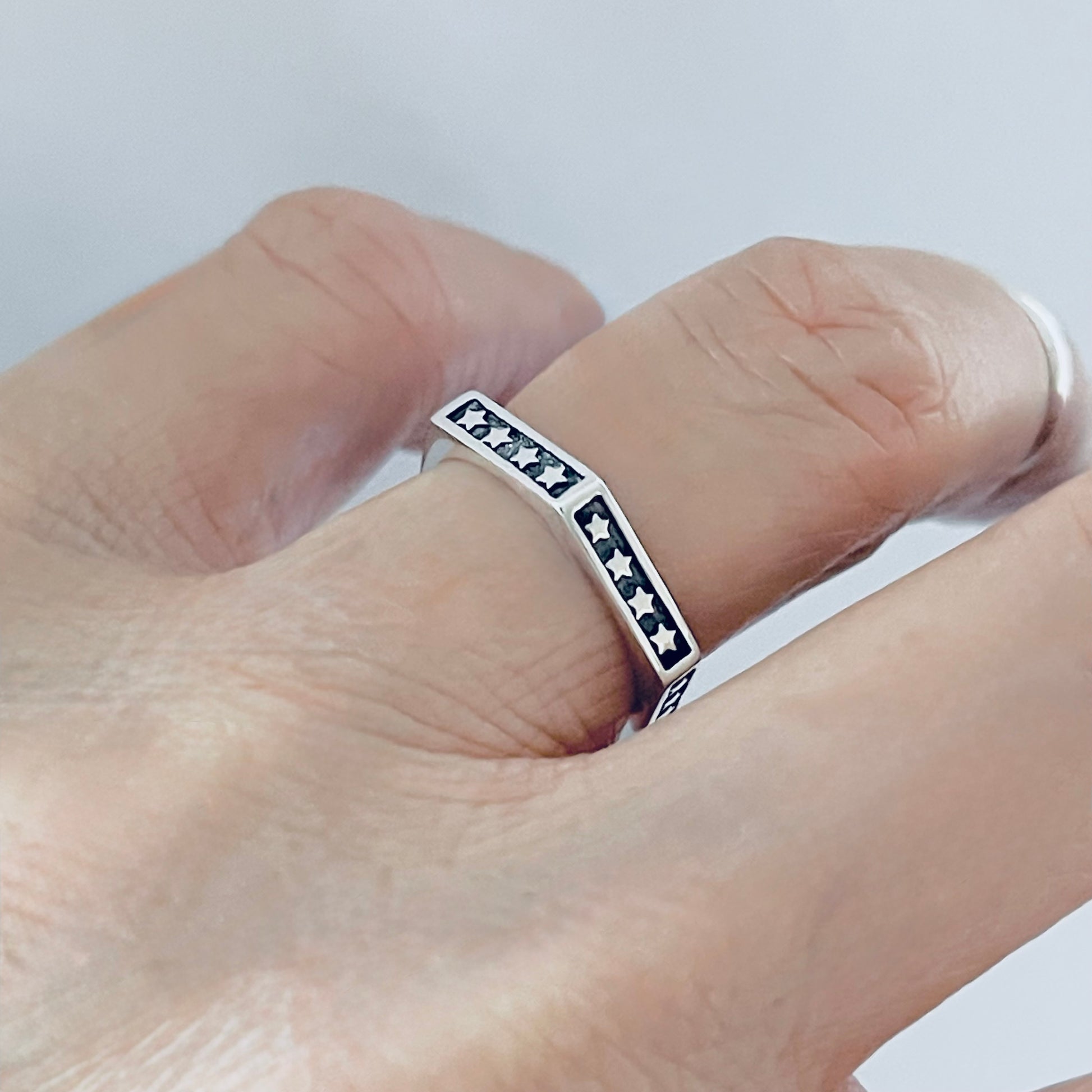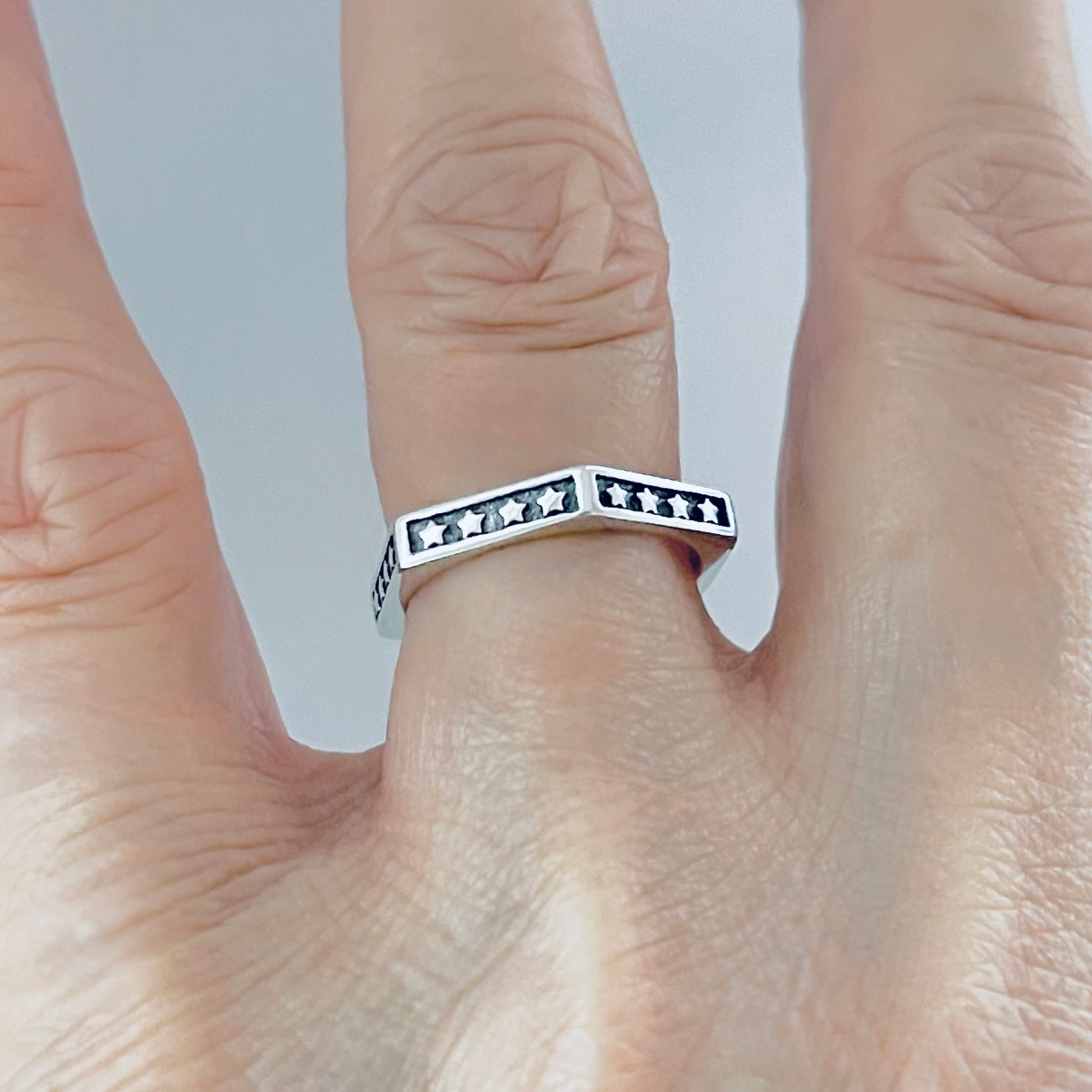 Sterling Silver Unisex Eternity Hexagon Star Ring, Wedding Band, Celestial Rings, Stackable, Stars