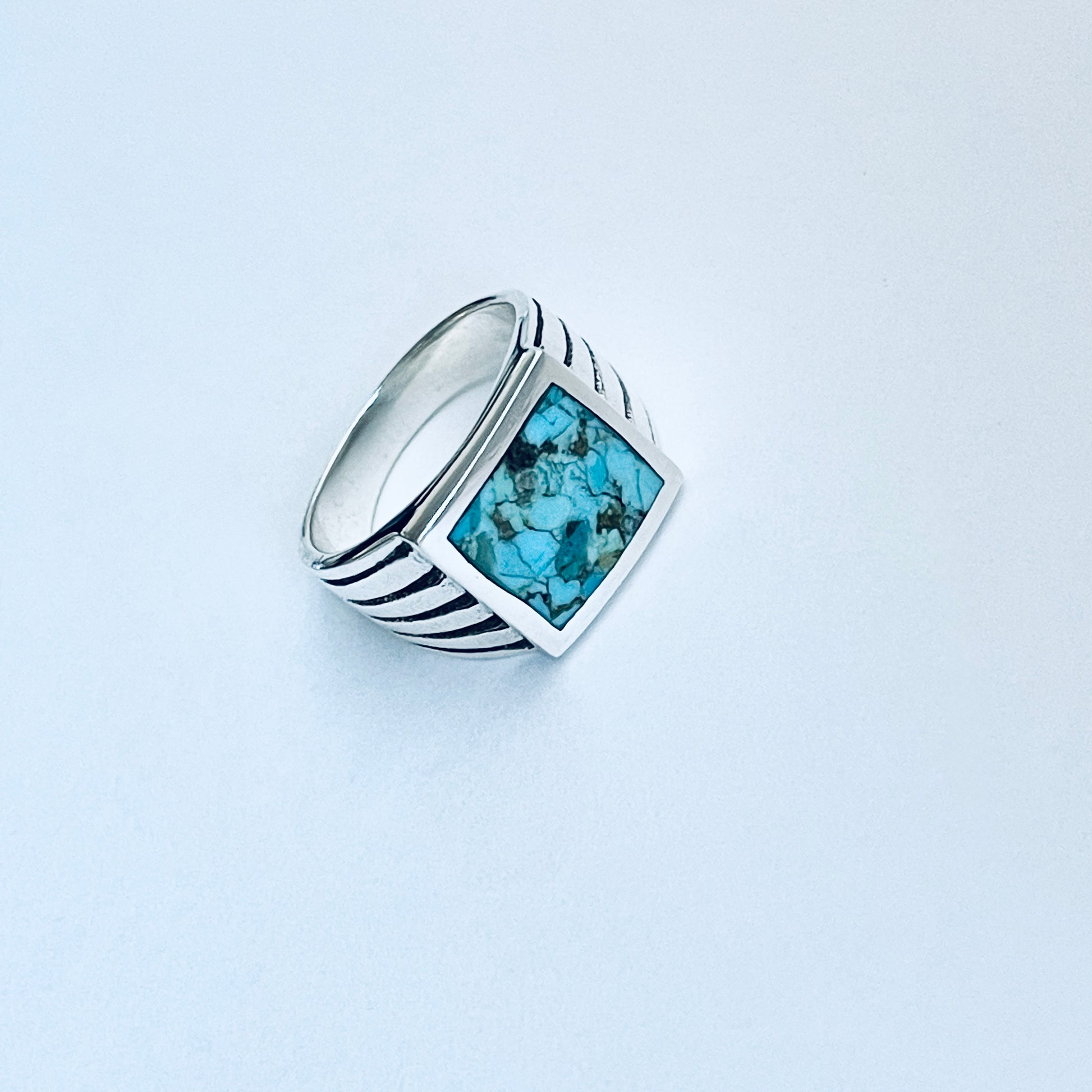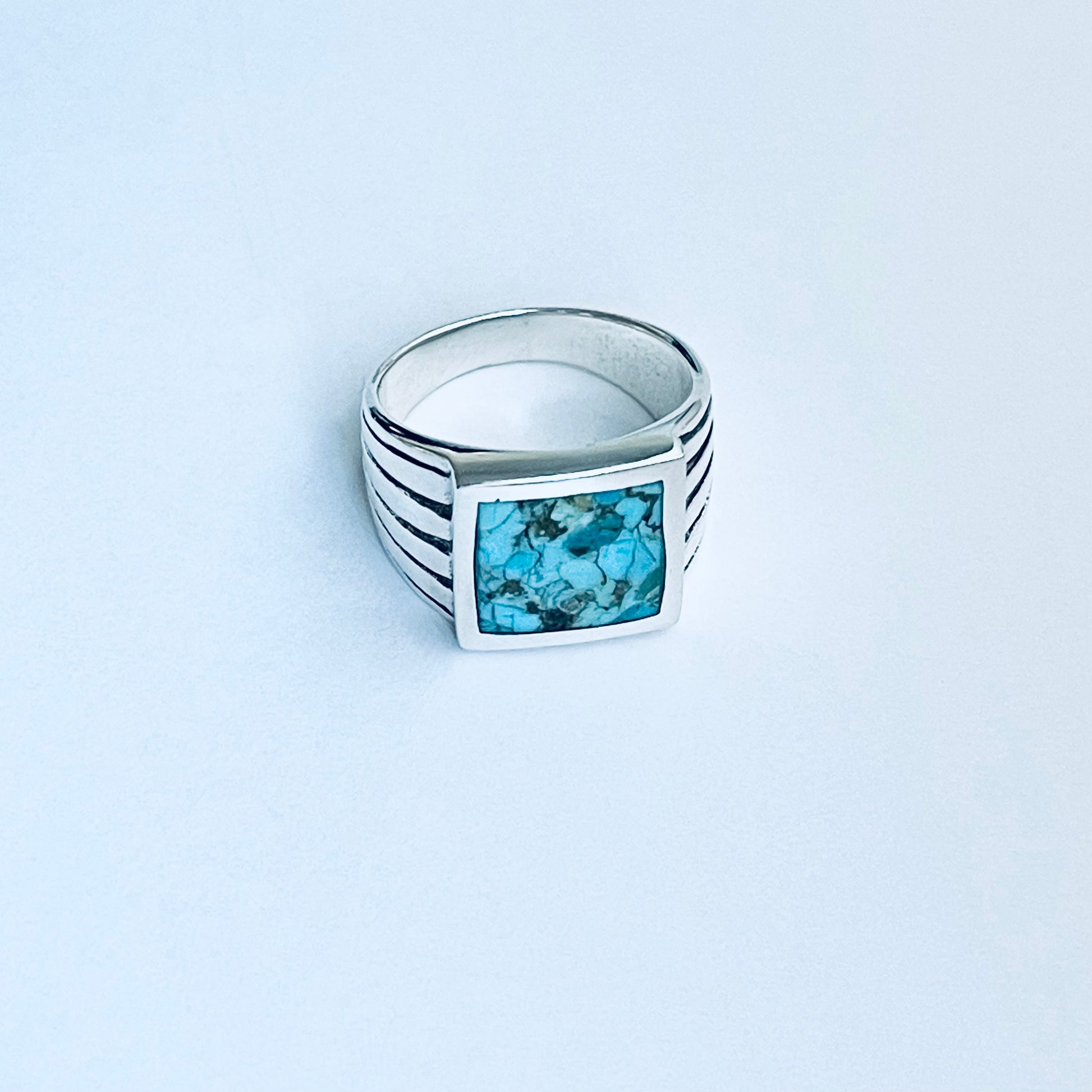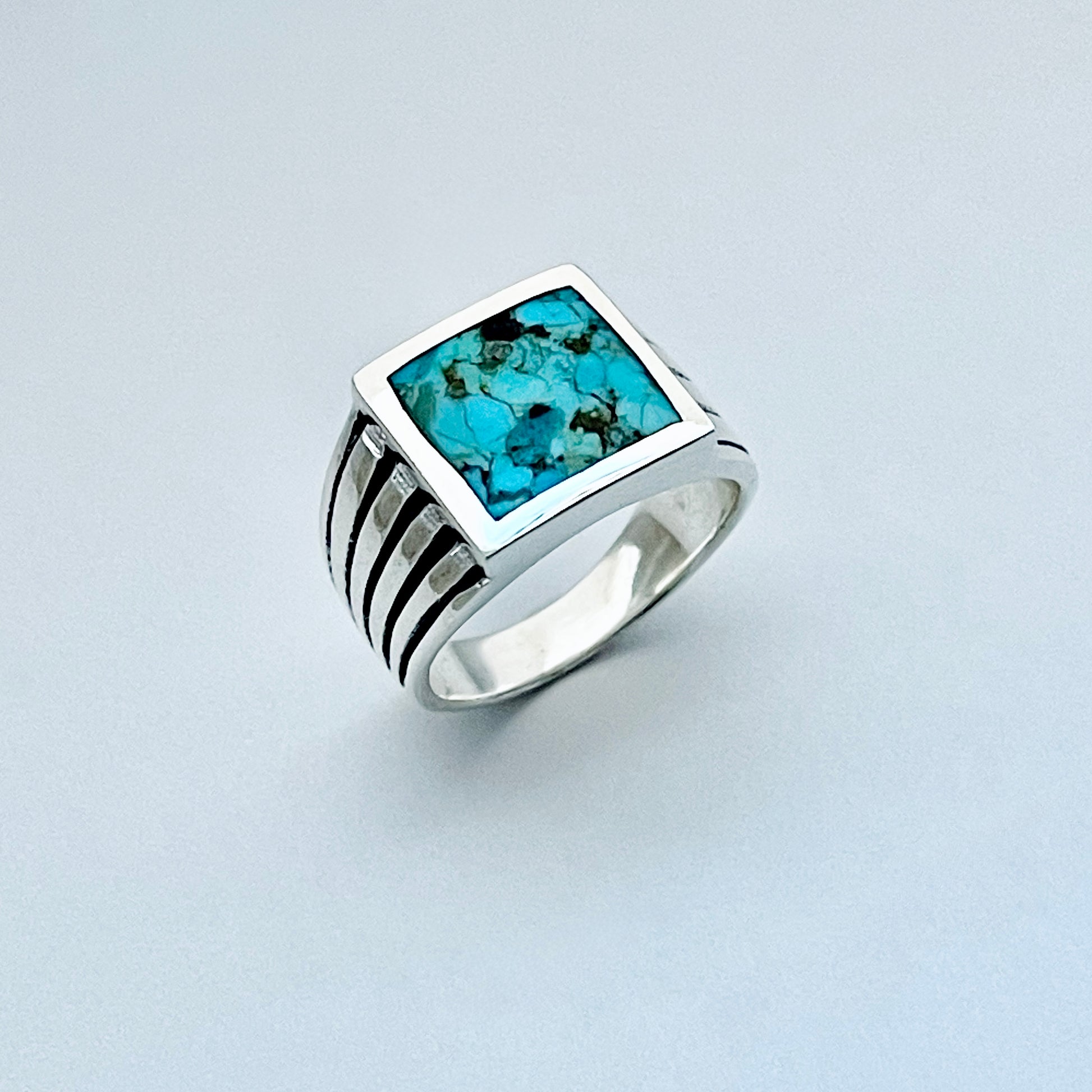 Sterling Silver Unisex Square Genuine Turquoise Ring, Statement Stone Jewelry
