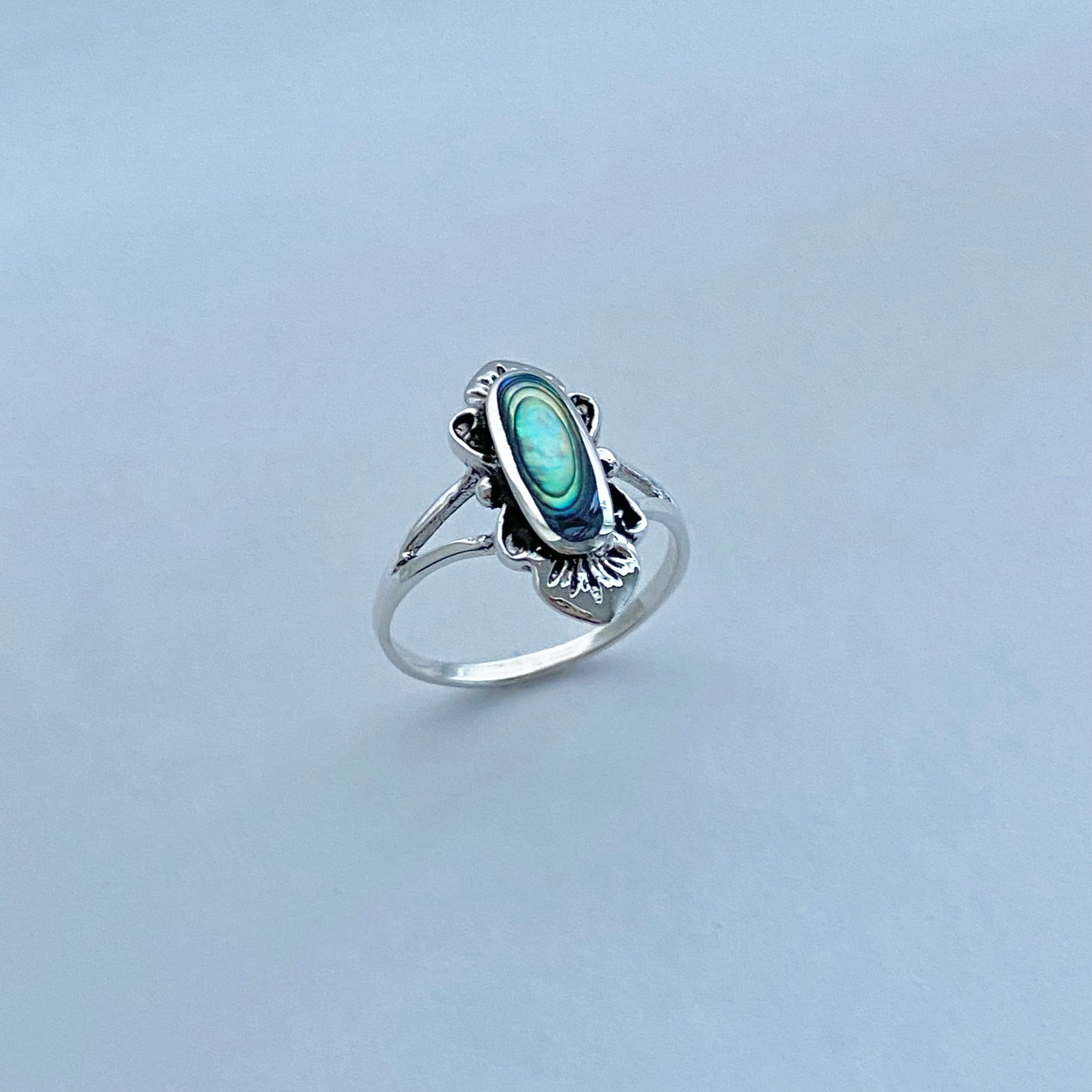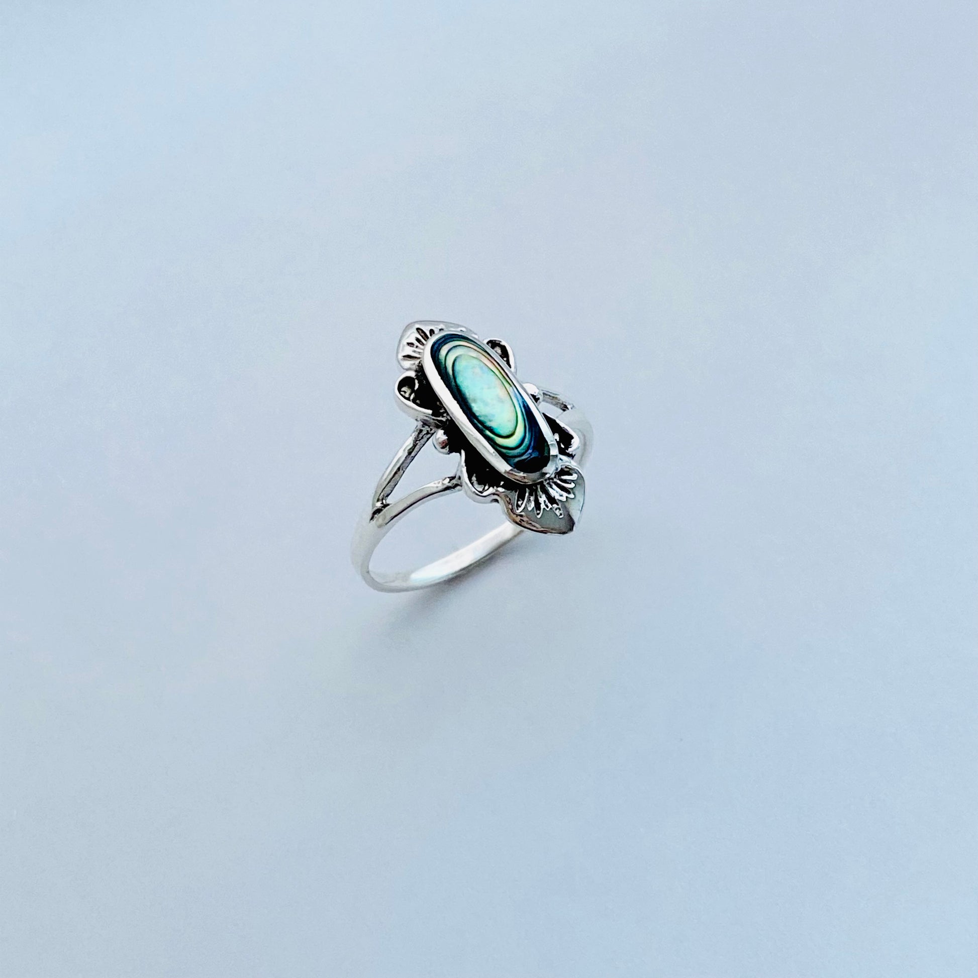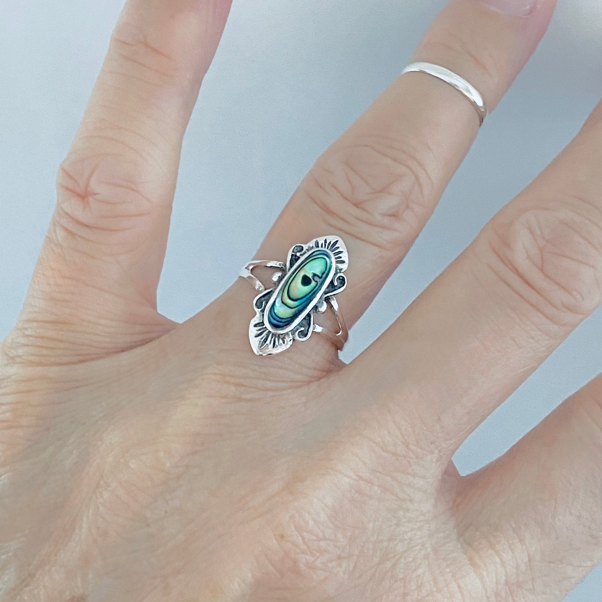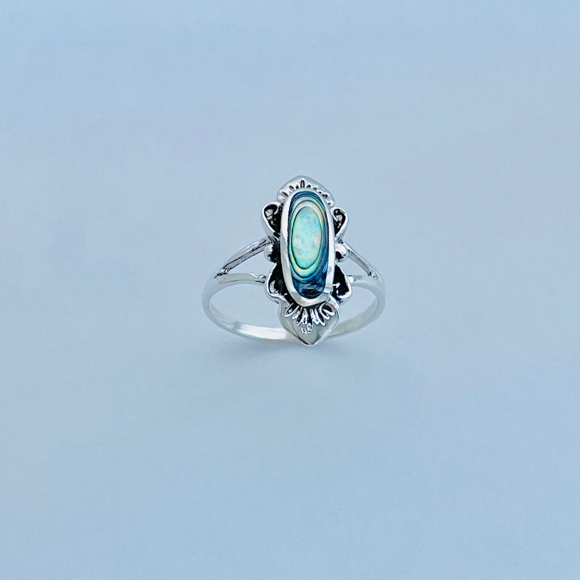 Sterling Silver Delicate Victorian Abalone Ring, Boho Ring, Silver Ring, Seashell Ring, Stone Ring, 925 Stamped