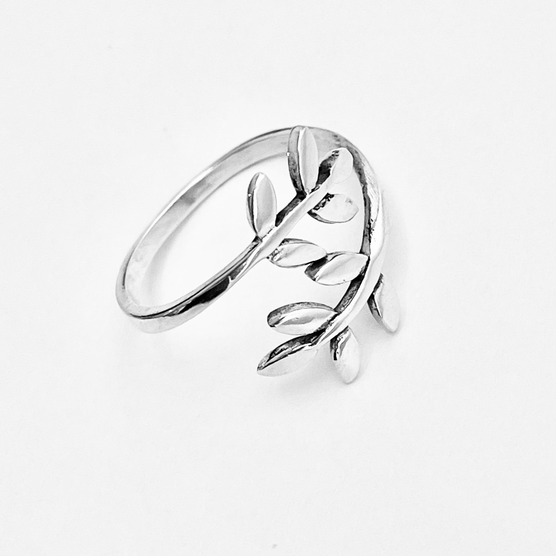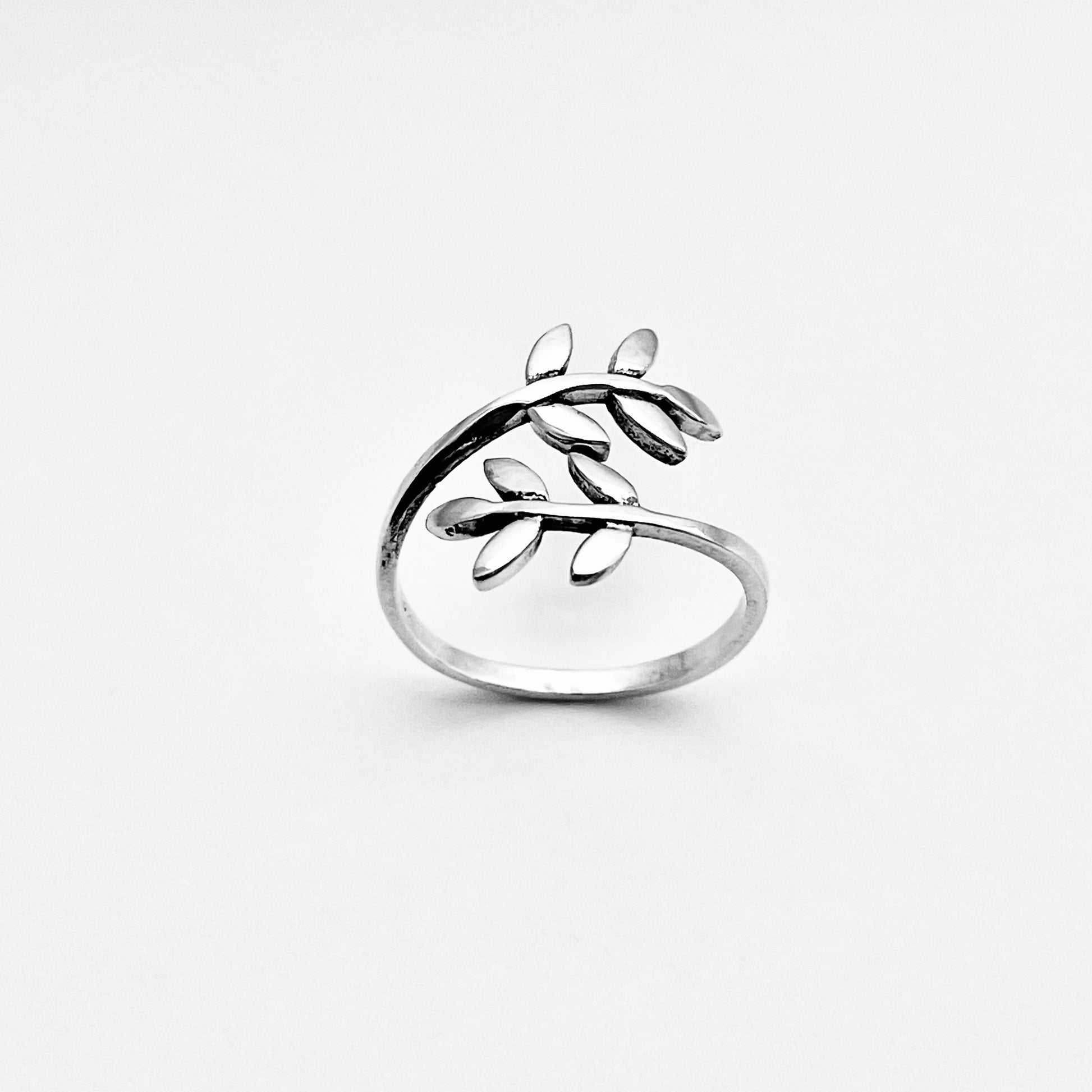 Sterling Silver Delicate Wraparound Olive Leaf Ring, Tree of Life Jewelry, Branch Leaves
