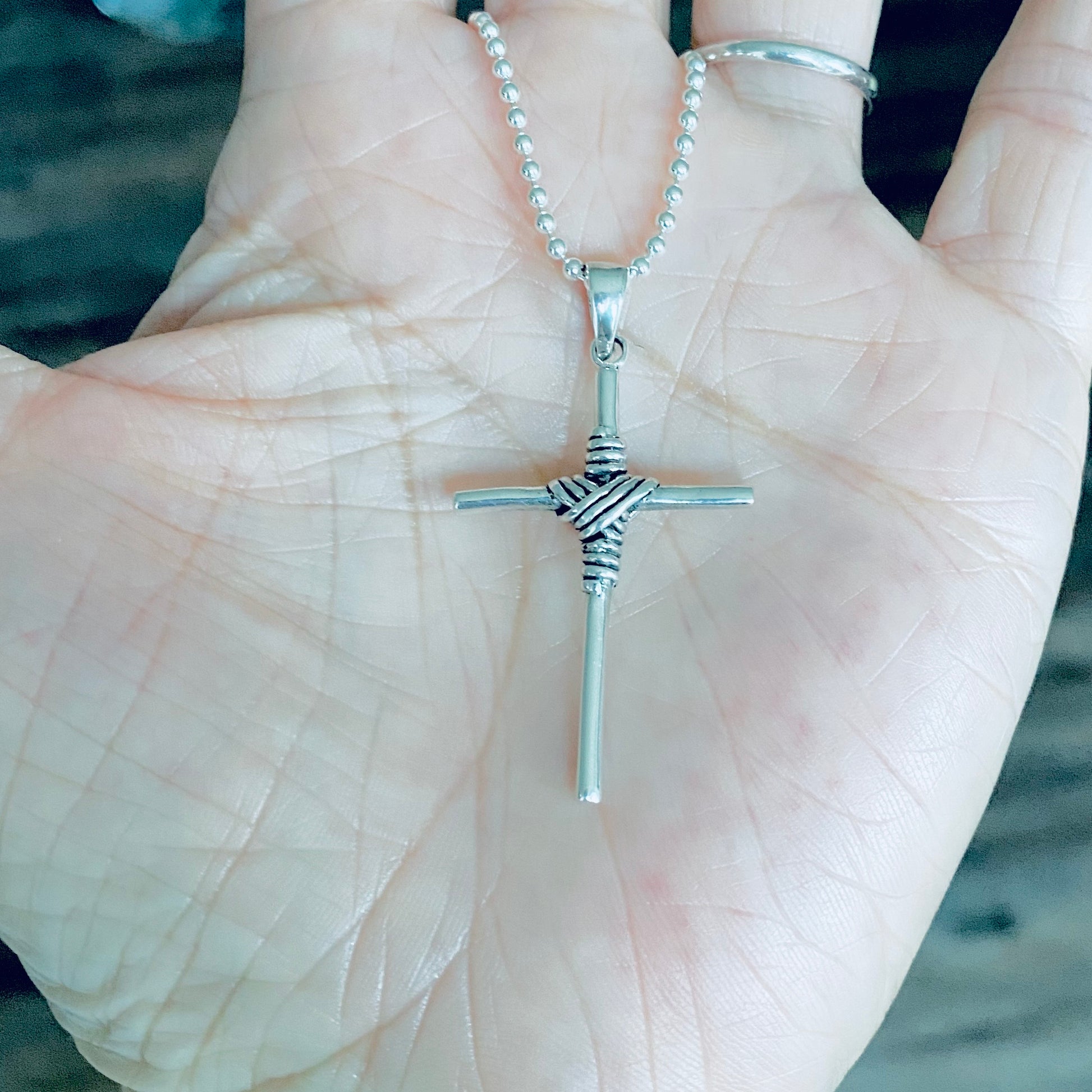 Unisex Sterling Silver Wire Wrapped Cross Necklace | Statement Christian Jewelry