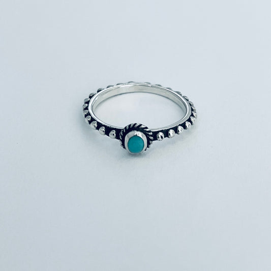 925 Sterling Silver Bali Style Turquoise Ring – Dainty Bead Band, Minimalist Boho Silver Ring